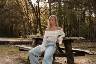 Kanten top met lange mouwen taupe - Minou
