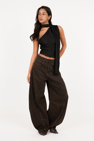 One shoulder top met pailletten zwart - Vienna