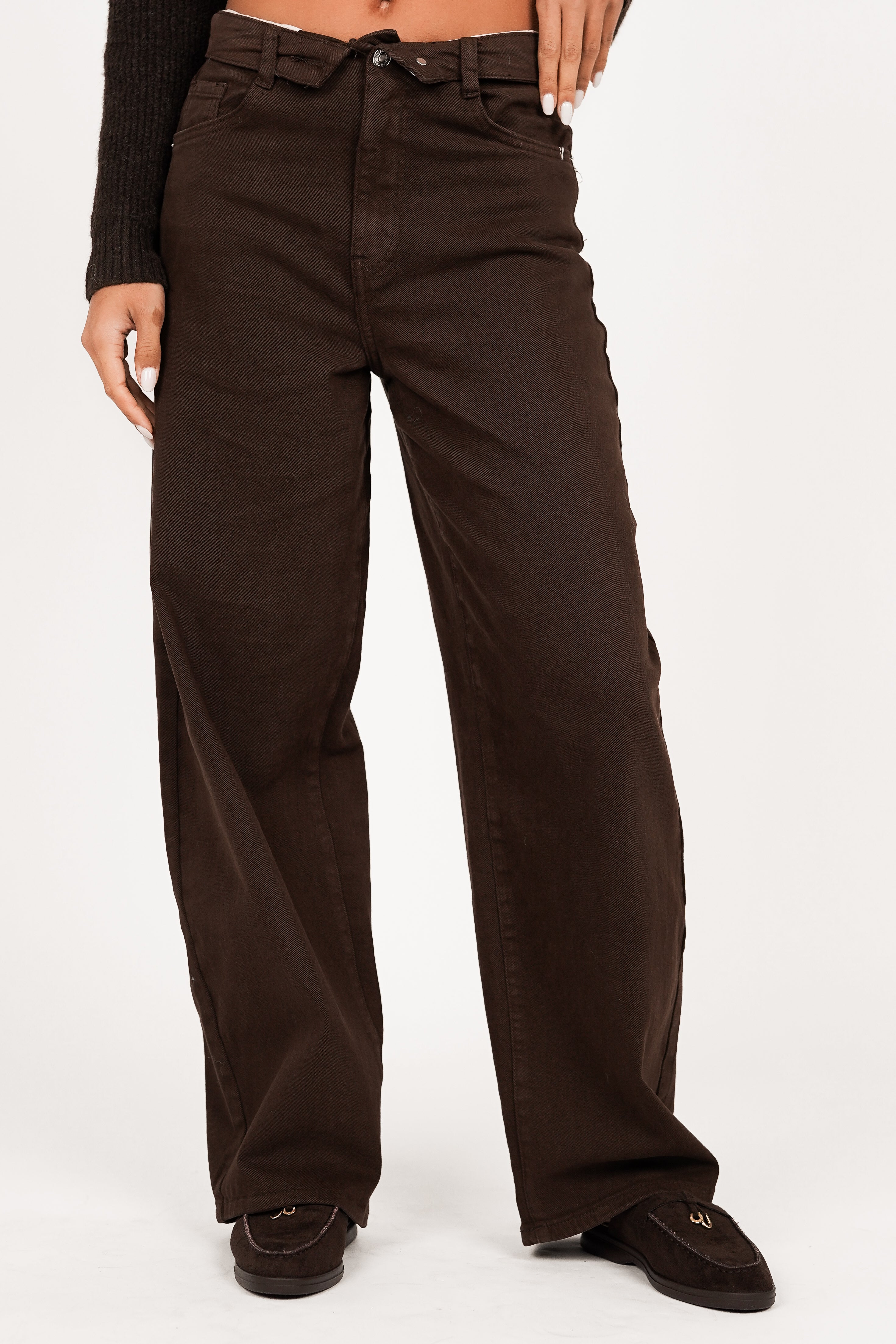 Balloon fit jeans met omgeslagen taille bruin - Moa