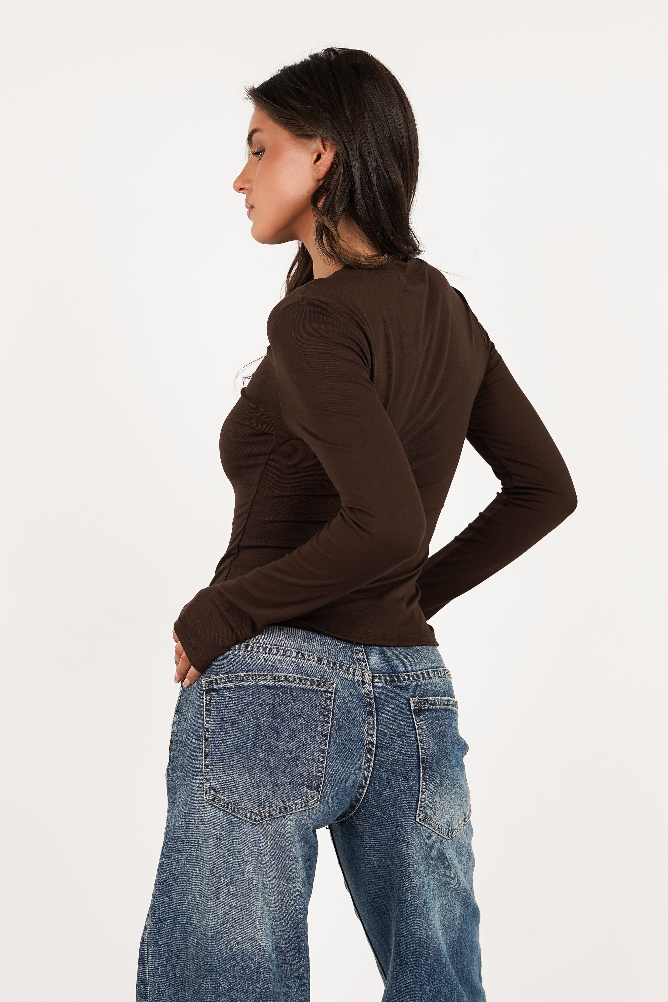 Basic top met lange mouw bruin - Anna