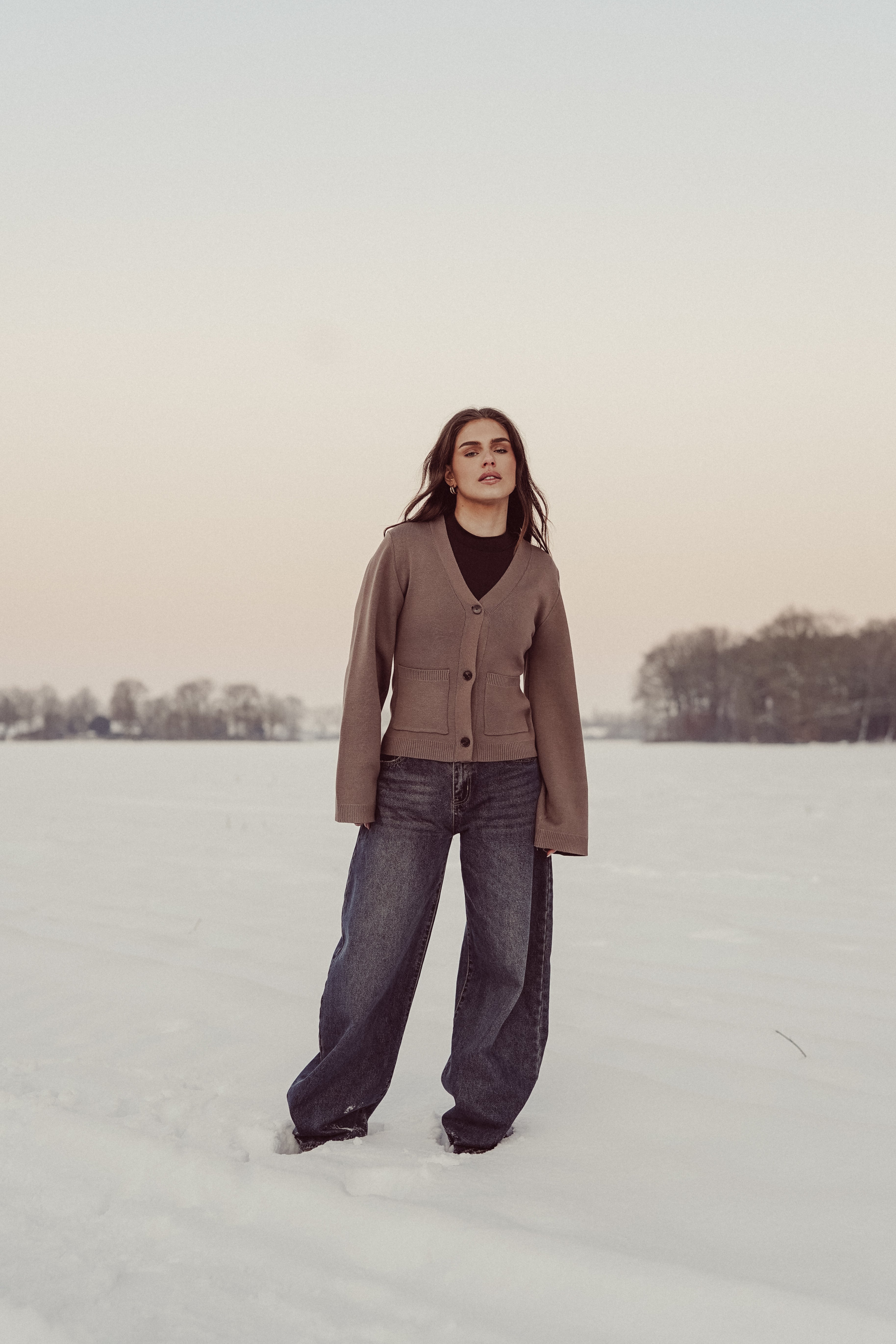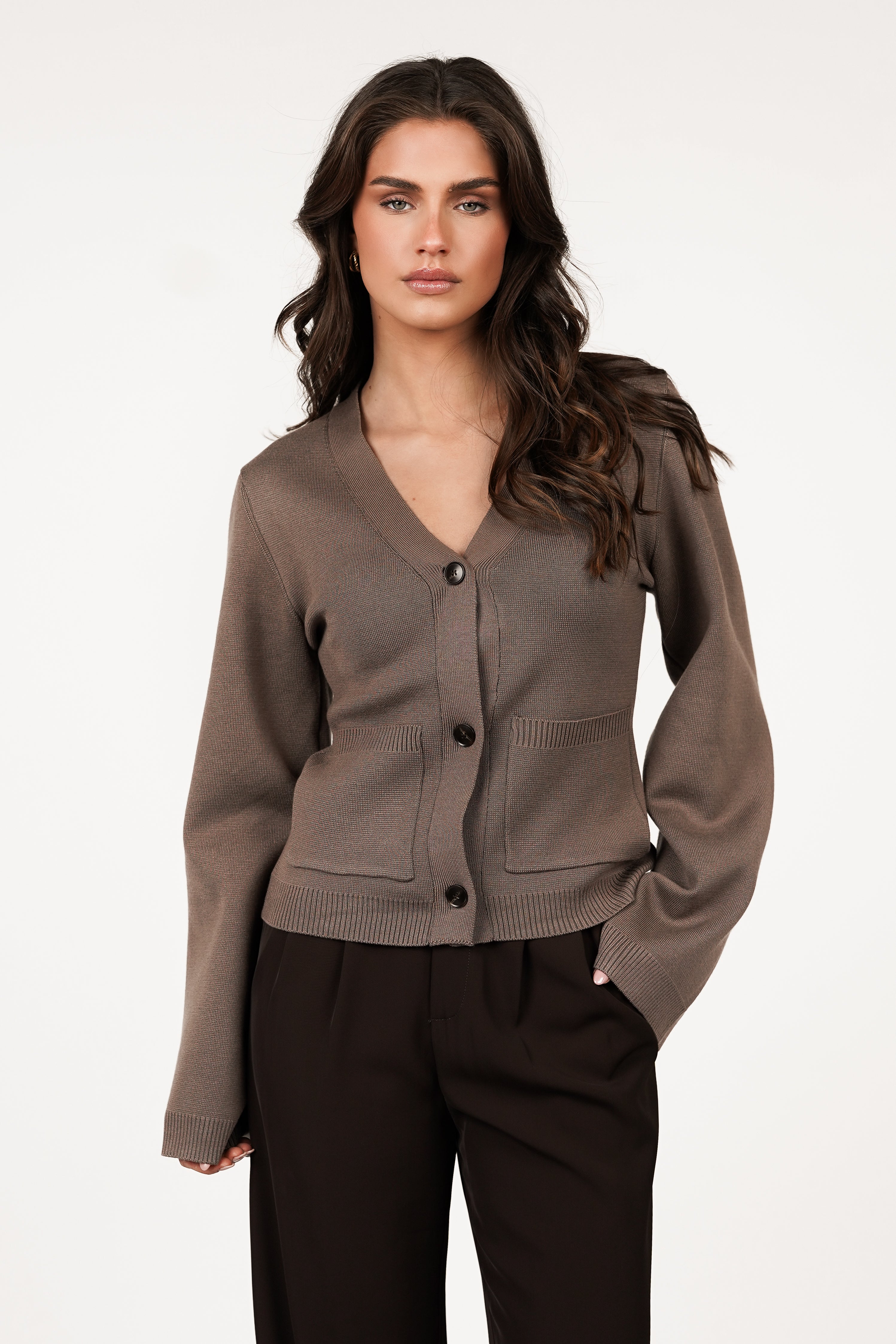 Cardigan getailleerd met zakken taupe - Elsa
