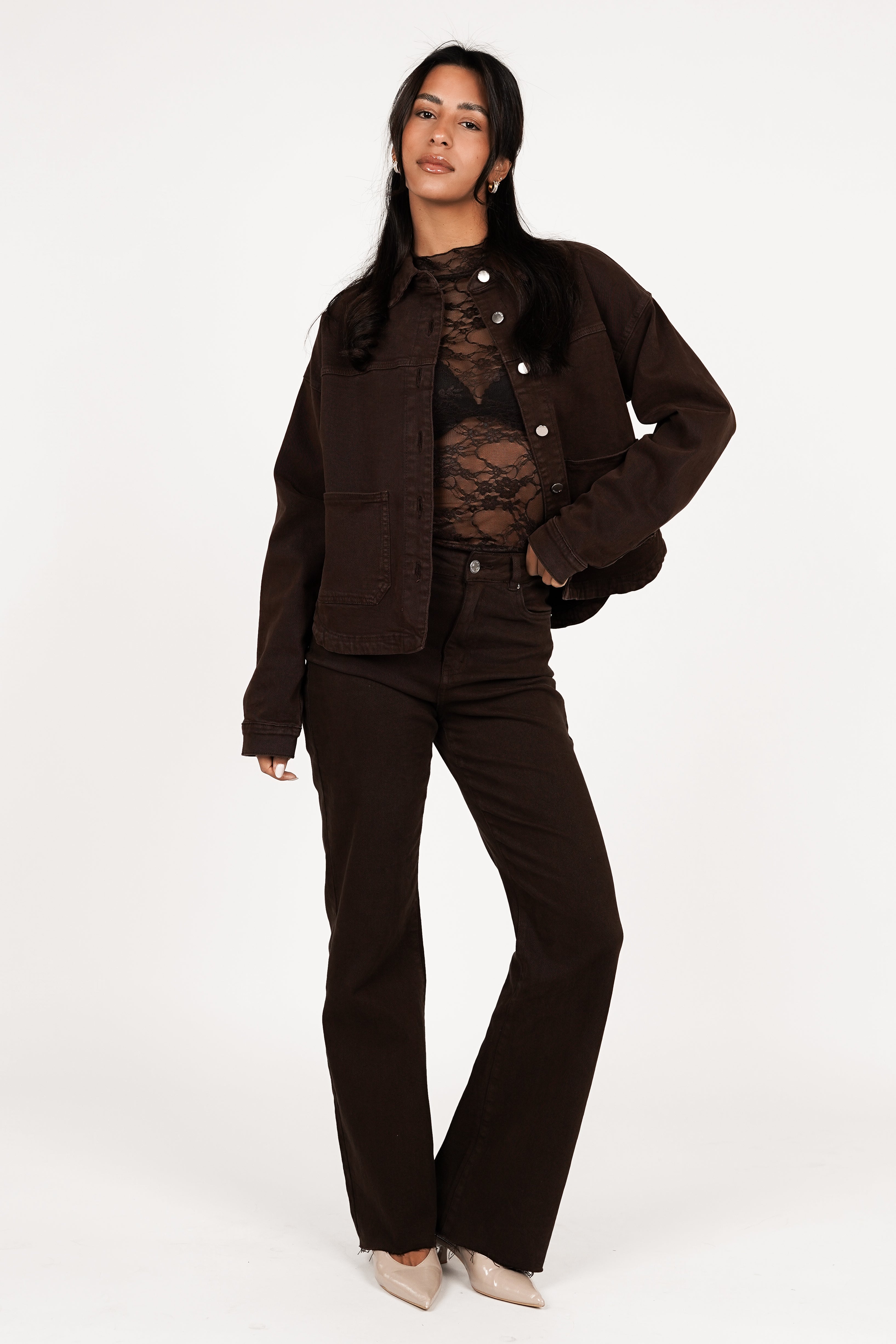 Denim blouse oversized bruin - Novi