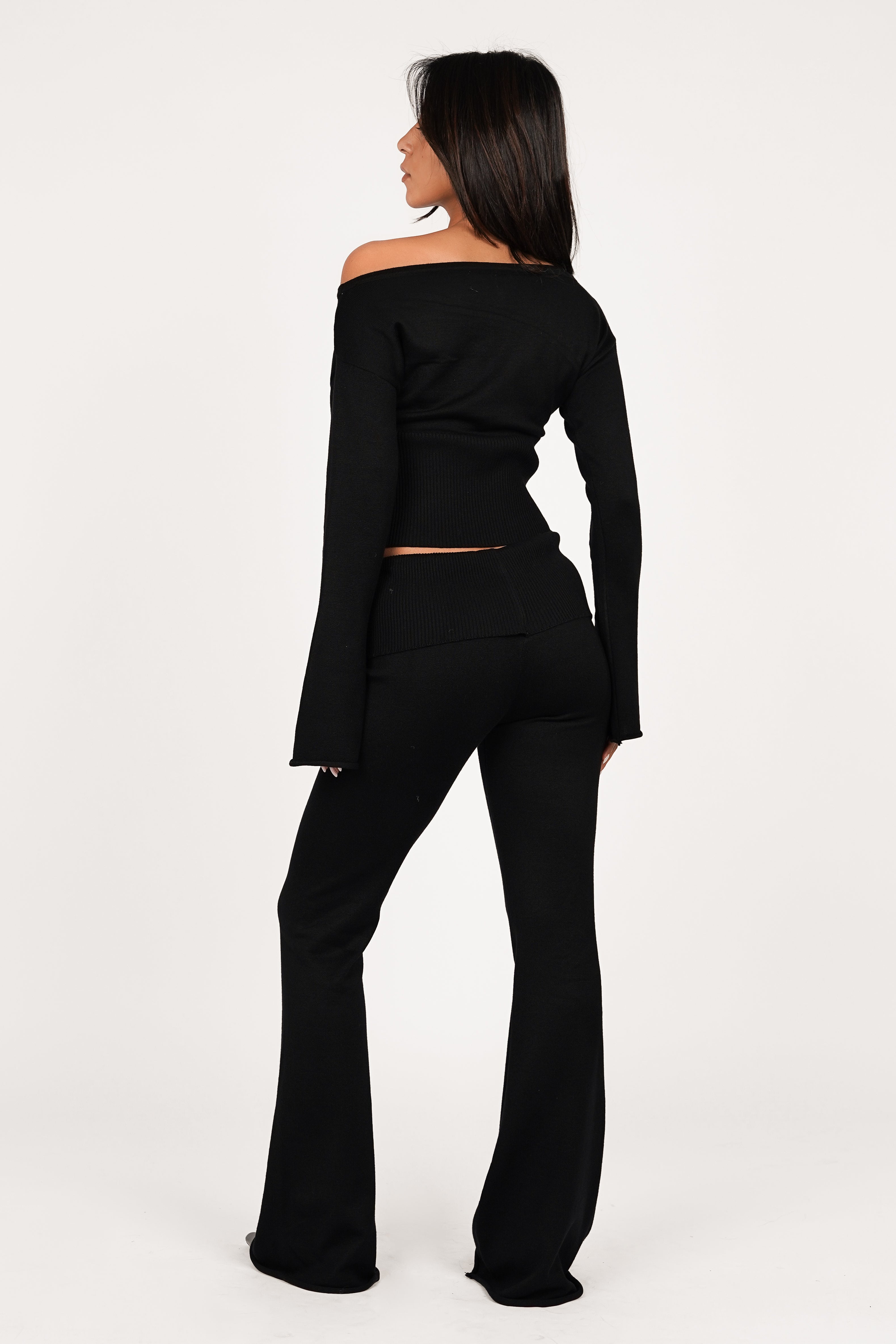 De Pia flared broek heeft een low waist model en is een all time favorite! Deze heerlijke broek is lekker stretchy en heeft een flared model voor een speelse touch. De broek heeft een omgeslagen bovenzijde met een ribbel en past perfect met onze matchende Scout top.