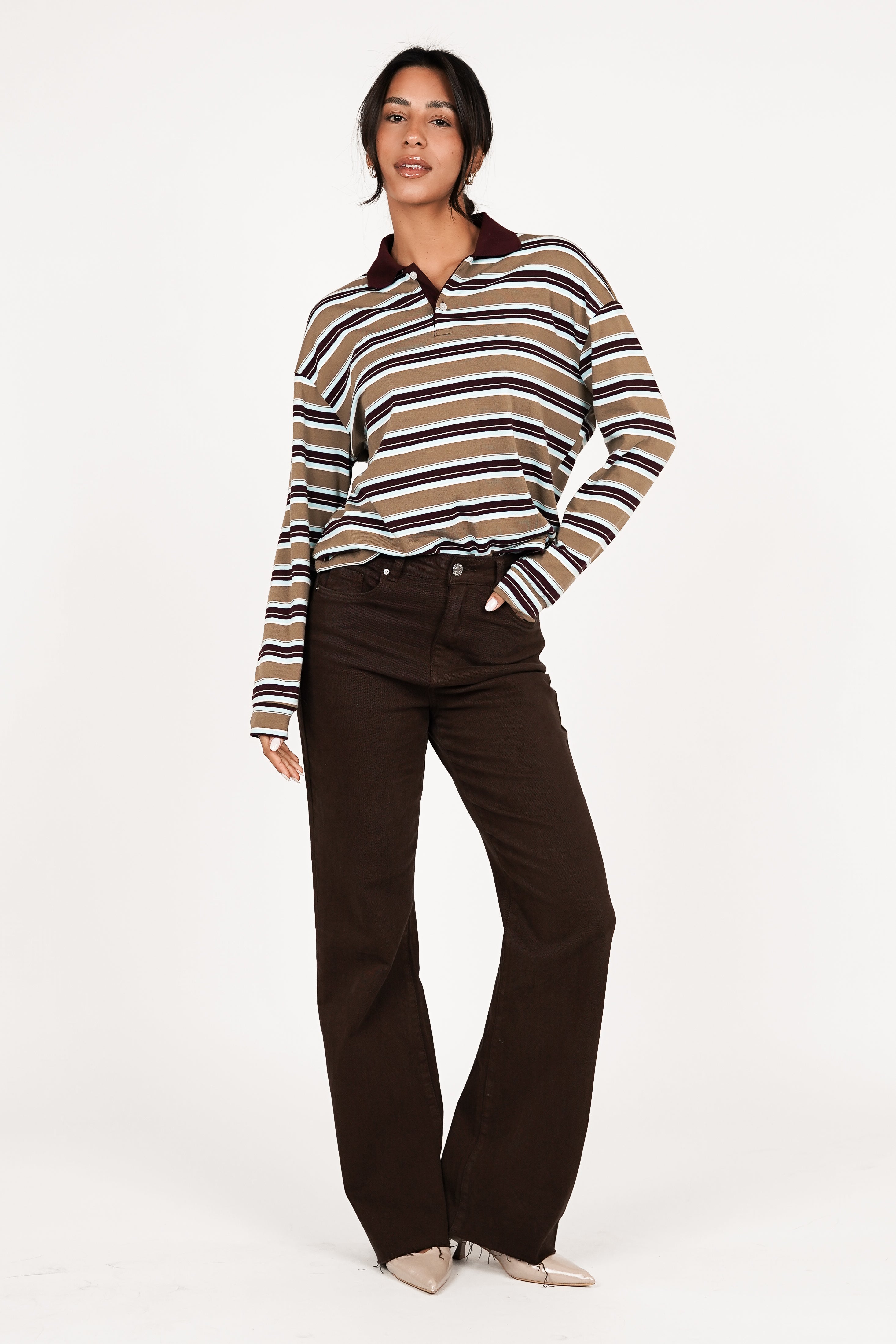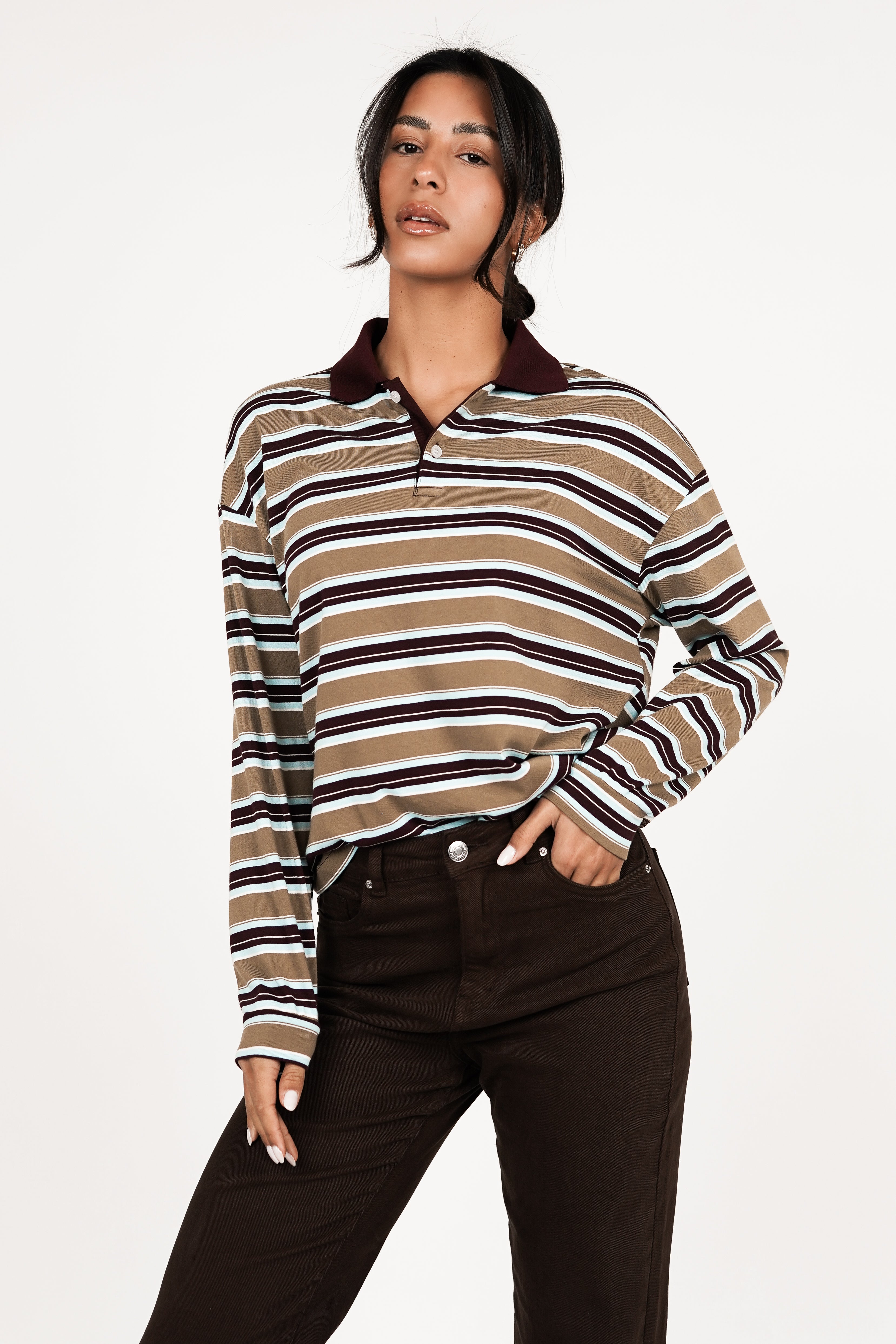 De Ariana oversized gestreepte polo met lange mouwen is een echte klassieker met een moderne twist. De top heeft knoopjes in de hals waarmee je de top open en dicht kunt dragen en bevat lange mouwen. De losse fit geeft de polo een super stoere uitstraling.