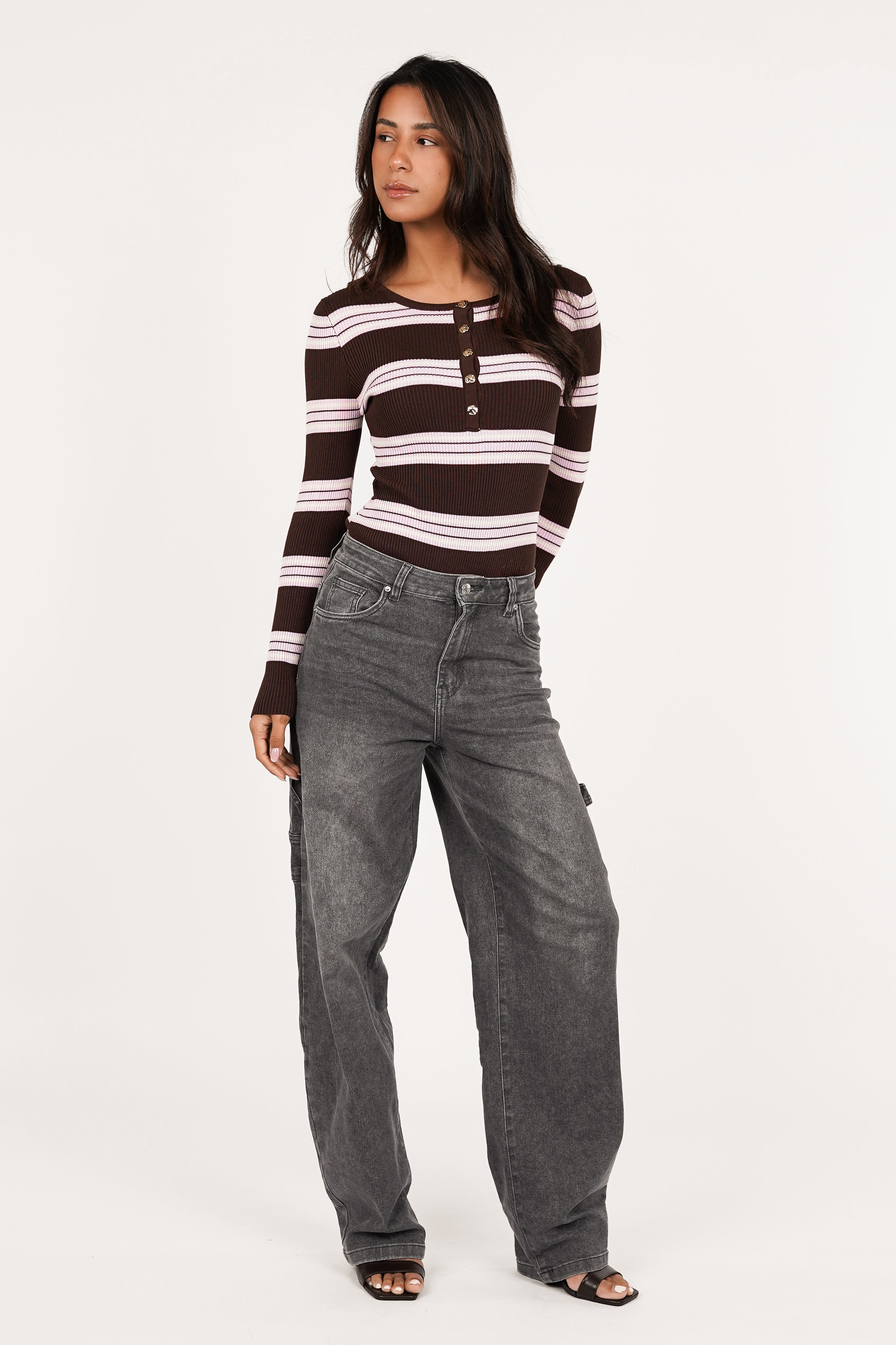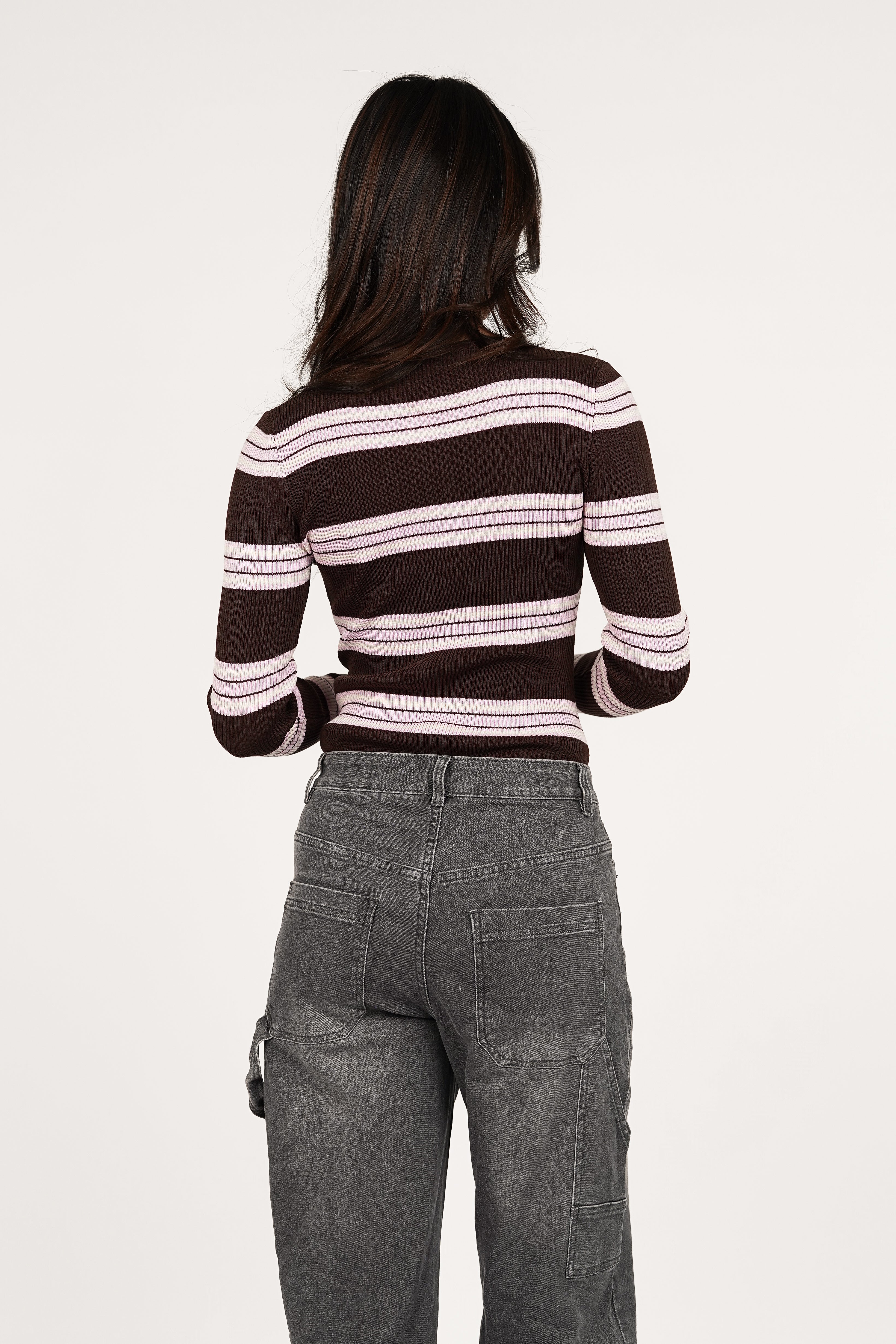 Gestreepte rib bodysuit bruin/roze - Scotty
