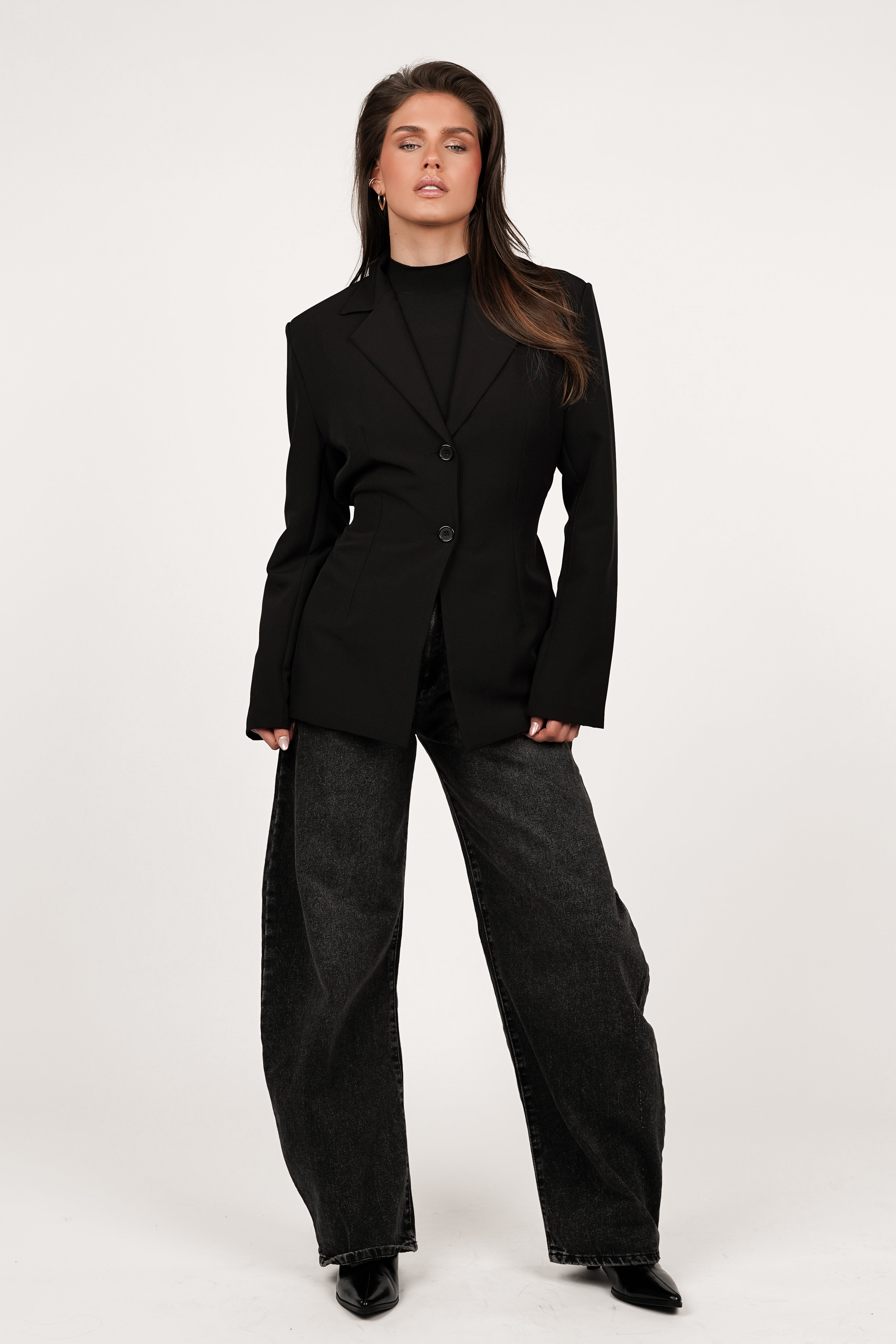 Esuals the label! De Moon getailleerde blazer met strikdetail voor dames is de perfecte combinatie van elegantie en moderne stijl. Het subtiele strikdetail aan de taille accentueert je silhouet en geeft een vrouwelijke, stijlvolle touch aan je outfit. Combineer het op een pantalon en jij bent klaar voor het feest!