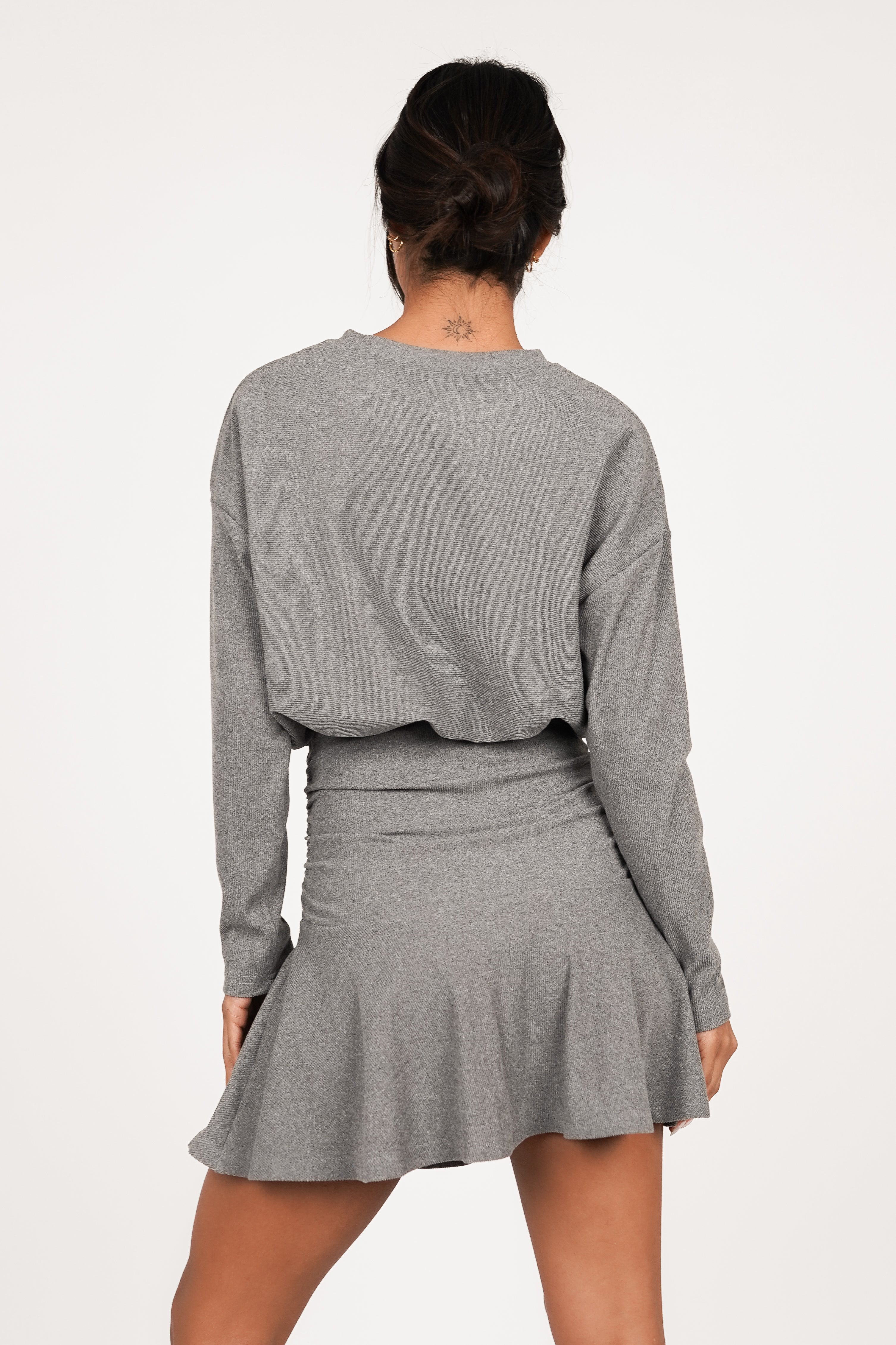 Jurk met ribstof en ruffle grijs - Nanna
