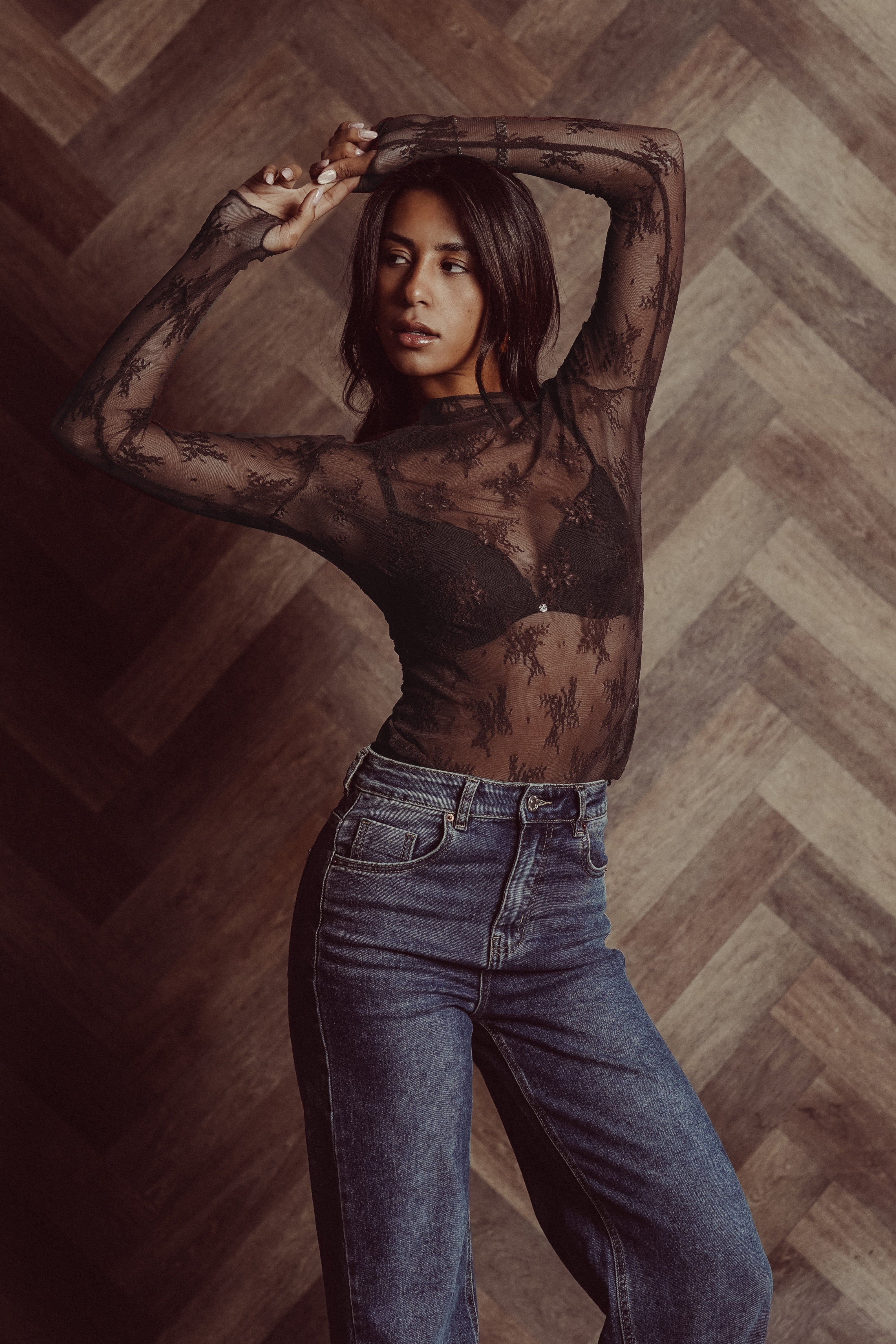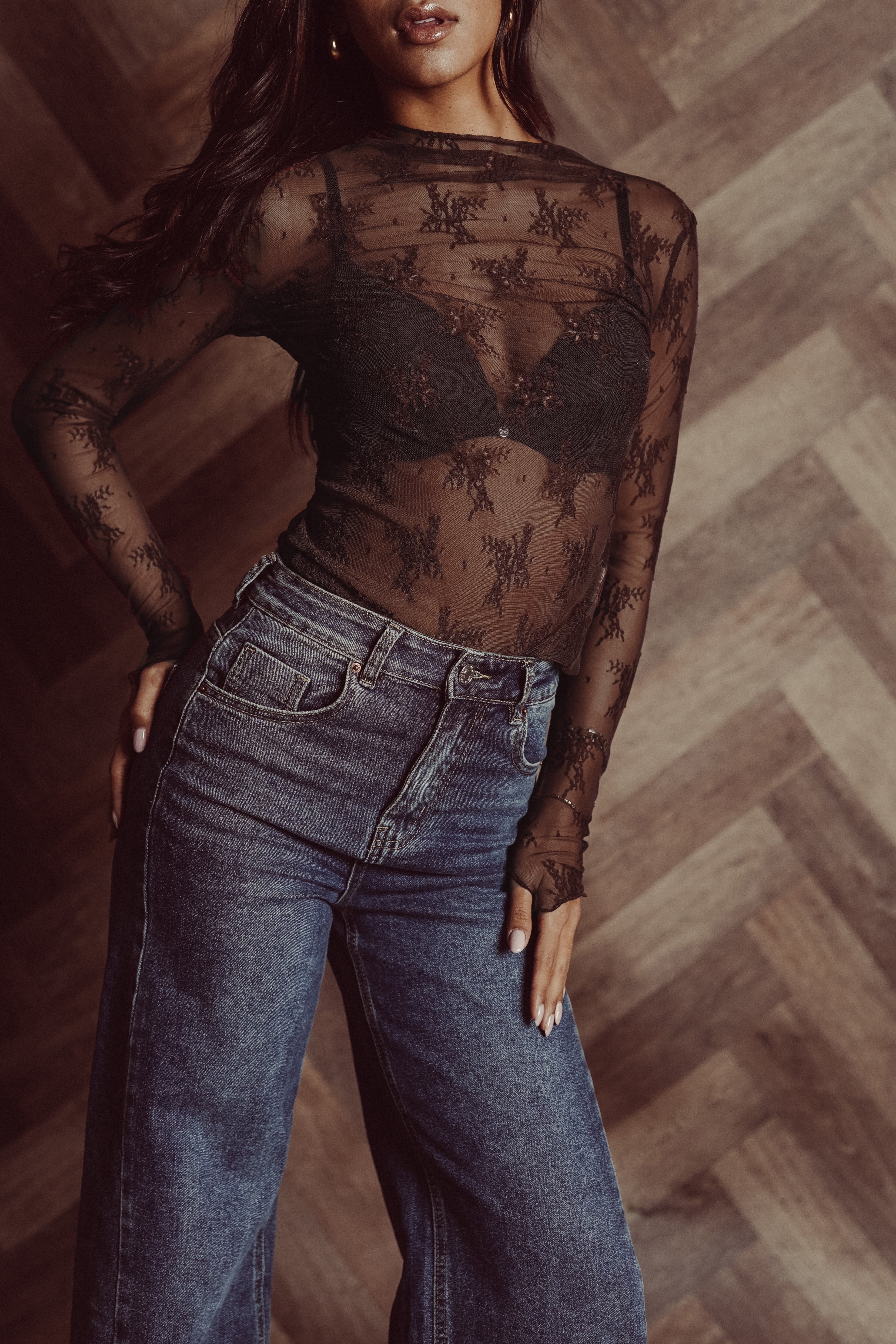 Kanten top doorschijnend bruin - Bodil
