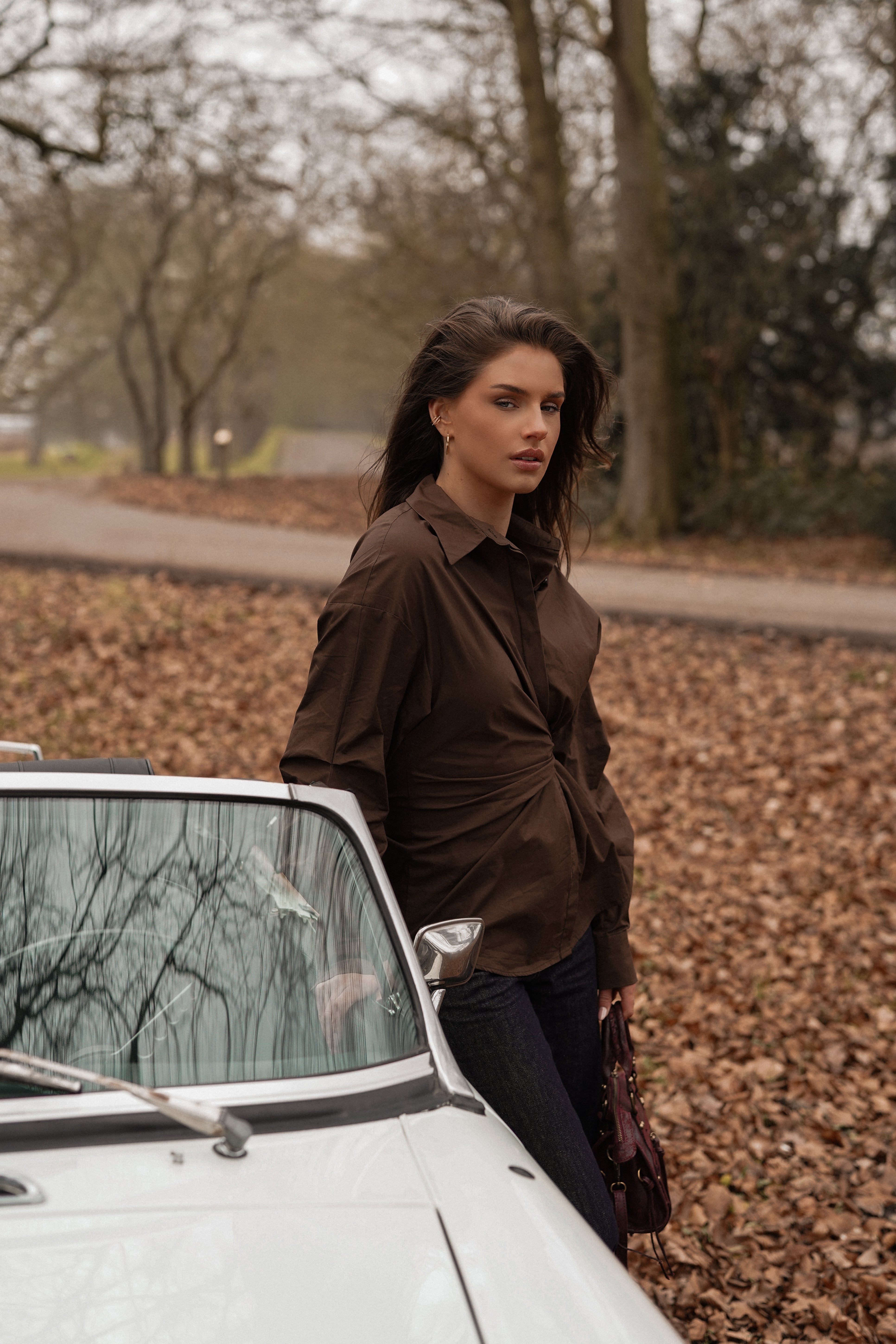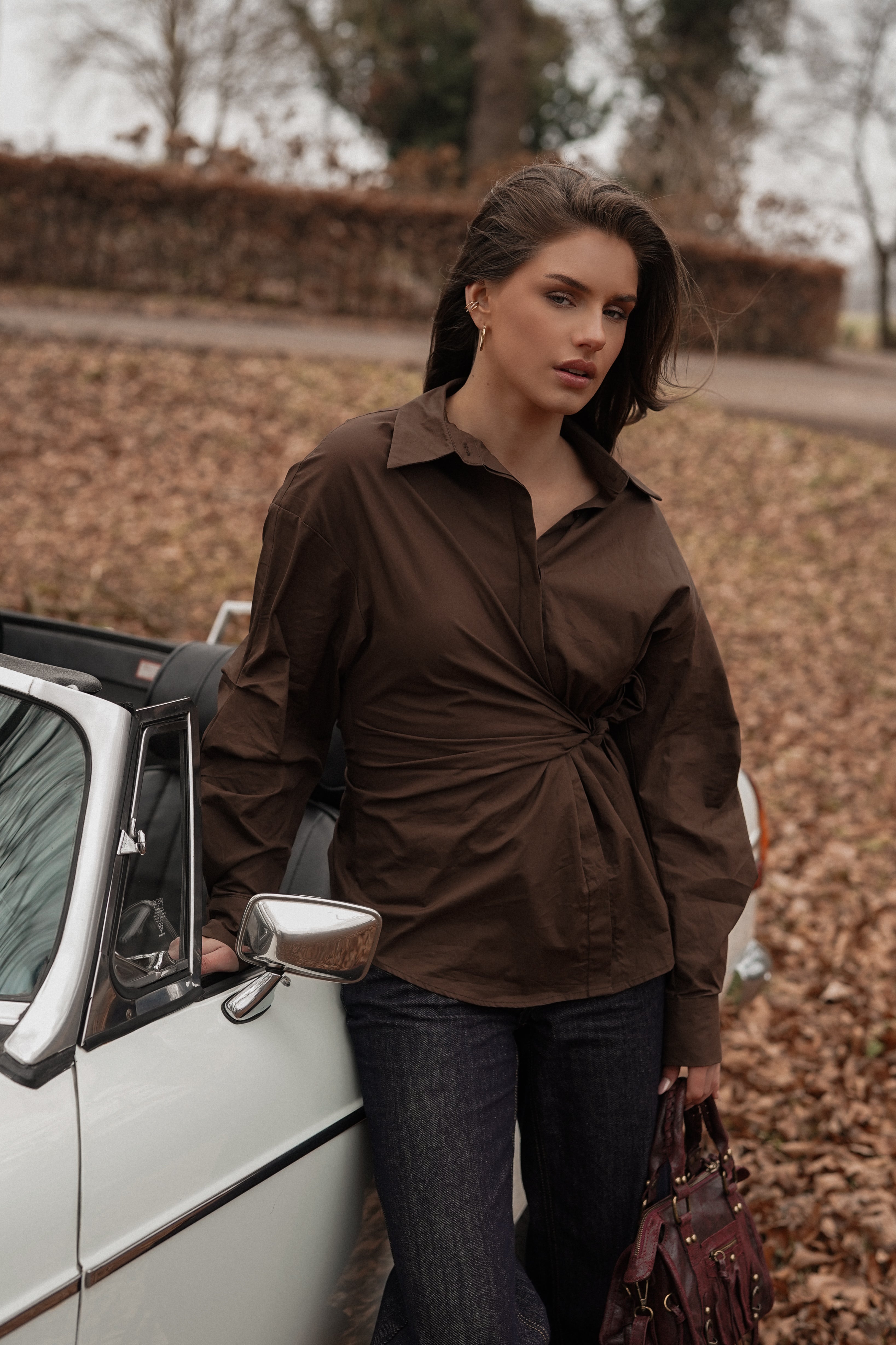 De Meerle blouse wordt jou all time favorite! Door de losse, oversized fit valt de blouse soepel en geeft hij je outfit een nonchalante maar elegante uitstraling. De blouse wordt gesloten door middel van knopen en bevat een strik die je aan de zijkant in je taille kunt strikken. De mouwen hebben een knoopsluiting met plooidetails op de armen.