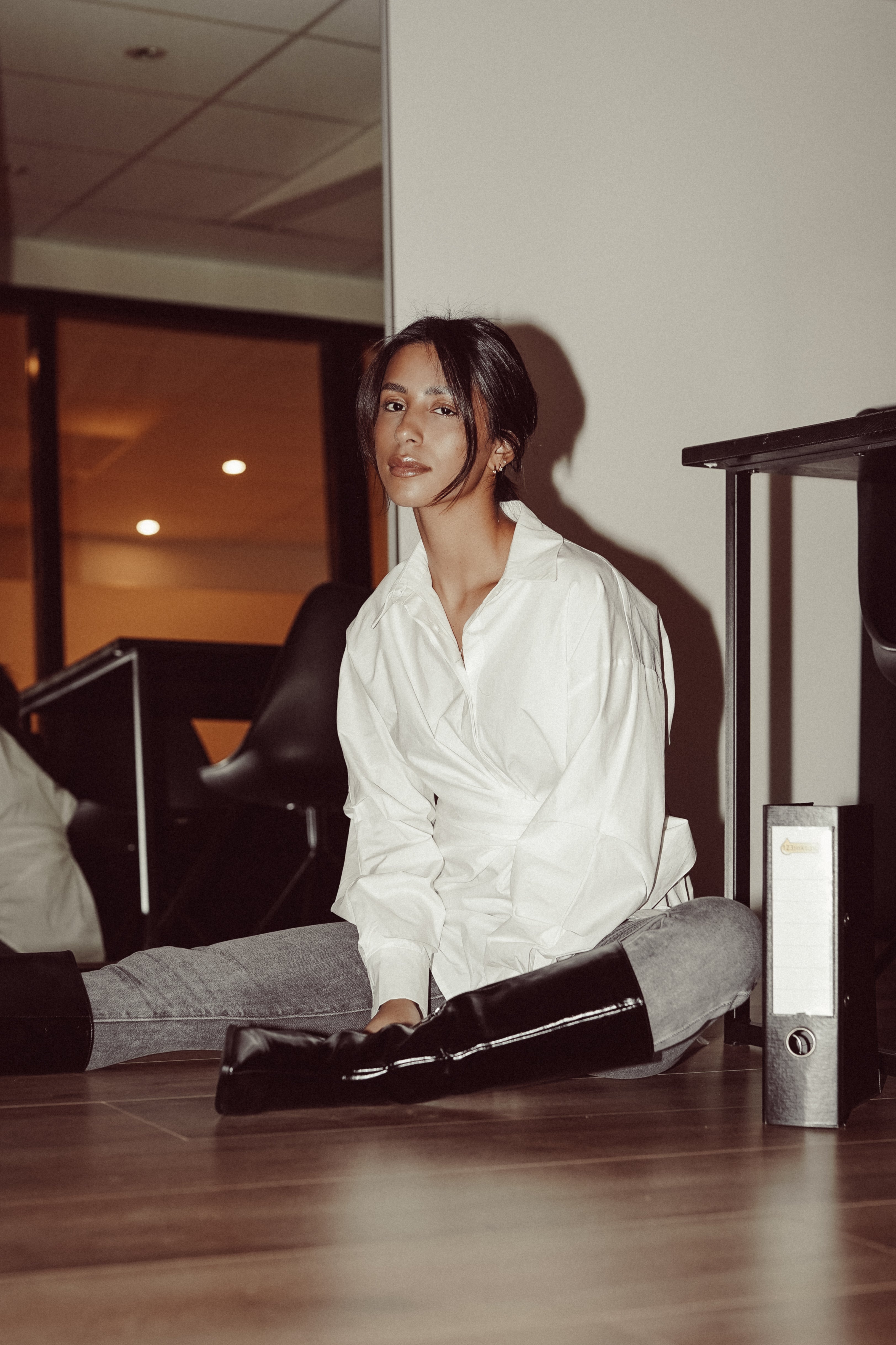De Meerle blouse wordt jou all time favorite! Door de losse, oversized fit valt de blouse soepel en geeft hij je outfit een nonchalante maar elegante uitstraling. De blouse wordt gesloten door middel van knopen en bevat een strik die je aan de zijkant in je taille kunt strikken. De mouwen hebben een knoopsluiting met plooidetails op de armen.