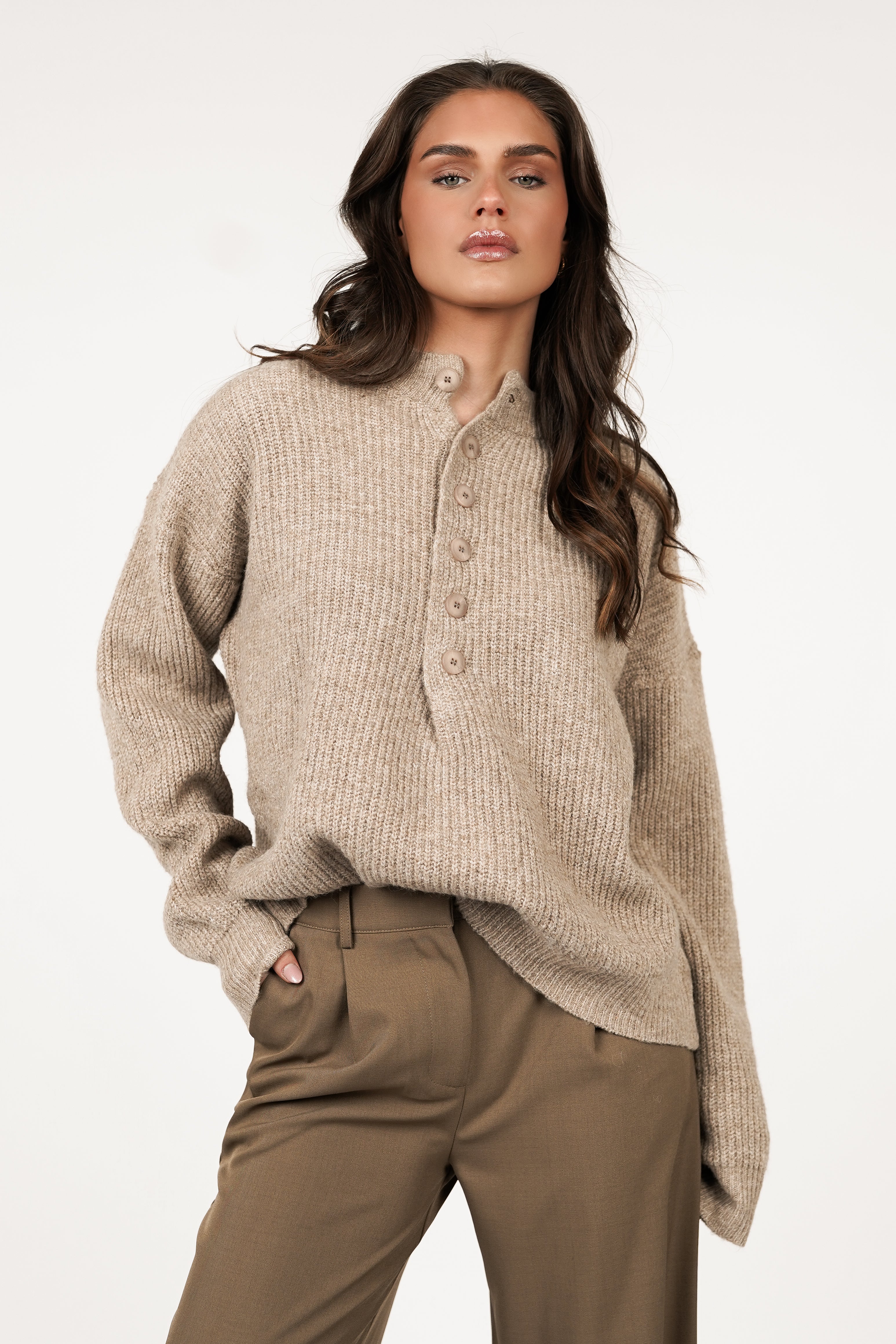 De Layla gebreide trui heeft een losse pasvorm waardoor het een speelse touch geeft. De trui is super makkelijk te combineren en perfect voor iedere gelegenheid. Houd jij van oversized? Dan is deze trui perfect voor jou.