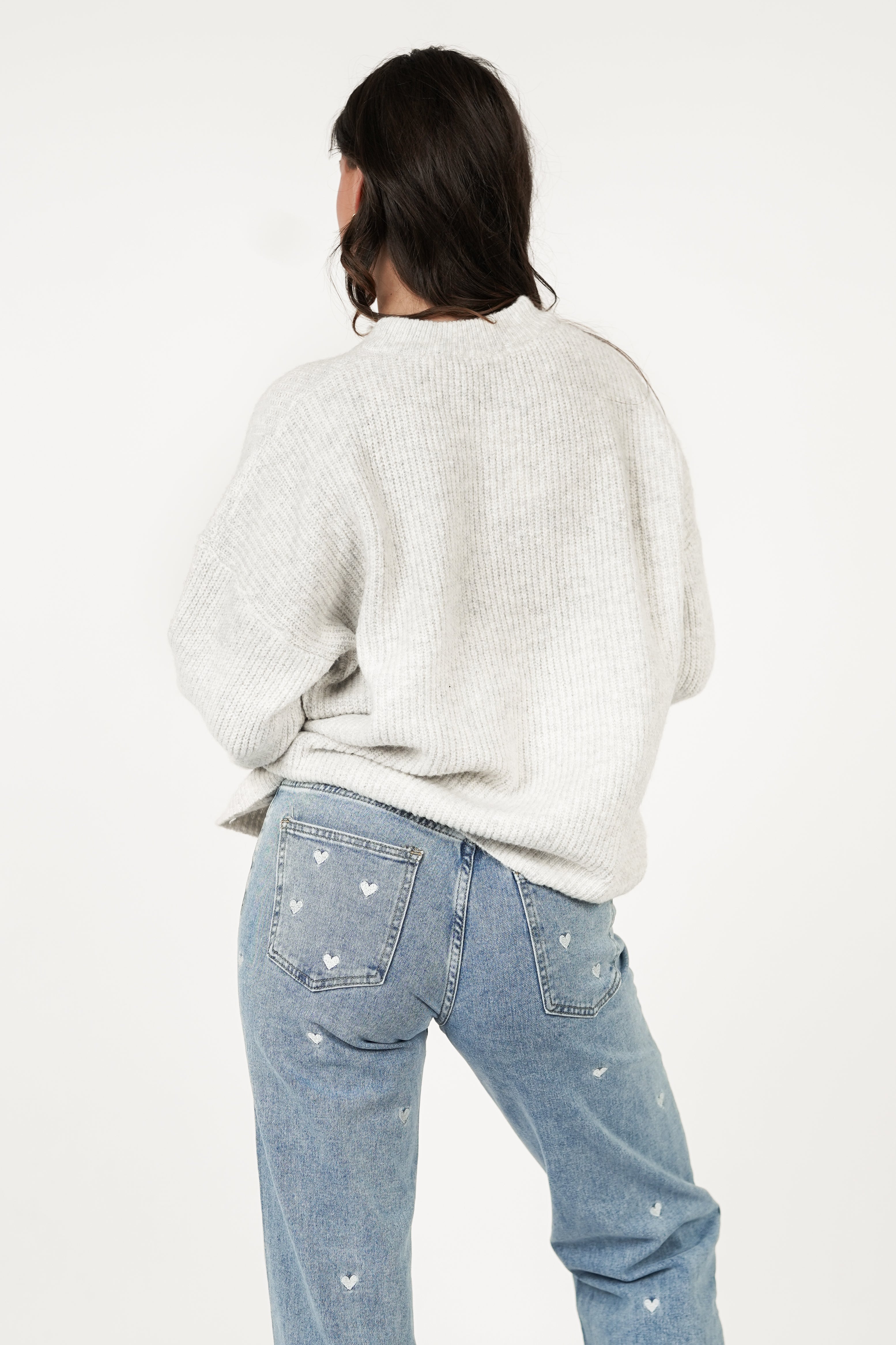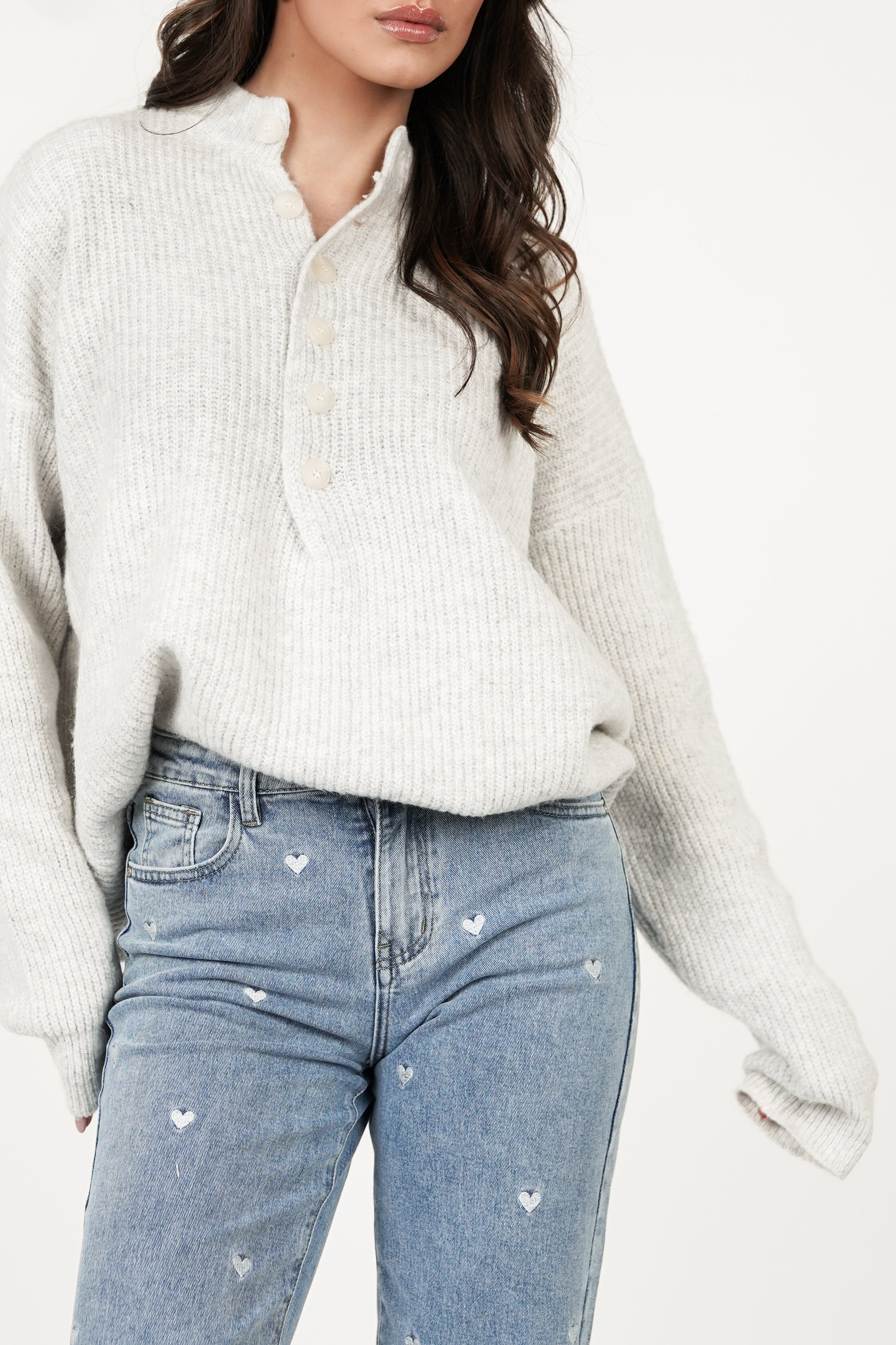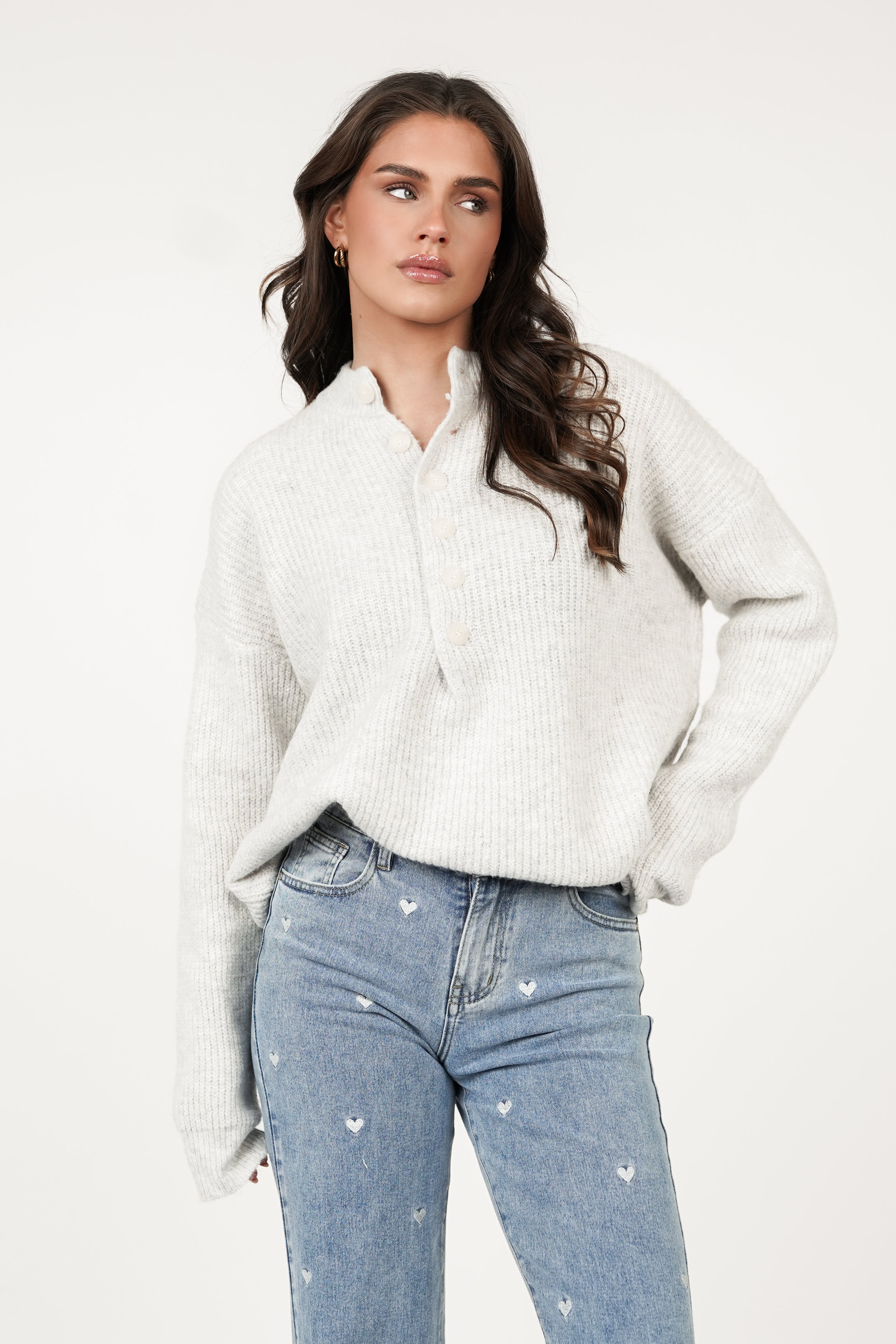 Oversized gebreide trui knopen grijs - Layla
