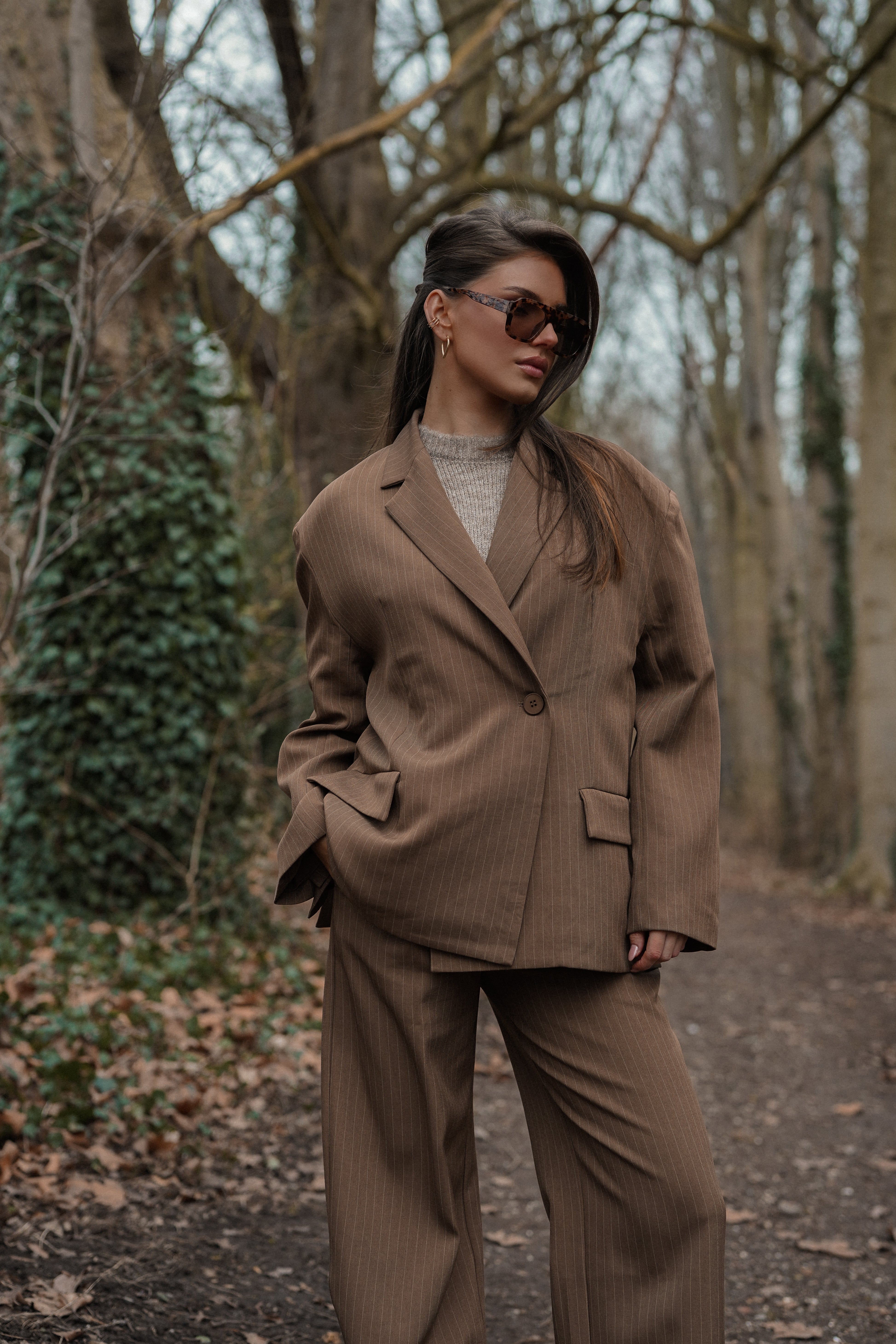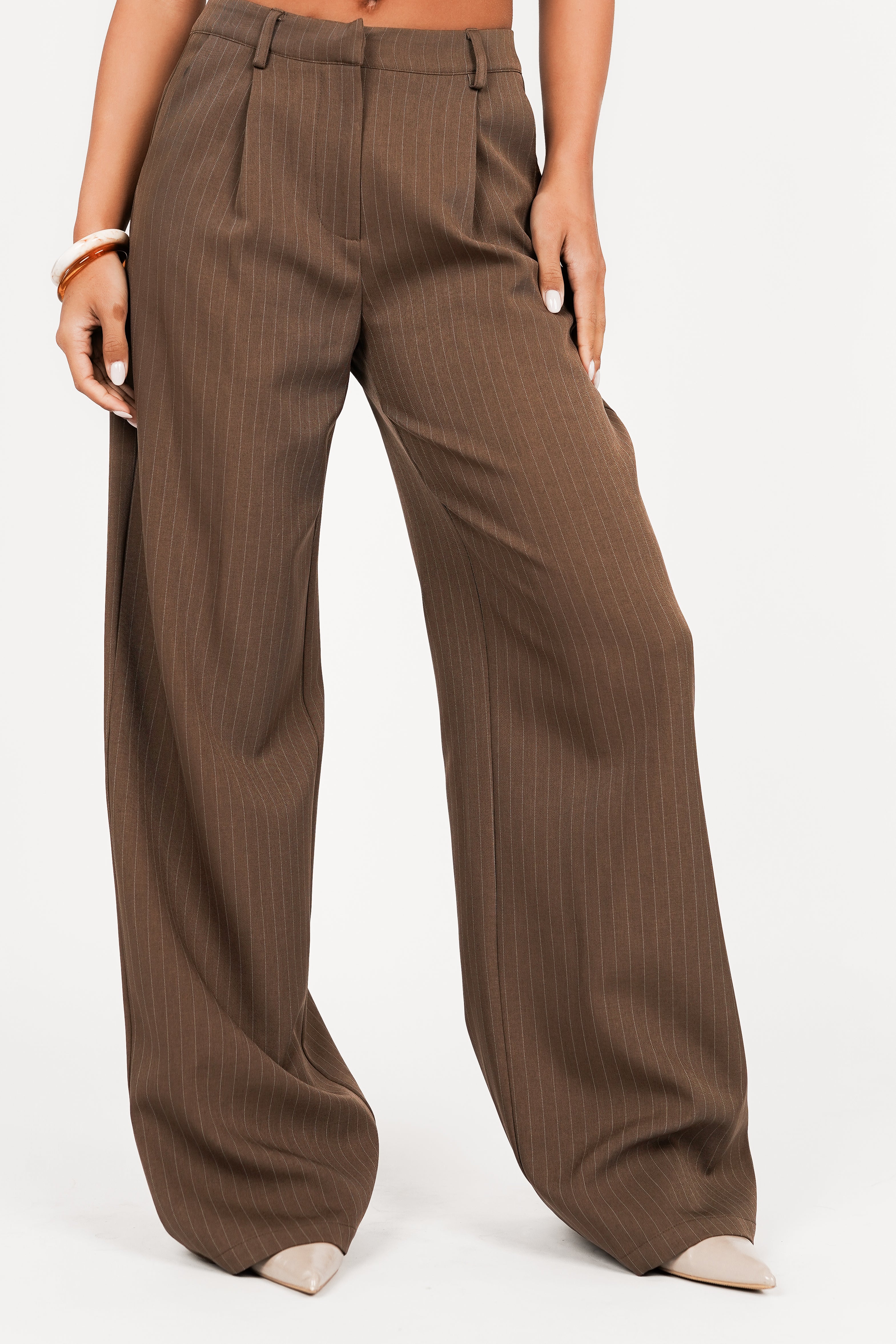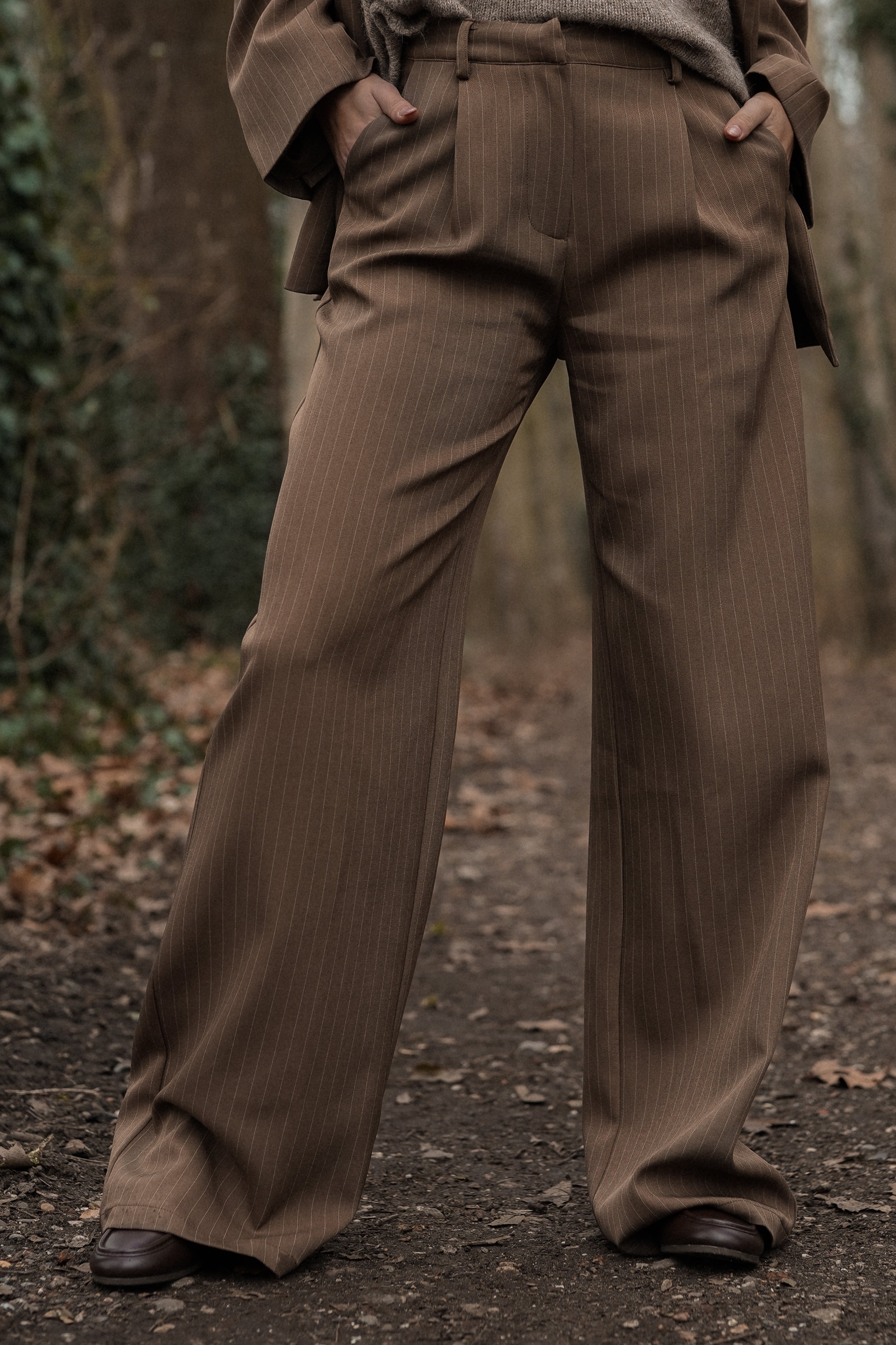 Pantalon tall met krijtstreep bruin - Livera