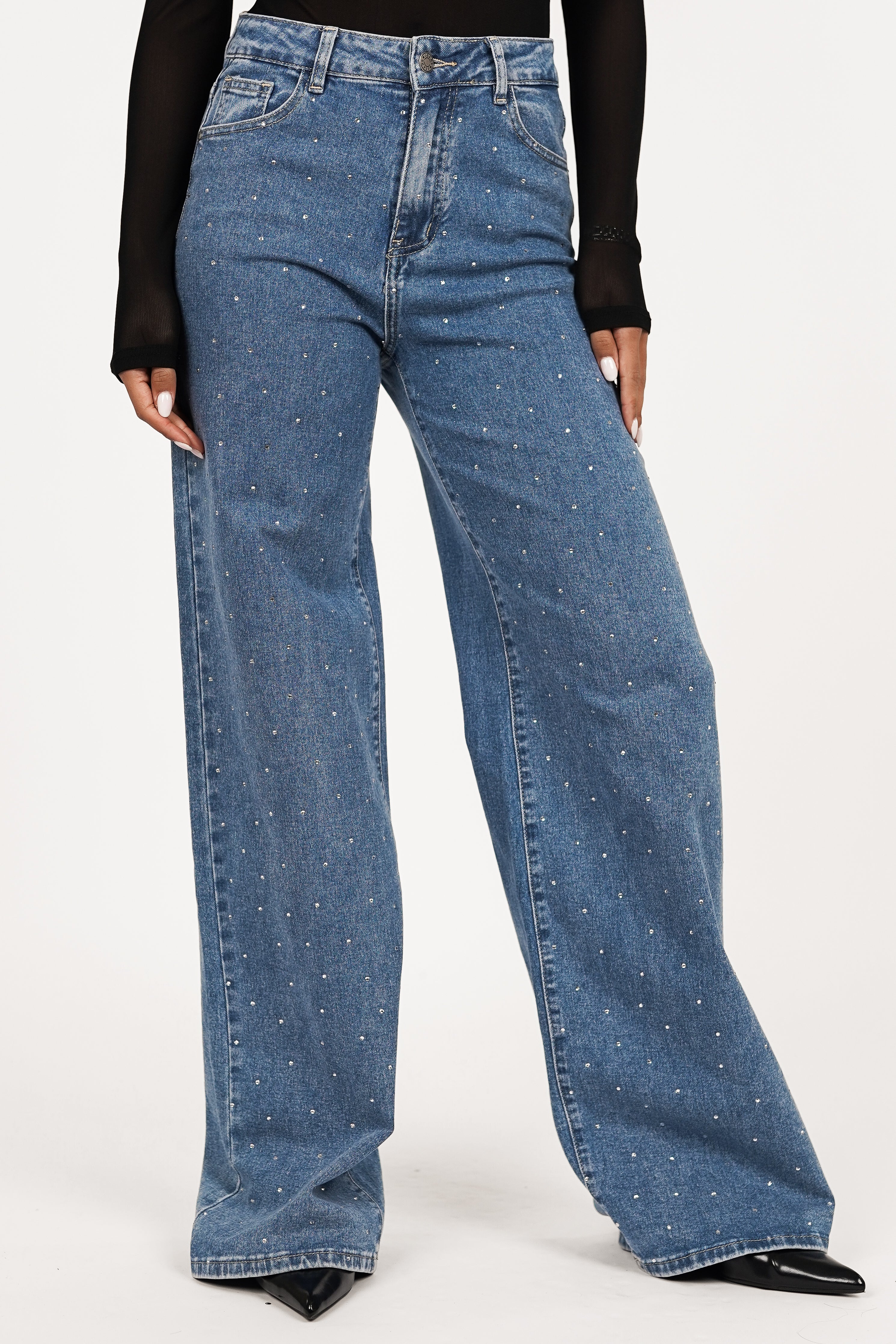 Bring the sparkle! Deze straight leg jeans met subtiele steentjes geeft jouw outfit precies die shimmer die je nodig hebt. De straight fit zorgt voor een tijdloze, flatterende look, terwijl de glinsterende details langs de broek een speelse touch toevoegen. De jeans bevat stretch en een heeft een high waist model. Super leuk te dragen voor een avondje uit of om jou basic look net even iets extra's te geven.