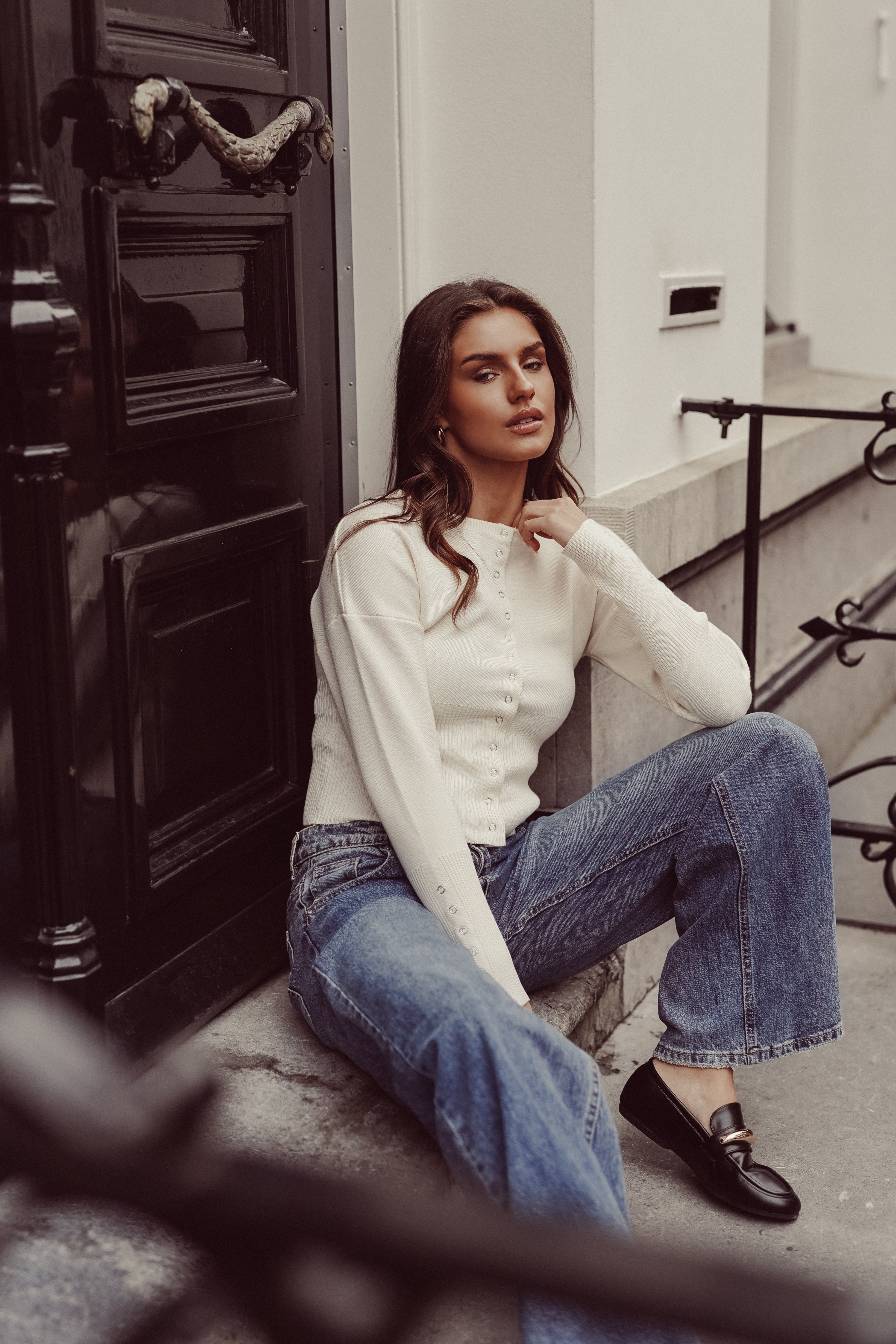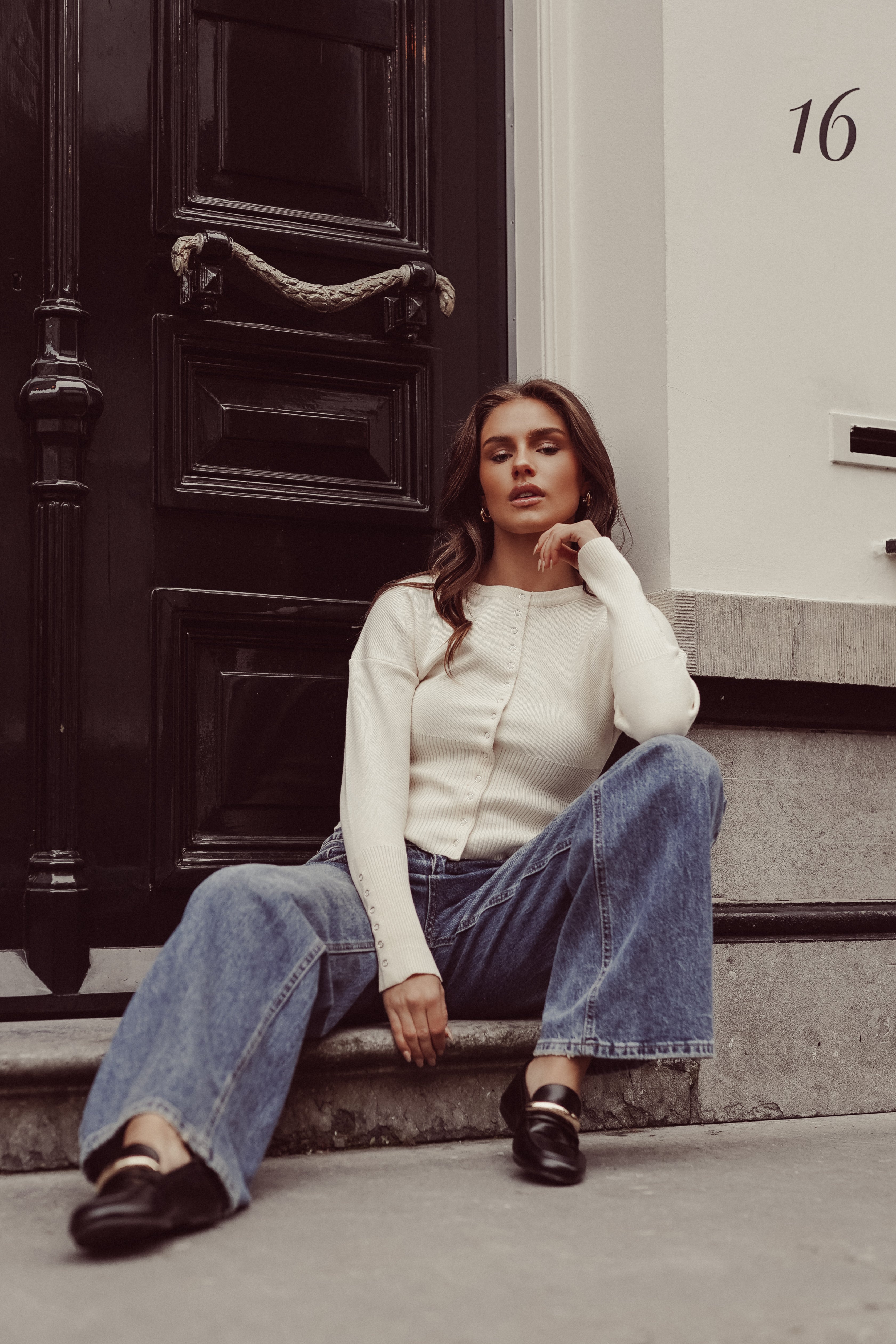 Deze aangesloten stretch top is een perfecte mix van comfort en stijl. De stretchy kwaliteit zorgt voor een zachte, aansluitende fit, terwijl de drukknoopjes een speels maar clean detail toevoegen. Ideaal voor casual looks of work days.