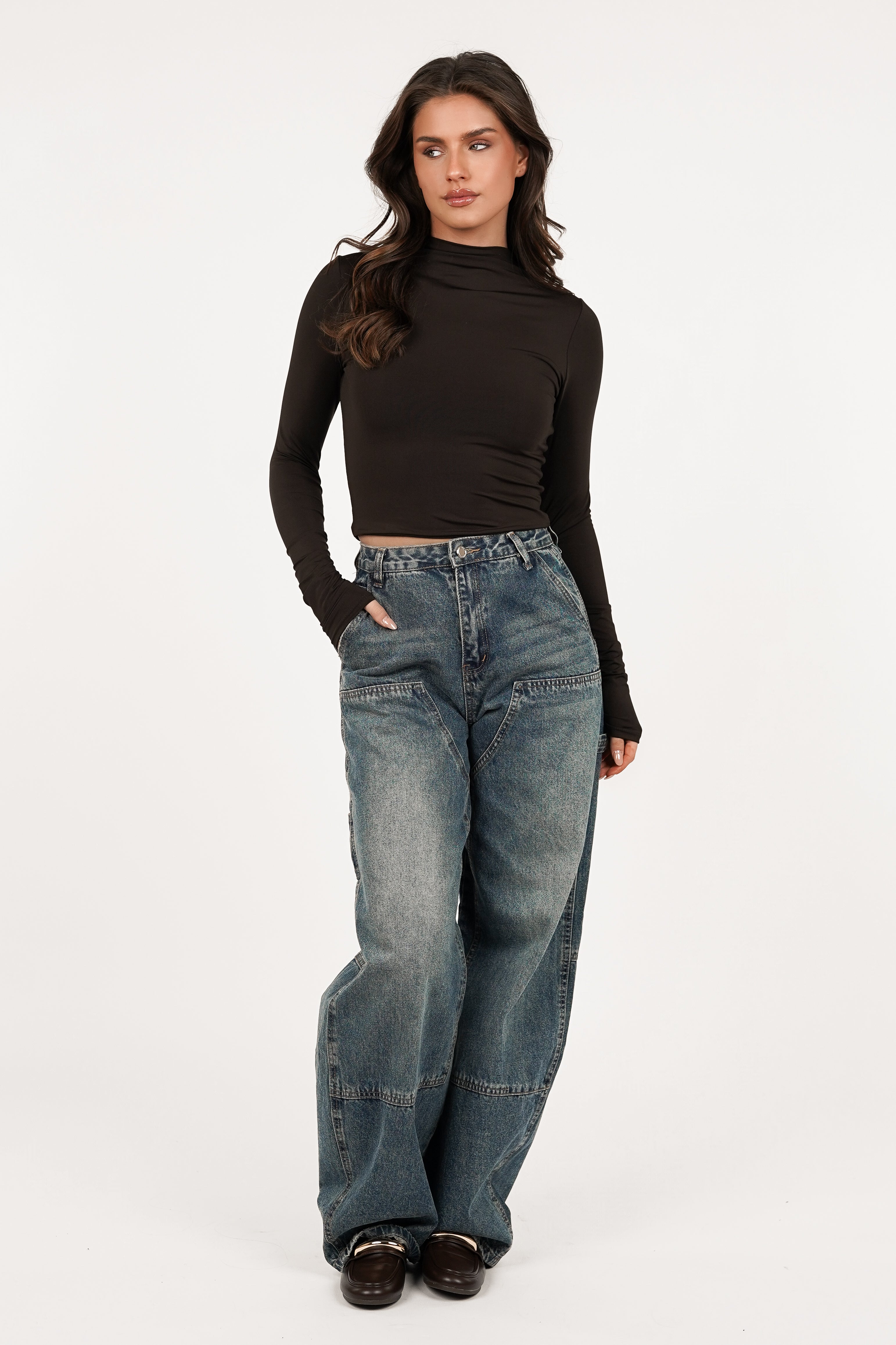 Stretch top met plooien bruin - Ellen