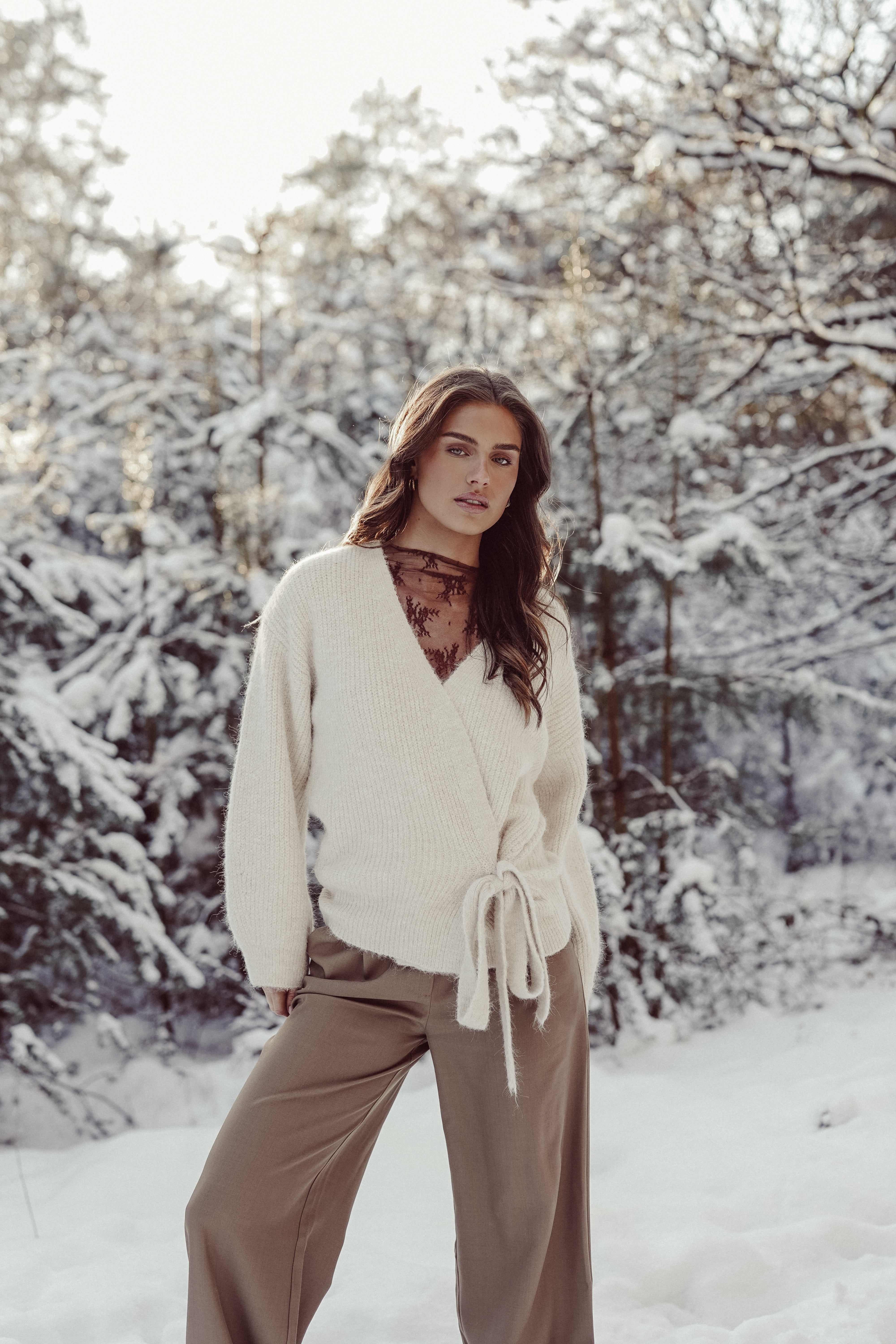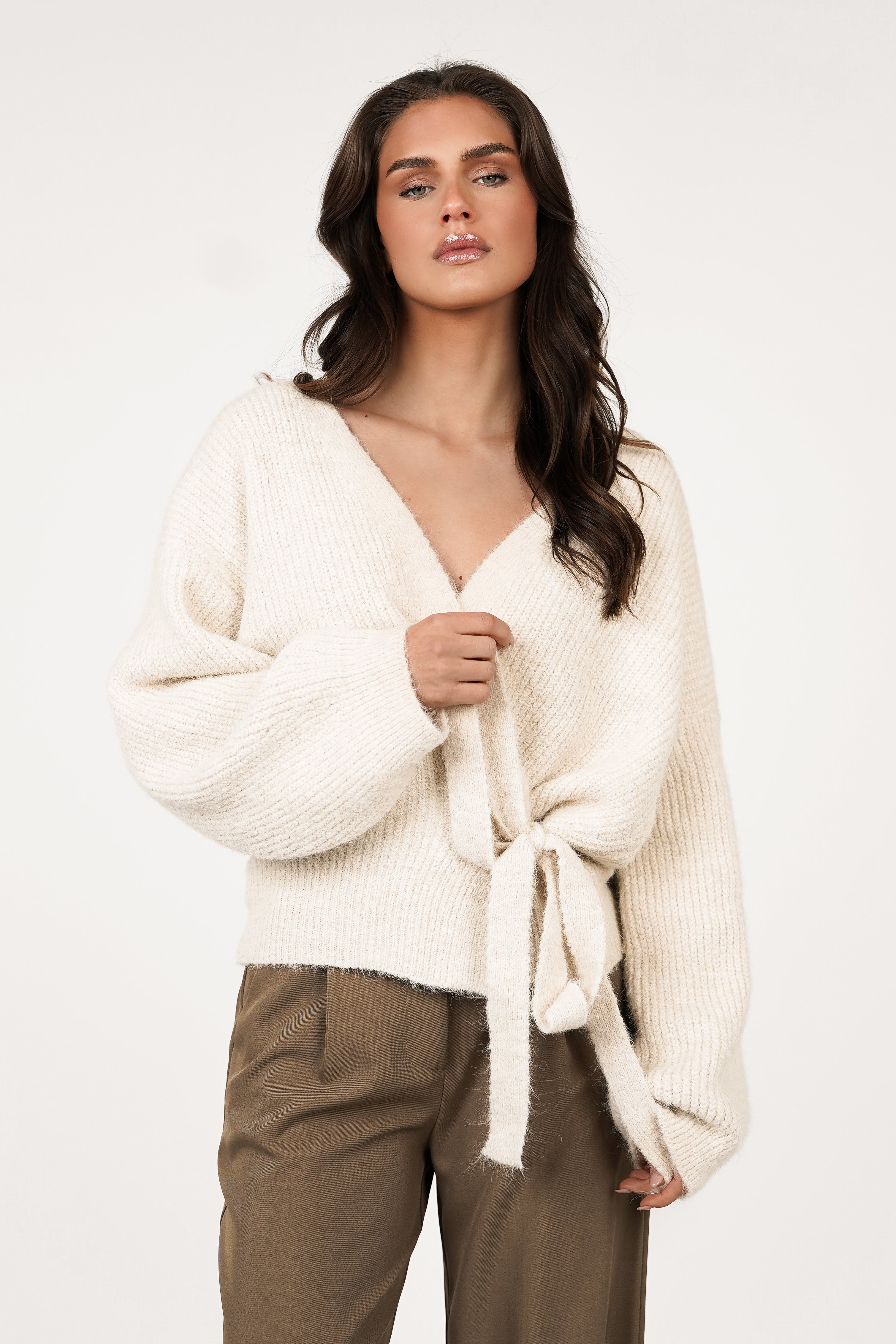 Wikkelcardigan lange mouw creme - Carmen