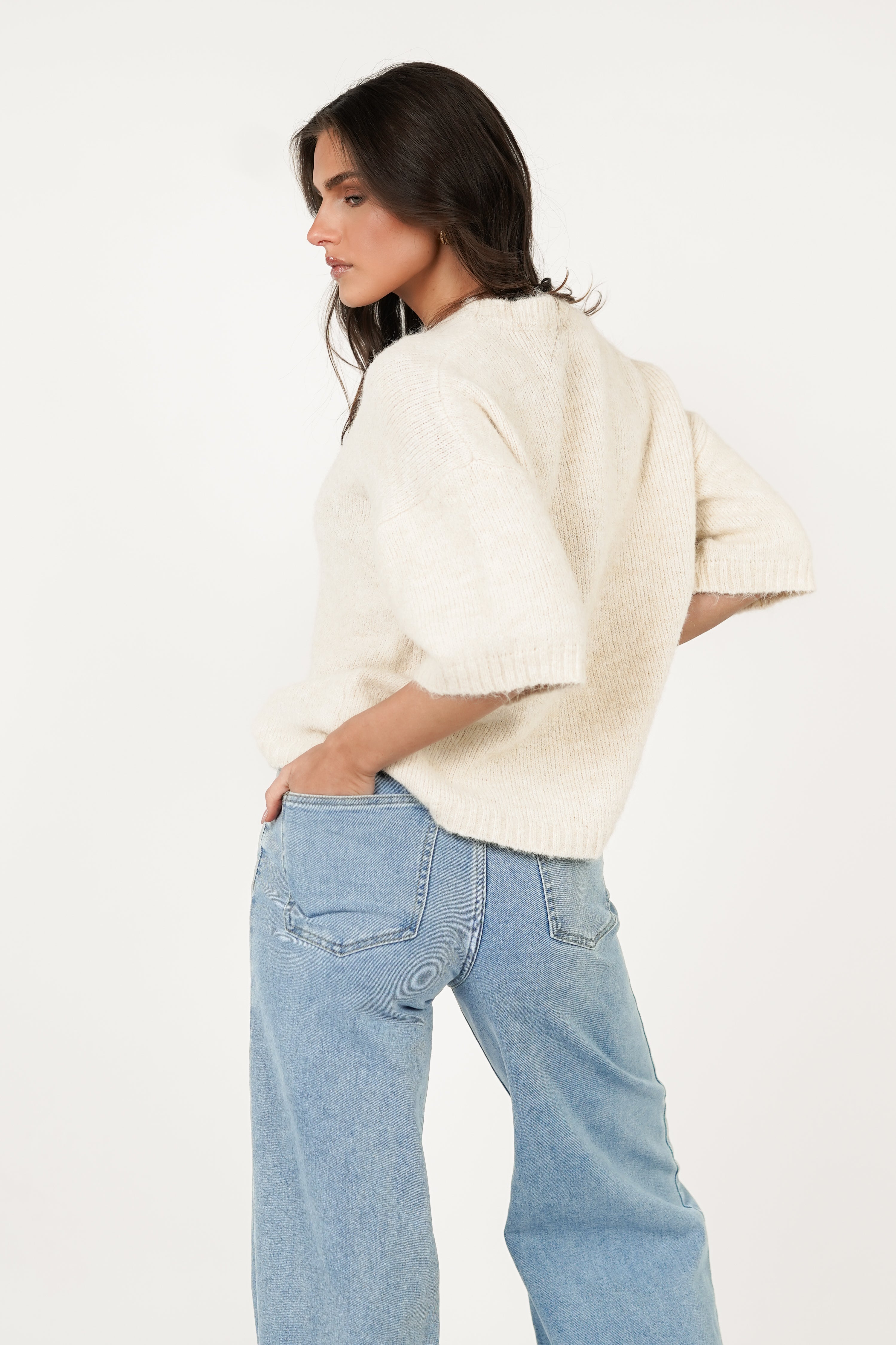 De Annelou zachte trui met korte mouw is het ideale item voor wie houdt van comfort en stijl. De trui heeft een super fijne zachte stof en maakt de trui perfect voor iedere gelegenheid. Met deze trui krijg je een super cozy gevoel. Stijl deze top met een jeans en een blazer en jij bent ready to go.
