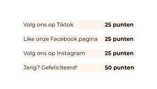 Als dank voor je loyaliteit ontvang je 1 punt voor elke €1 die je besteedt.