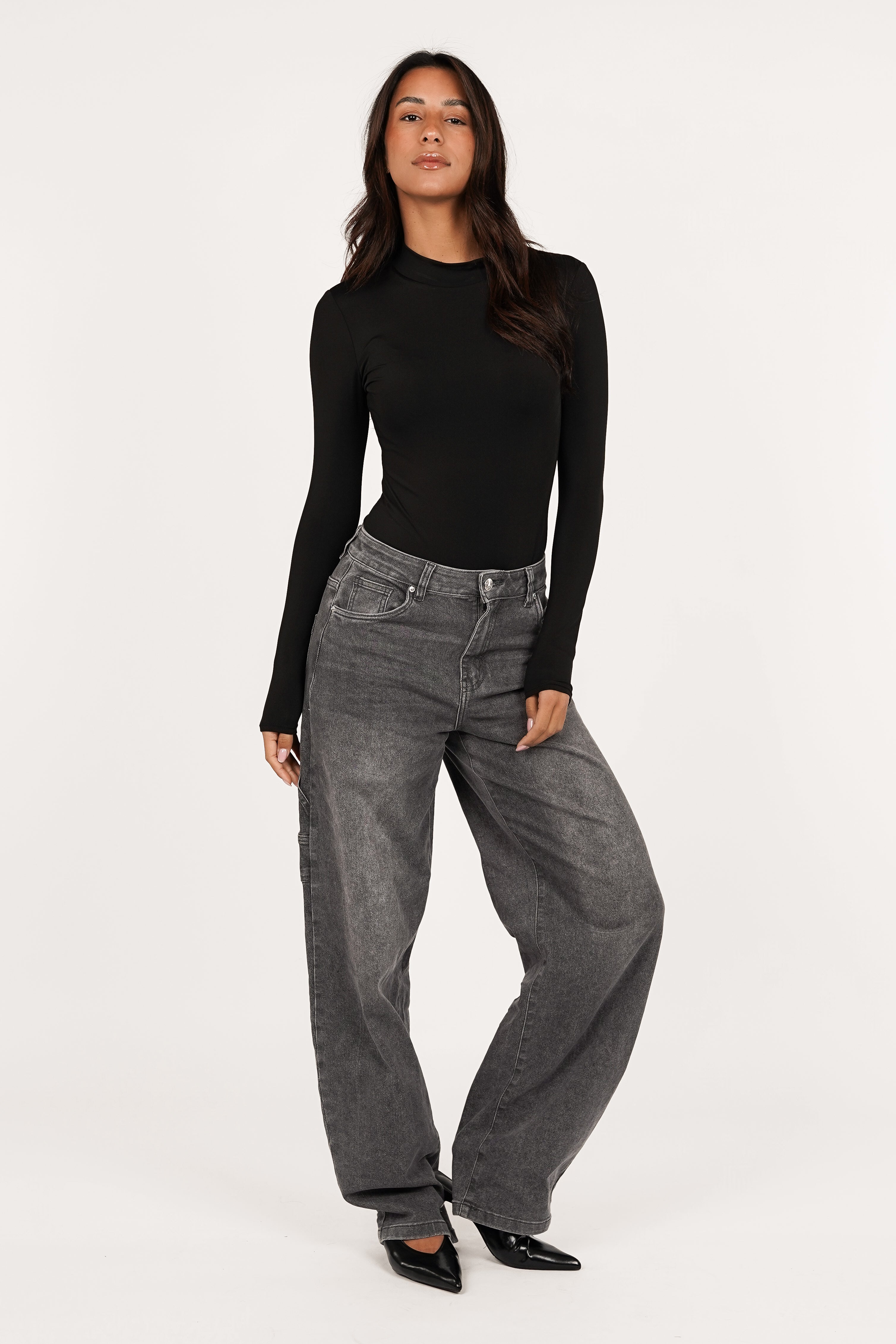 Deze balloon fit jeans in grijs is perfect voor een on trend denim look. De wijde fit geeft een stoere uitstraling, terwijl het twist detail zorgt voor een speelse en unieke touch. Een echte statement jeans die je eindeloos kunt combineren.