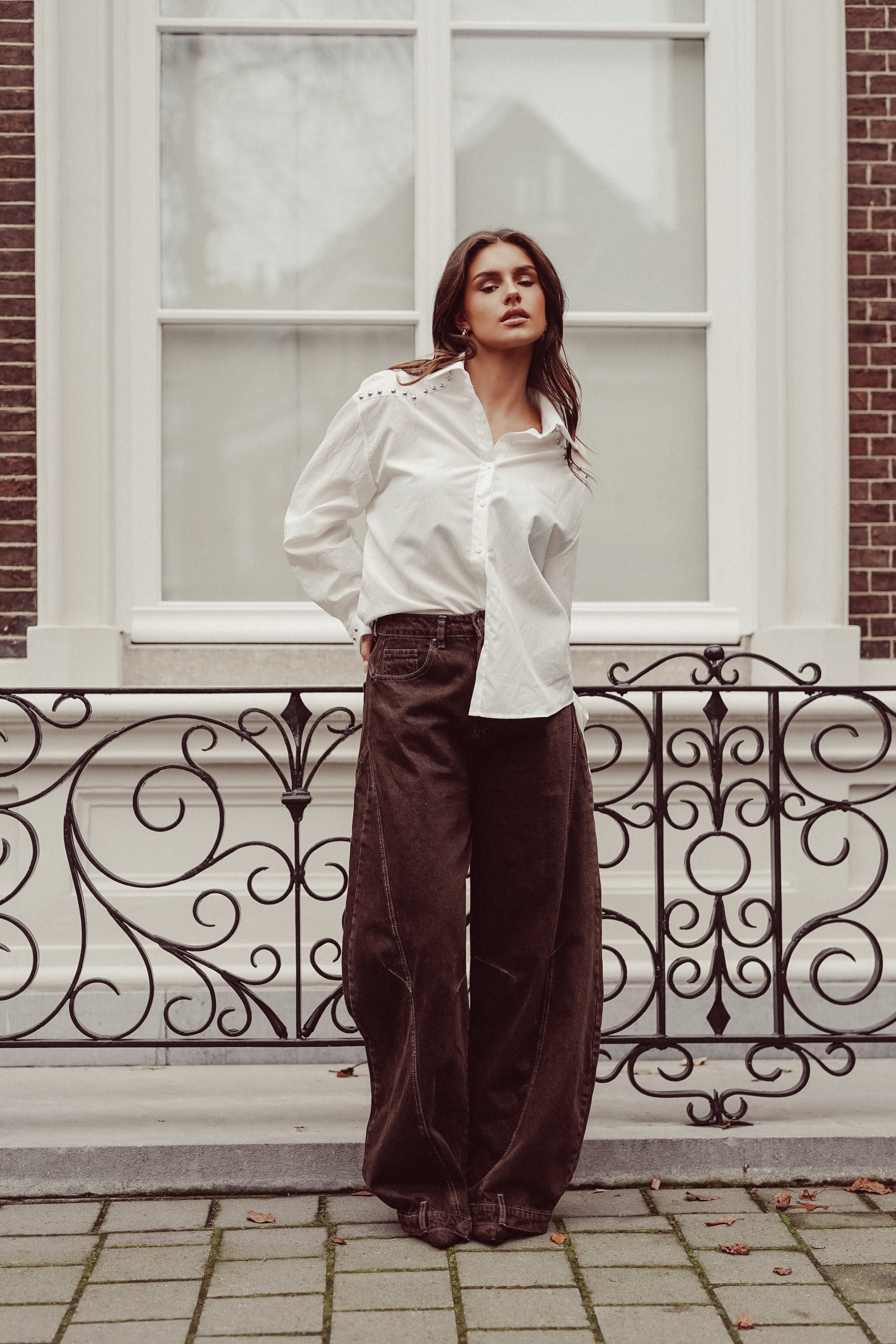 Maak je outfit compleet met deze trendy Zia balloon fit jeans, de must have voor vrouwen die houden van een stijlvolle, comfortabele en denimlook. De ballonvormige pijpen creëren een speels en modieus silhouet en wordt afgewerkt met een detail band met lusjes. De jeans heeft een mid waist met een baggy model, wat super stoer is!