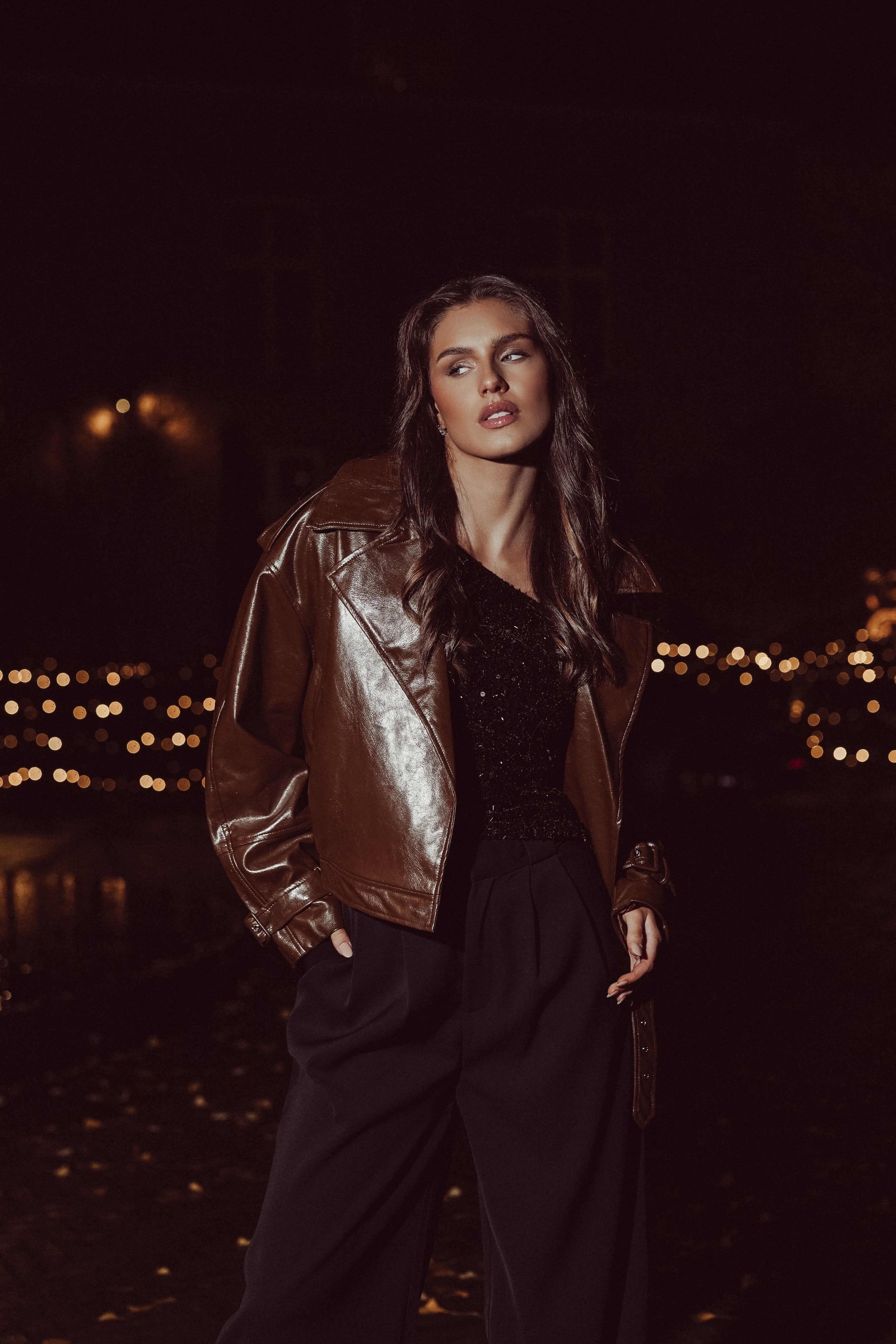 Bikerjacket oversized glimmend bruin - Laura