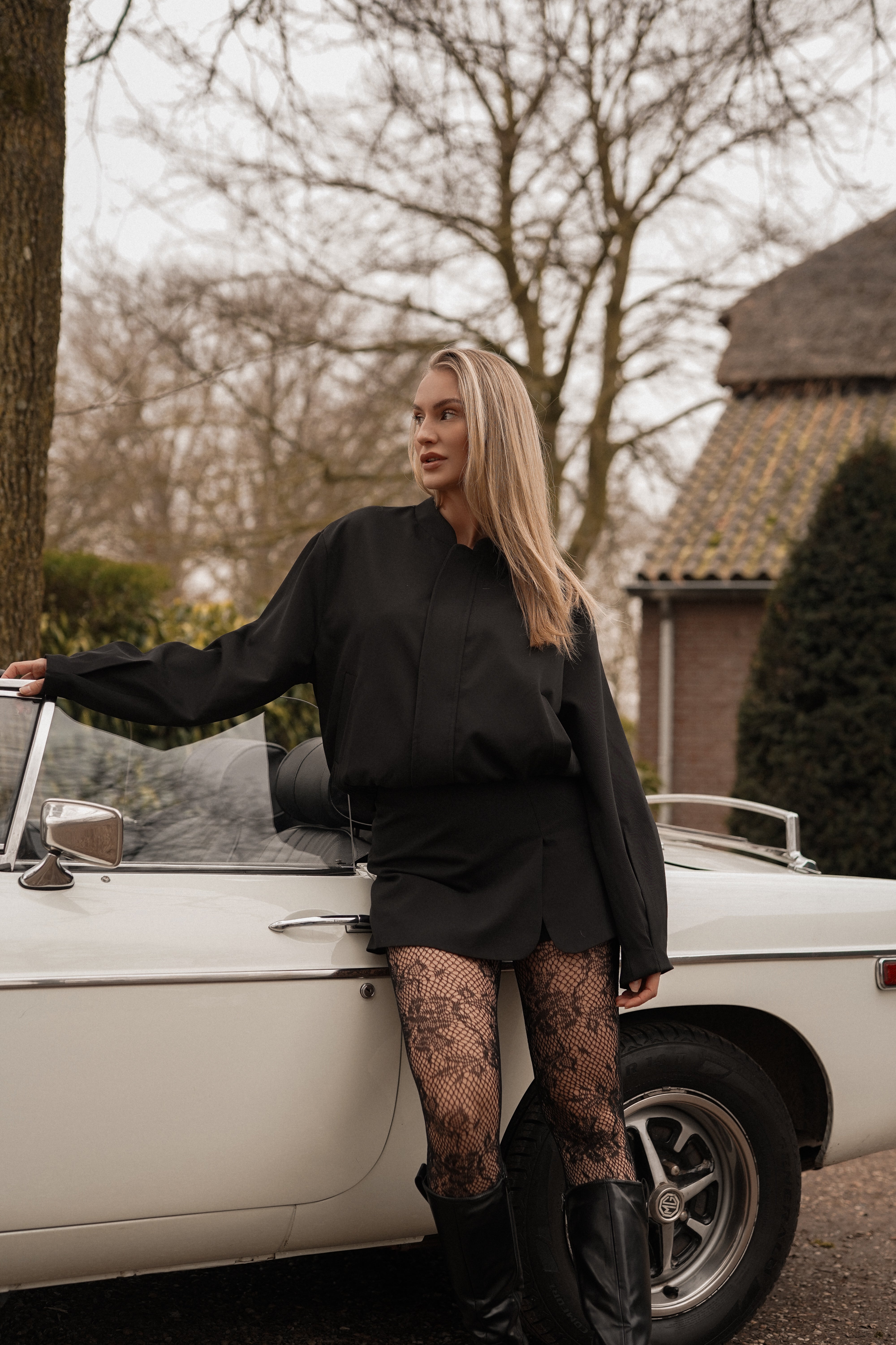Dit bomberjacket is een perfecte mix van comfort en stijl. Het jasje is gemaakt van een zachte stof die prettig aanvoelt en ideaal is voor dagelijks gebruik. De bomber heeft een ritssluiting aan de voorzijde en is voorzien van praktische steekzakken. Het jasje heeft een elastische band aan de onderzijde en is dubbel gevoerd. Combineer het jasje met de Lynn skort.