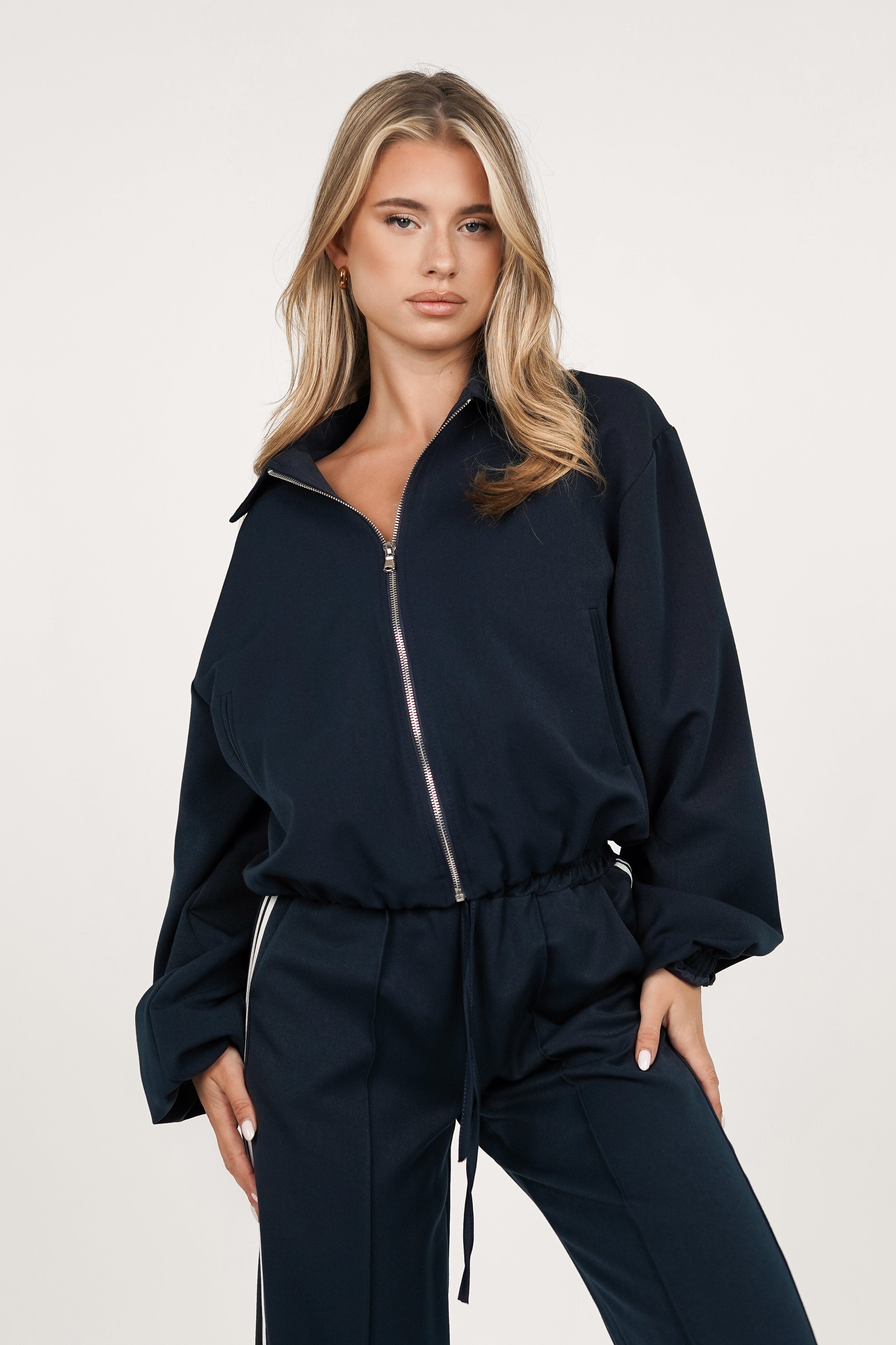 De Elenor bomberjas heeft een sportief wijd model met aan de onderzijde en de mouwen een stretchband voor een peplum effect. Je kunt het jasje sluiten doormiddel van de zilveren rits en bevat 2 sierzak details aan de voorzijde.