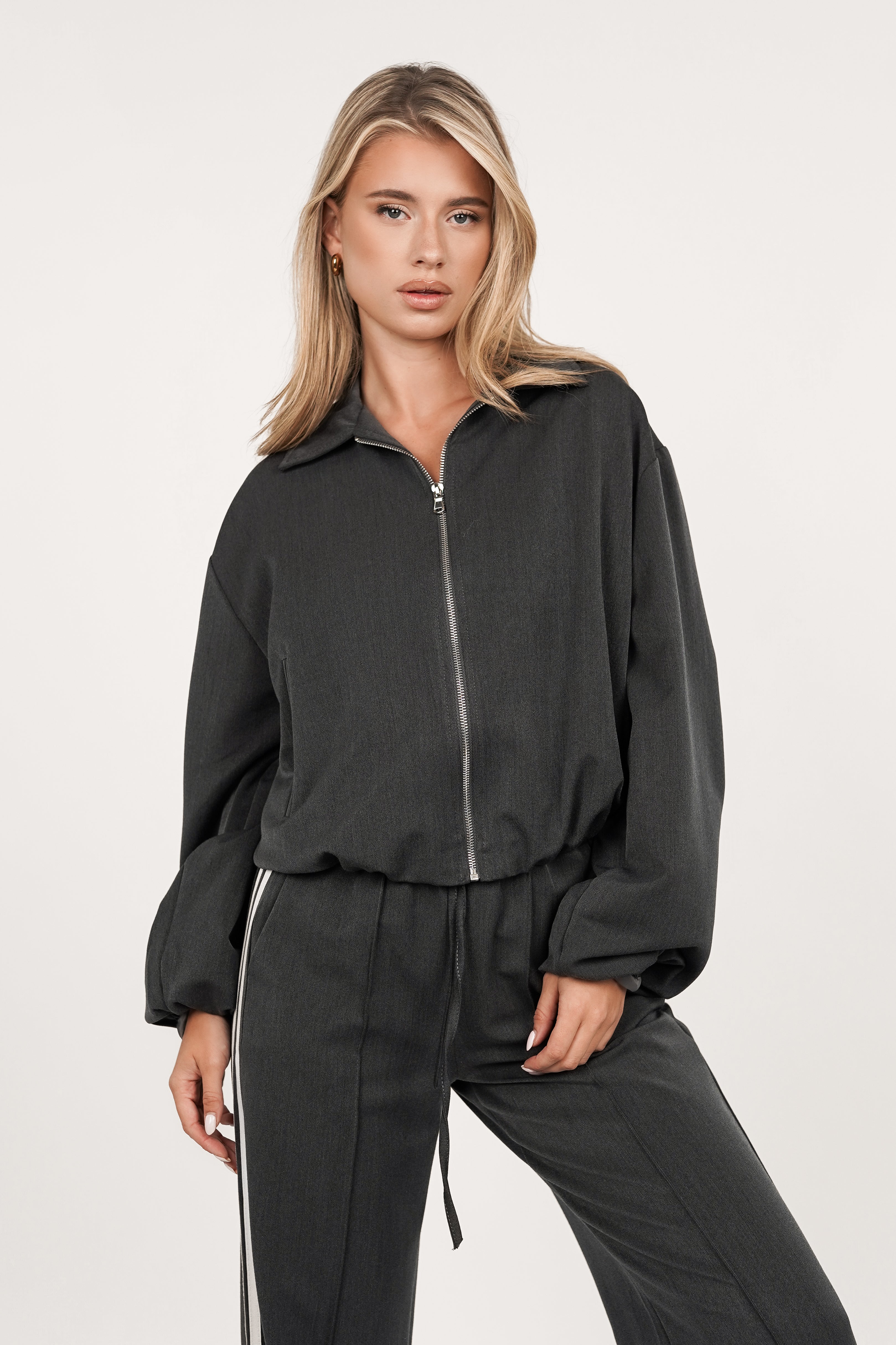Bomberjasje met rits grijs - Elenor
