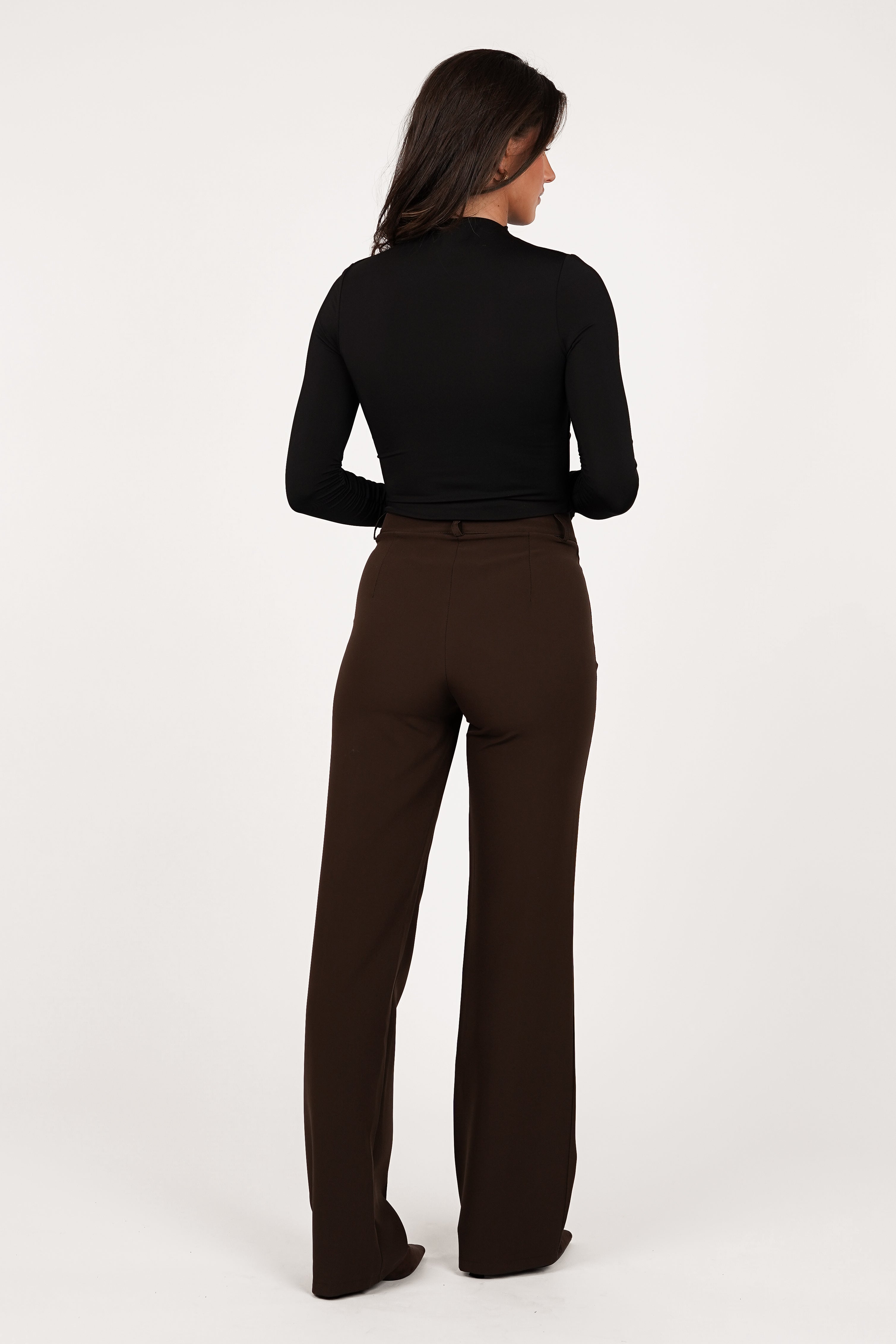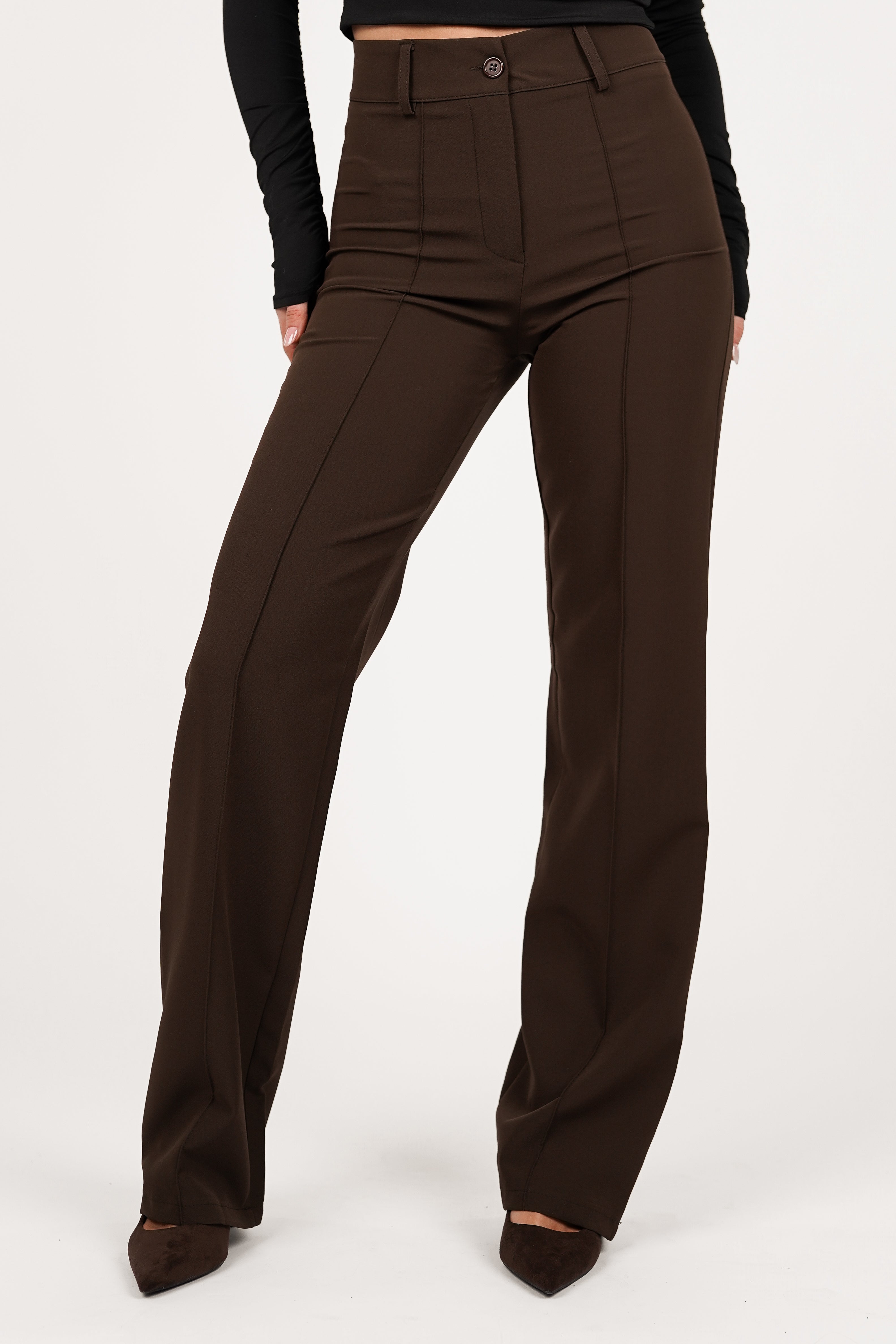 De Rachel pantalon heeft een wijd beenmodel met rechte pijpen. De pantalon wordt gesloten met een knoop in dezelfde kleur en bevat een gestikte naad op de voorkant. Match met onze bijpassende Moon blazer!