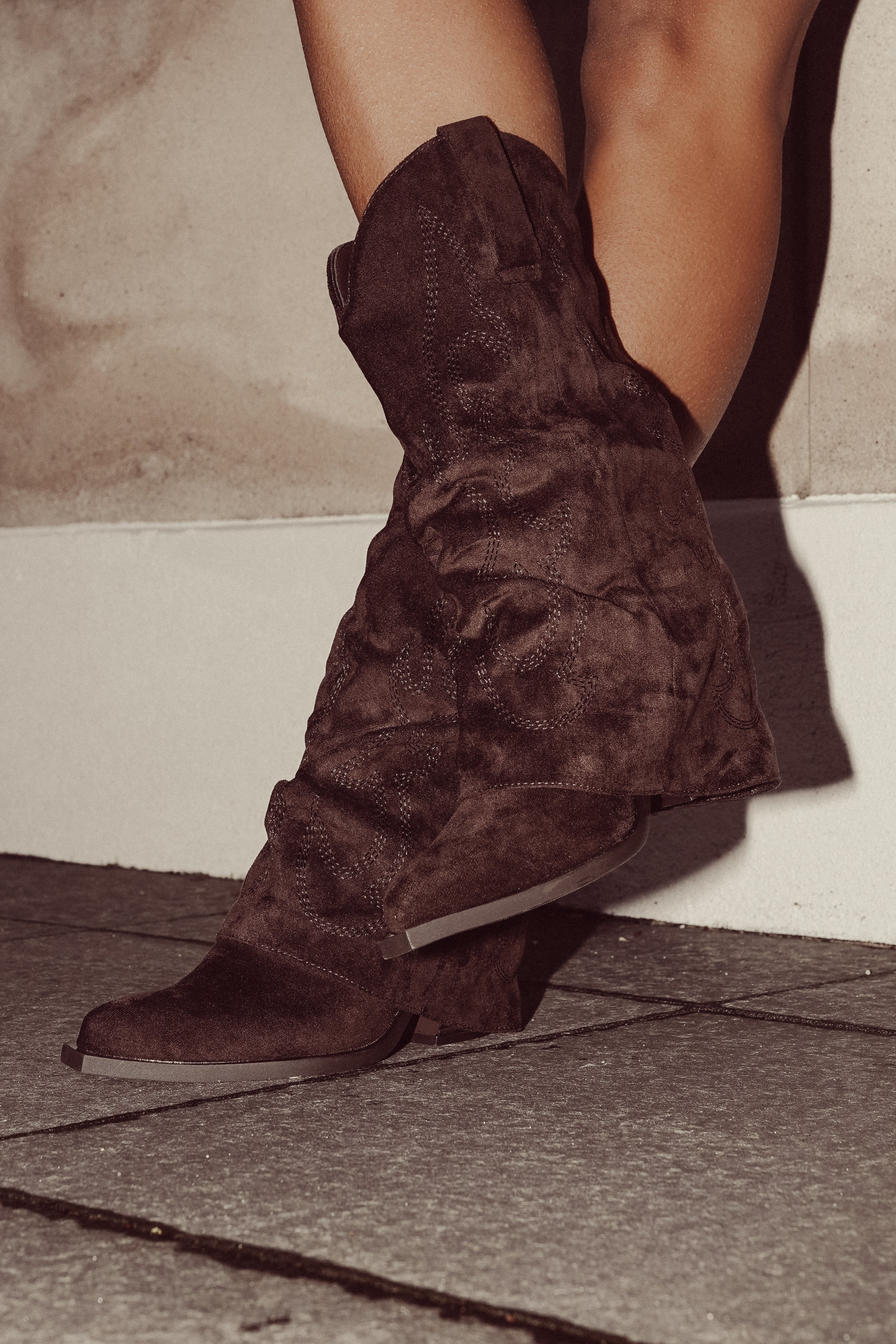 Deze suede cowboy laarzen met overslag zijn het perfecte statement voor vrouwen die houden van een mix van stoer, vrouwelijk en een tikje speels. De overslag van de boots geeft een speelse look en de suede stof zorgt juist voor luxe uitstraling. De boots zitten heerlijk en hebben aan de binnenzijde een onzichtbare rits.
