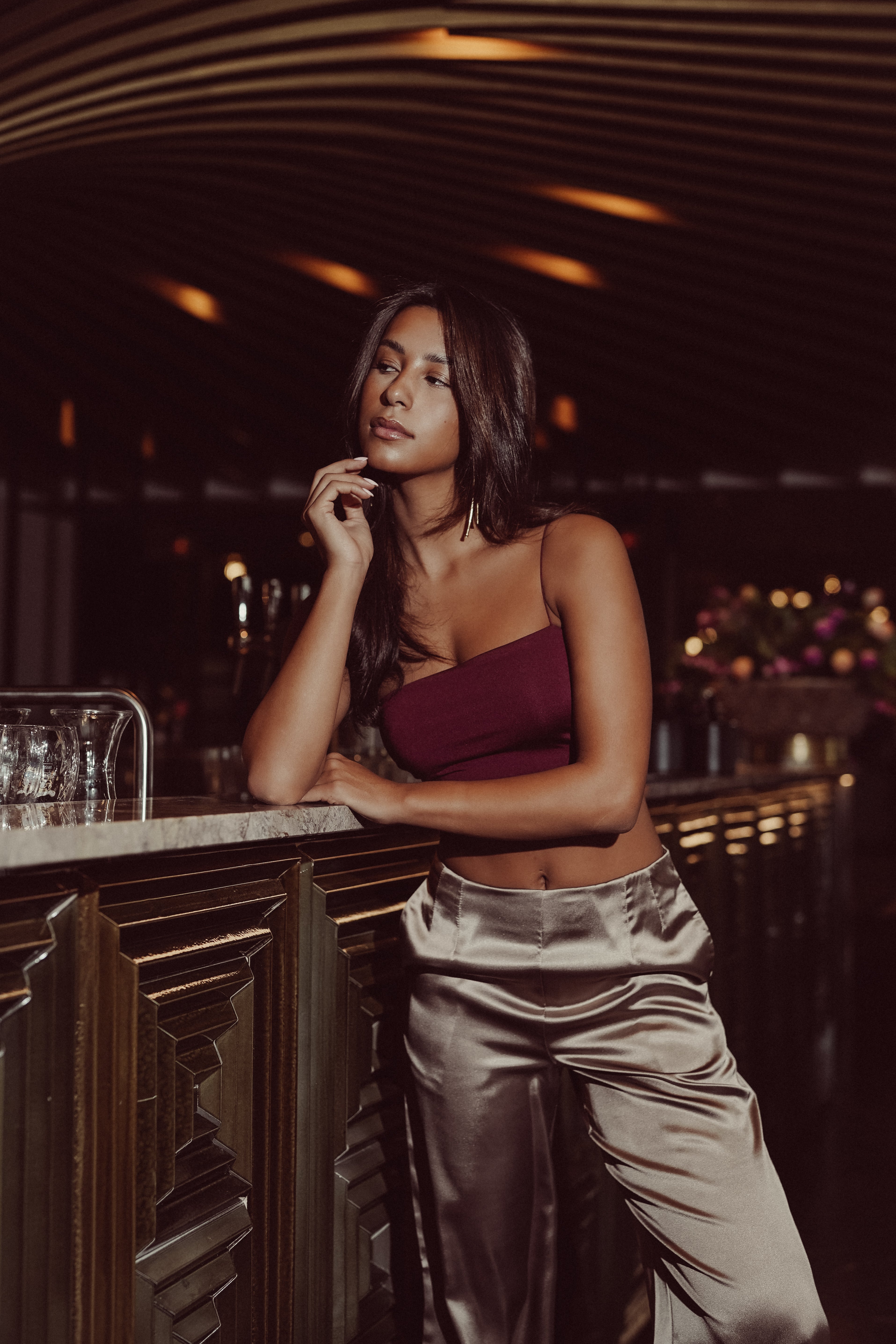 De Bless top heeft een cropped model en bevat spaghettibandjes. De top bevat stretch en heeft een voering.