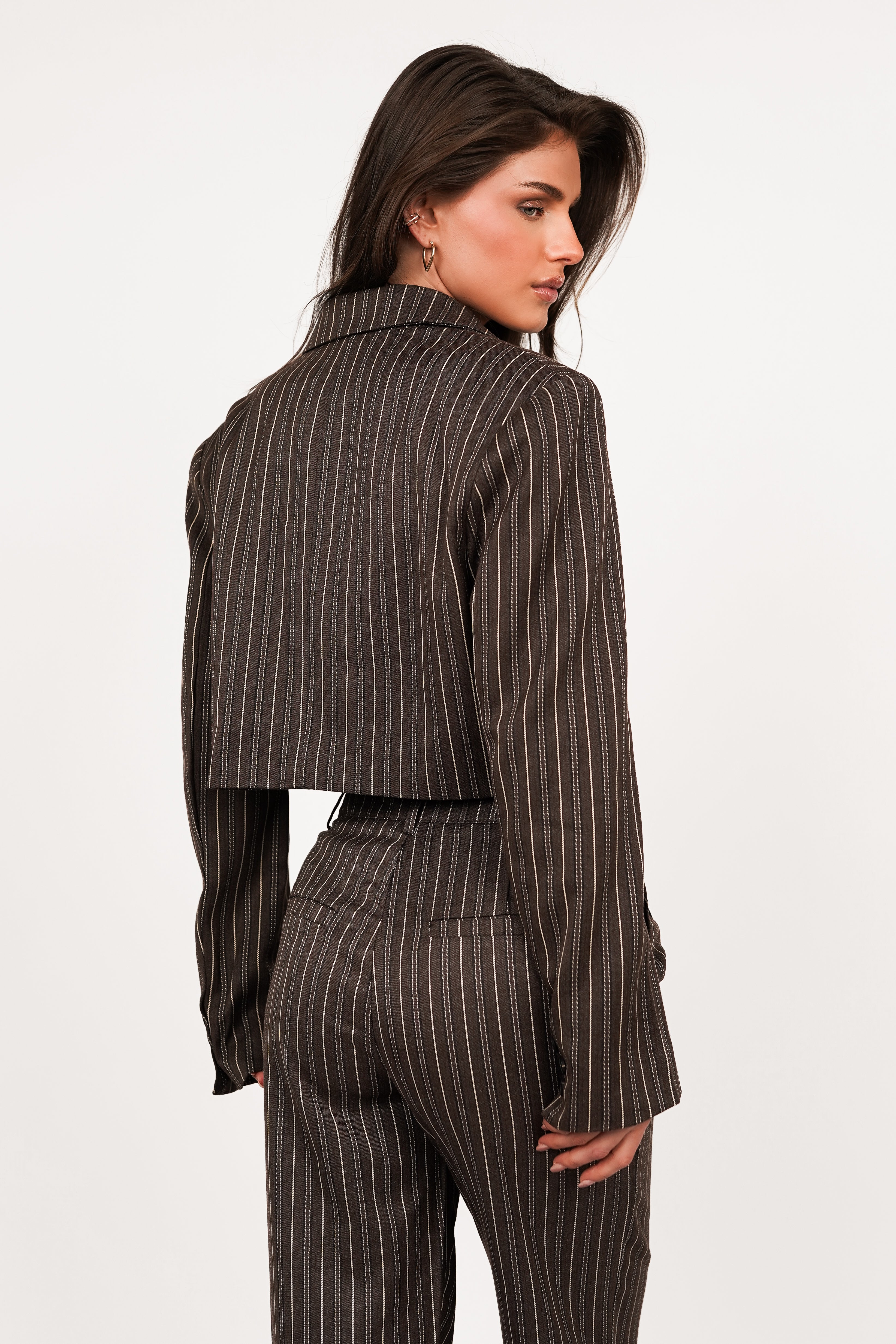 Cropped blazer met strepen bruin - Heidi