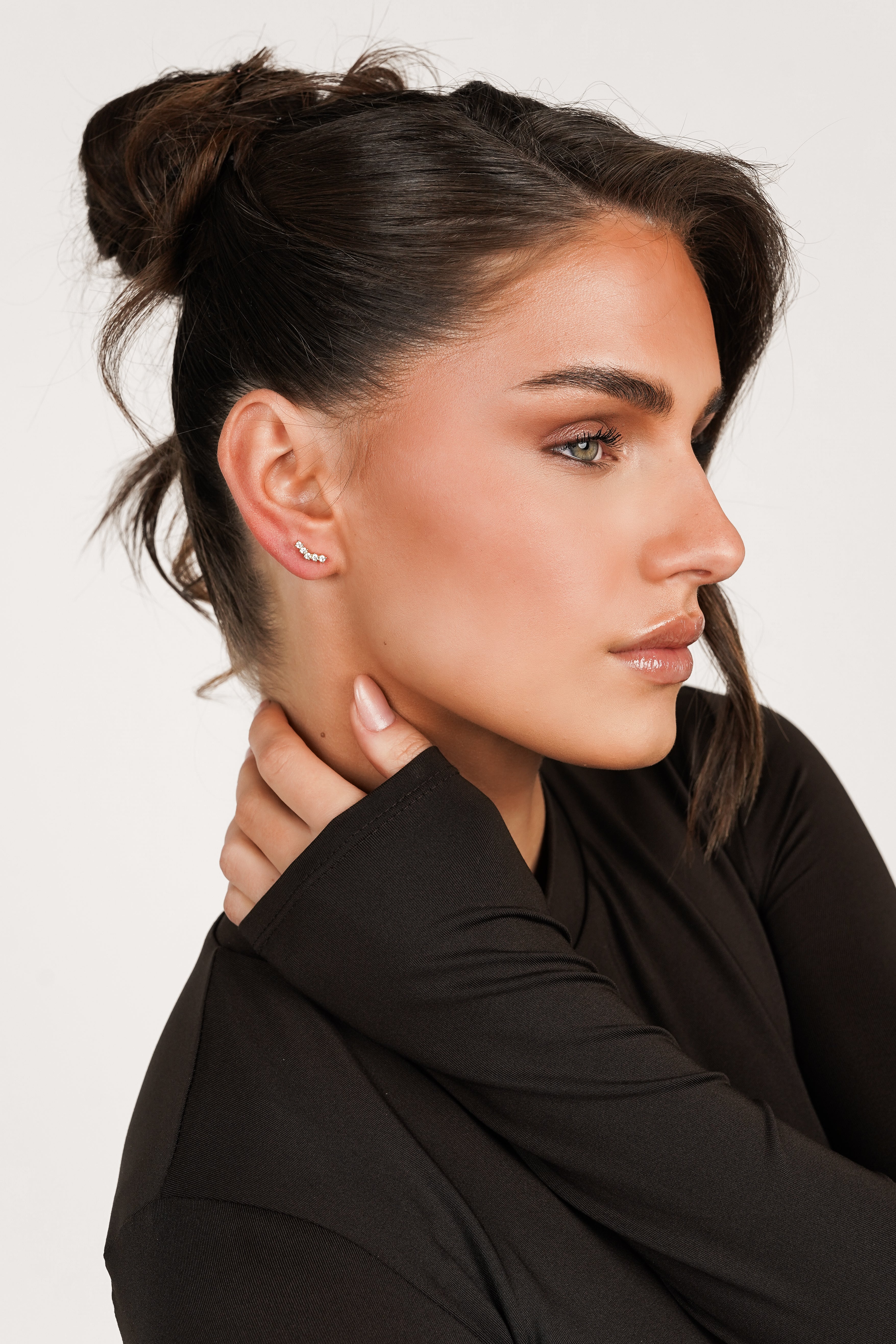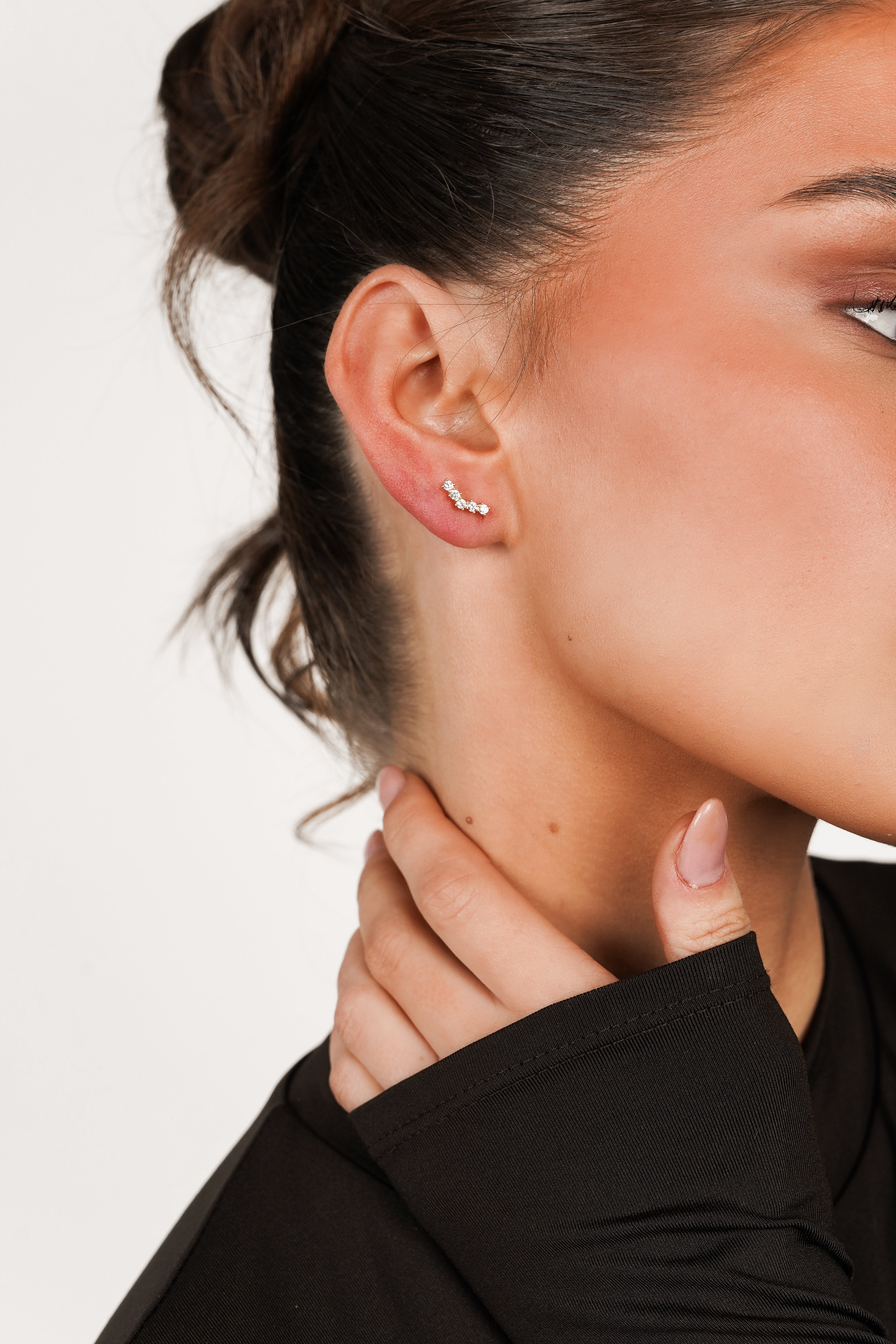 Deze langwerpige oorpiercing is een echte essential voor jouw ear party. De oorbel bevat verschillende diamantjes met studs voor een super chique effect! Combineer met onze andere sieraden voor de perfecte look.