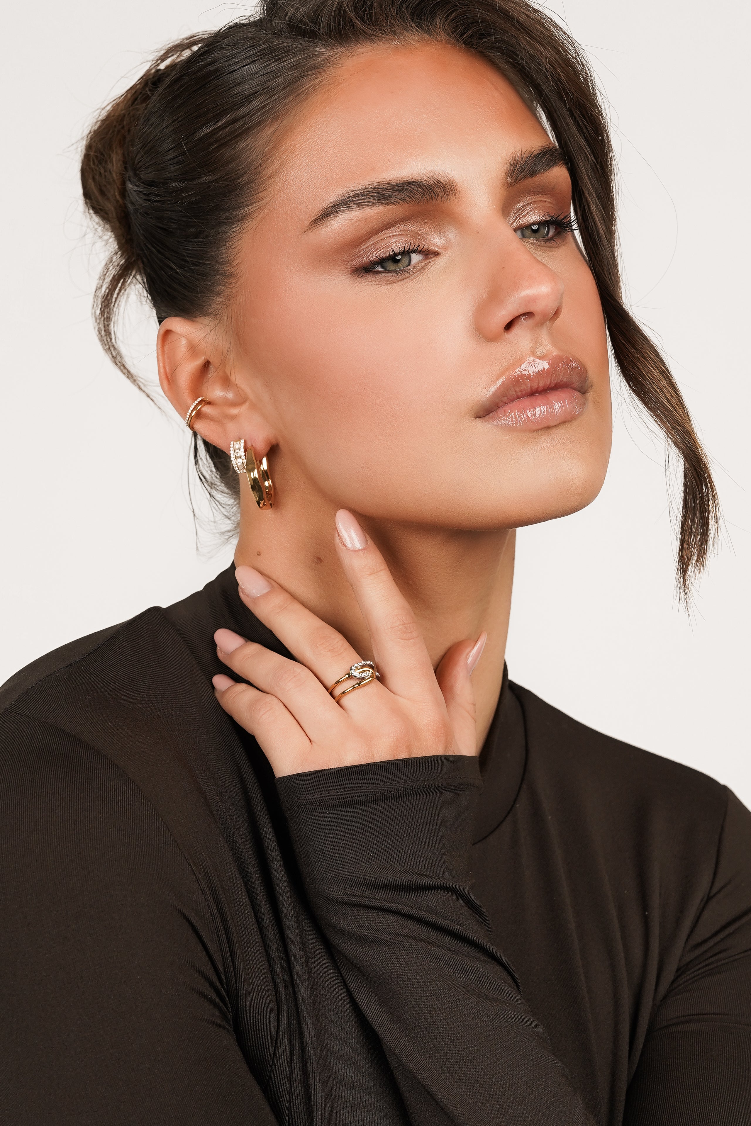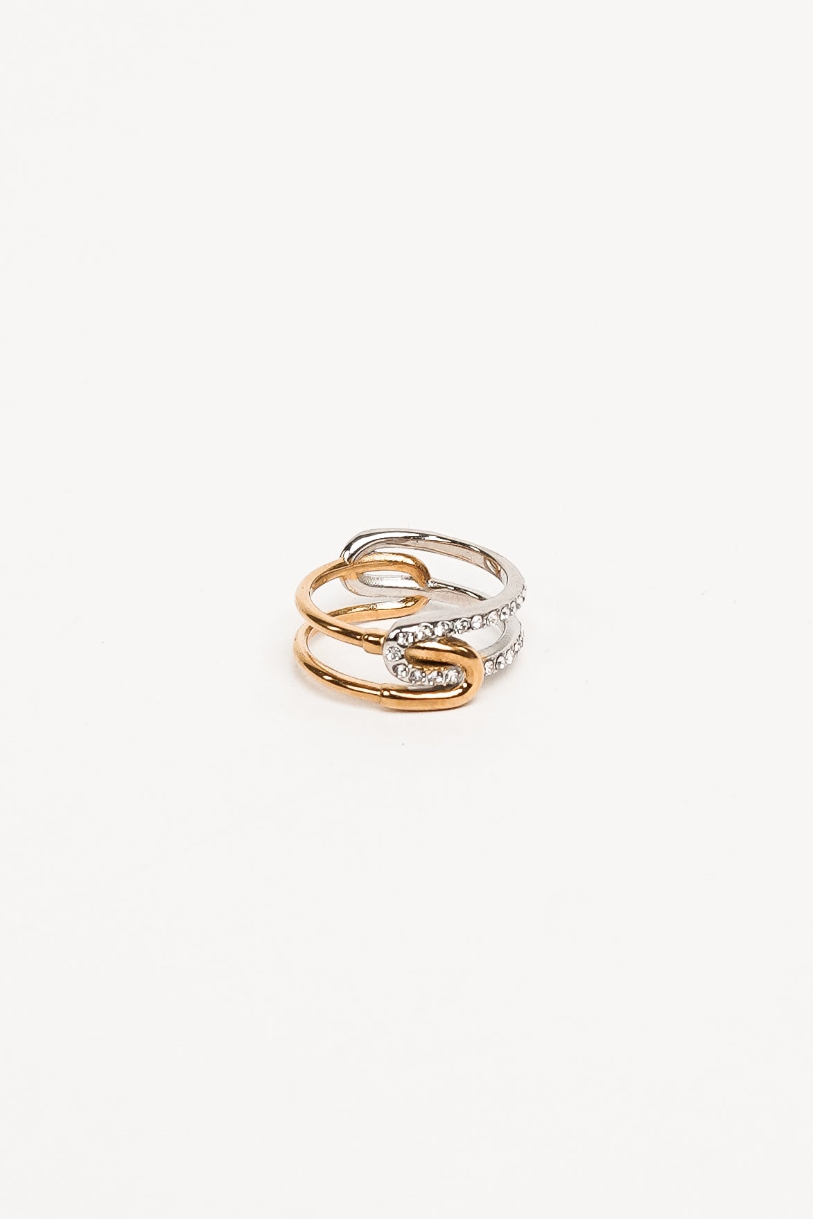 De Raya dubbele ring met strass in goud en zilver combineert elegantie met een moderne uitstraling. Het dubbele ontwerp zorgt voor een stijlvolle look en de strass steentjes voegen weer de luxe hieraan toe. De combinatie goud- en zilverkleur zorgt ervoor dat de ring matcht met verschillende sieraden en outfits.