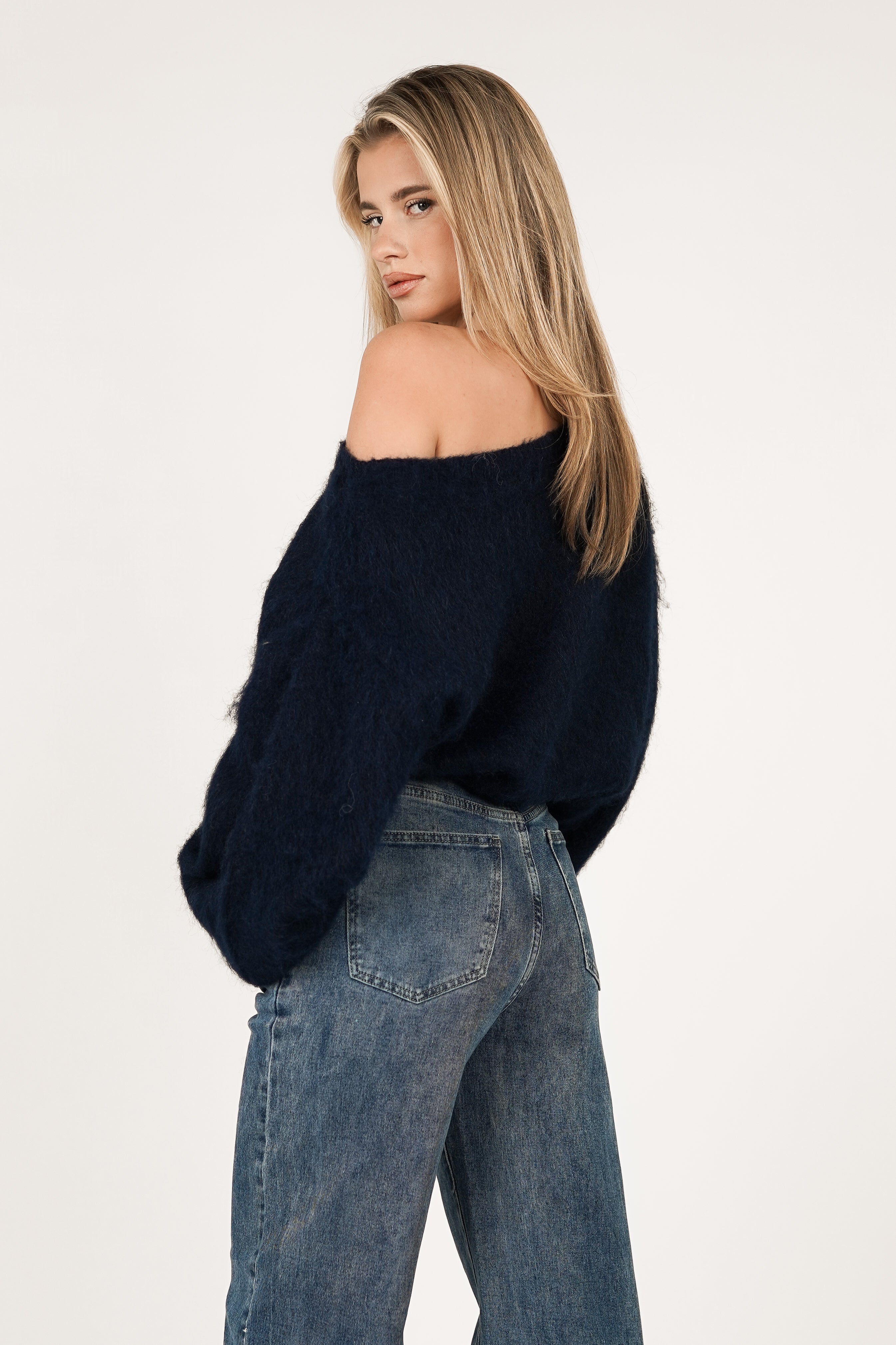 De Bowie fluffy trui is een absolute must have voor cozy looks. Het zachte materiaal zorgt ervoor dat deze trui super comfortabel te dragen is. De ballonmouwen creëren een andere look dan een normale trui. Stijl de trui op een jeans met een sneaker of maak de look compleet met een skort en heels.