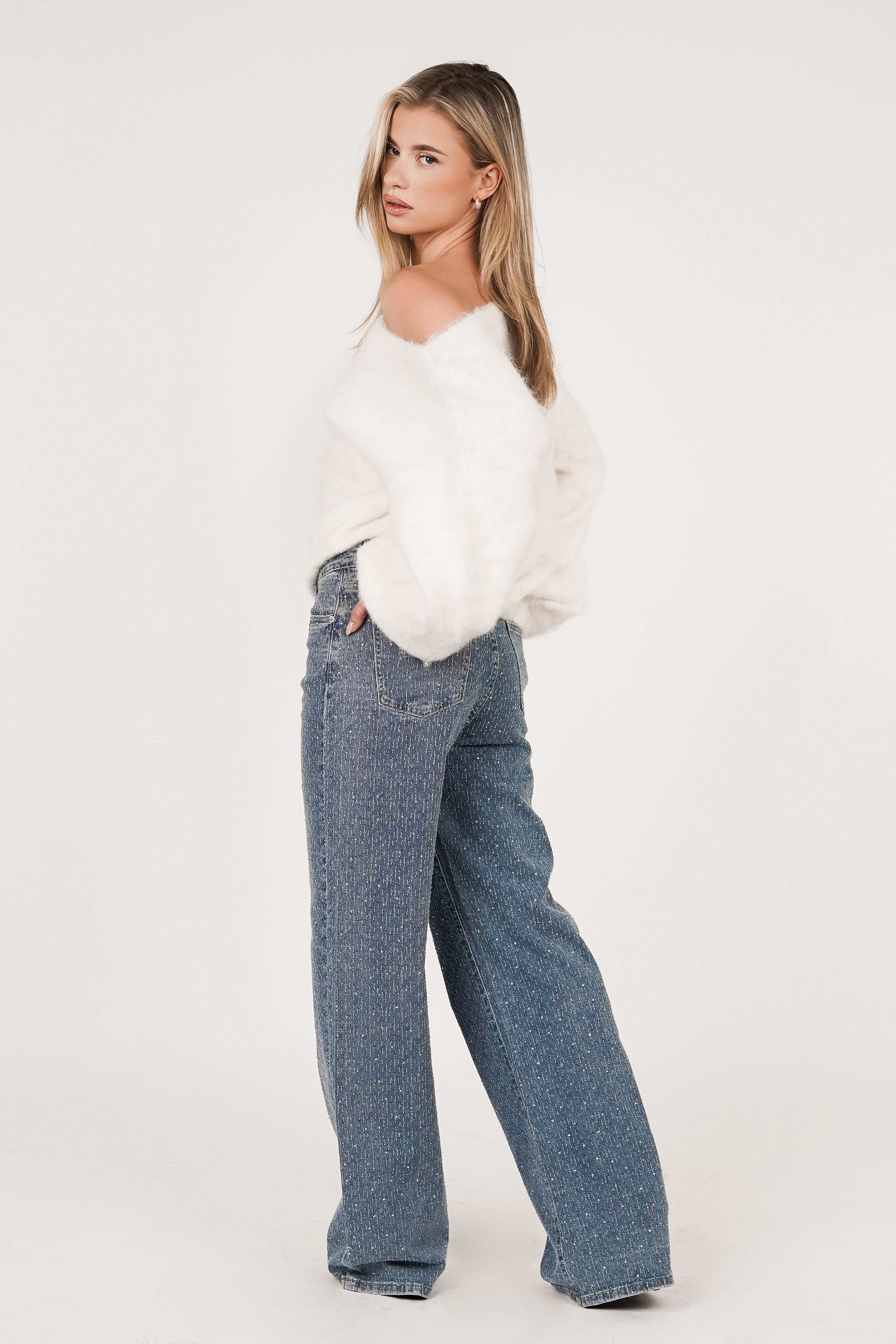 De Bowie fluffy trui is een absolute must have voor cozy looks. Het zachte materiaal zorgt ervoor dat deze trui super comfortabel te dragen is. De ballonmouwen creëren een andere look dan een normale trui. Stijl de trui op een jeans met een sneaker of maak de look compleet met een skort en heels.