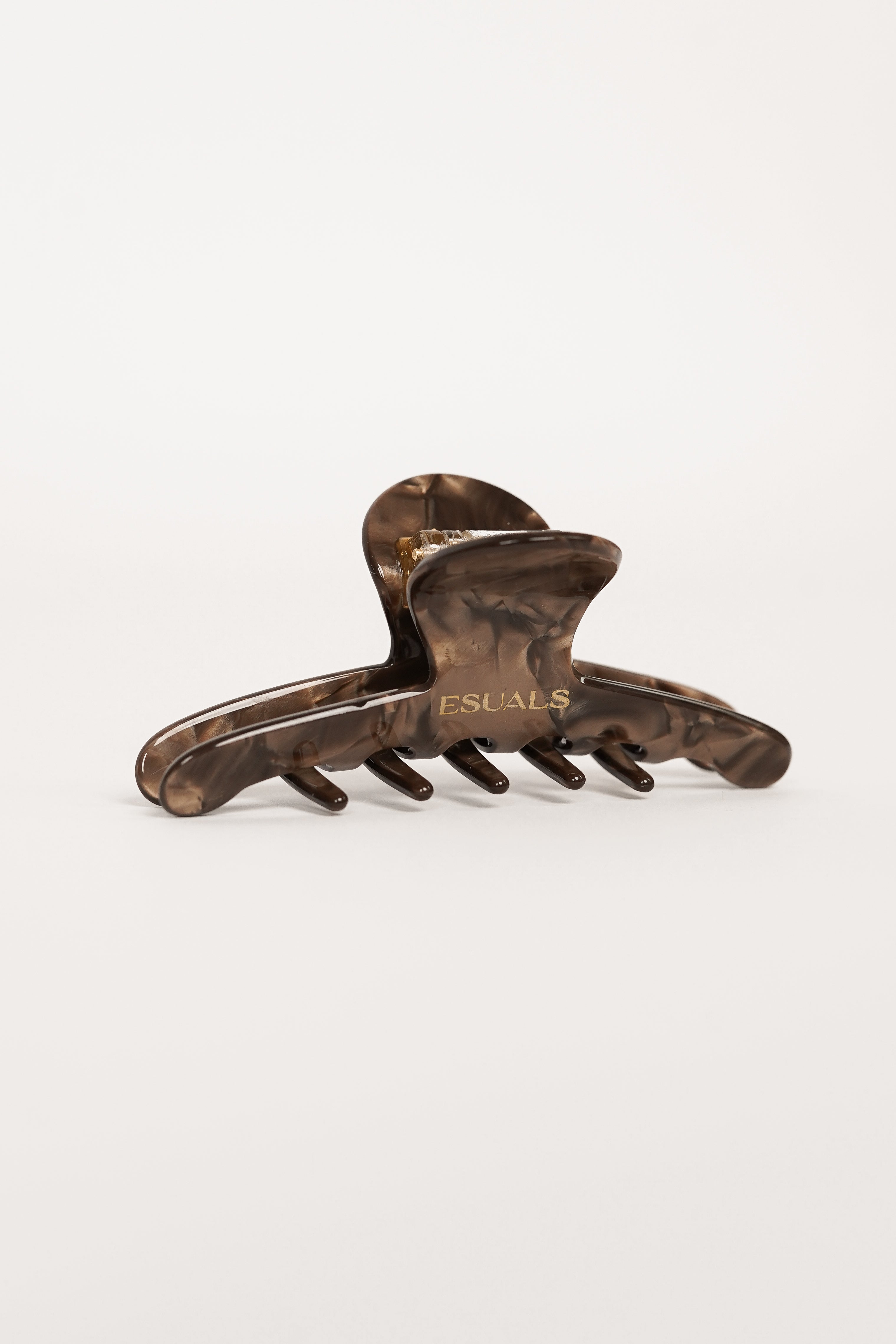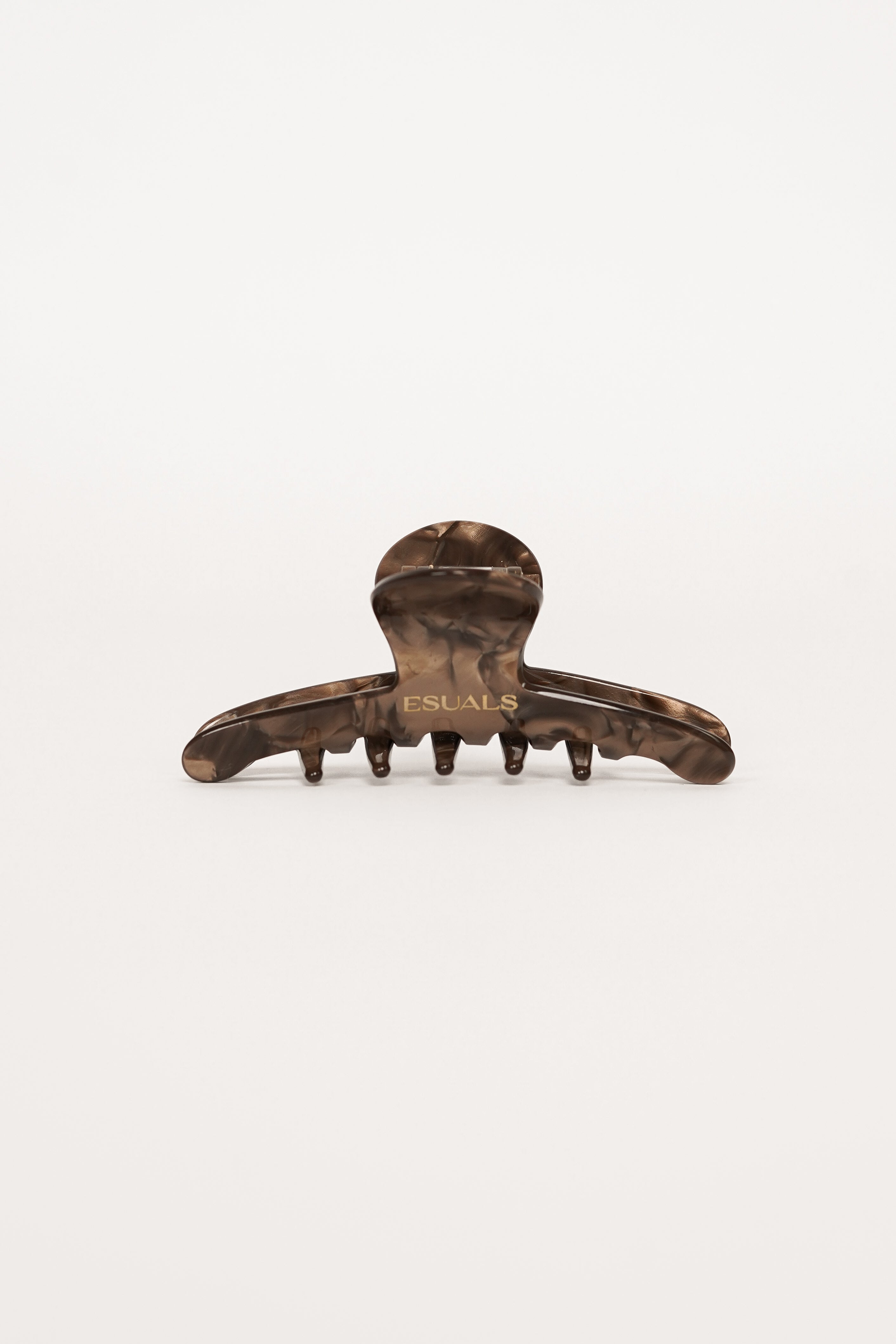Esuals the label! De Bodie klem heeft een smalle en kleine vorm met een marmer look in een bruine tint. De kleur past bij elk haar type en outfit. In het midden van de klem staat ons eigen logo 'Esuals' in een gouden tint.