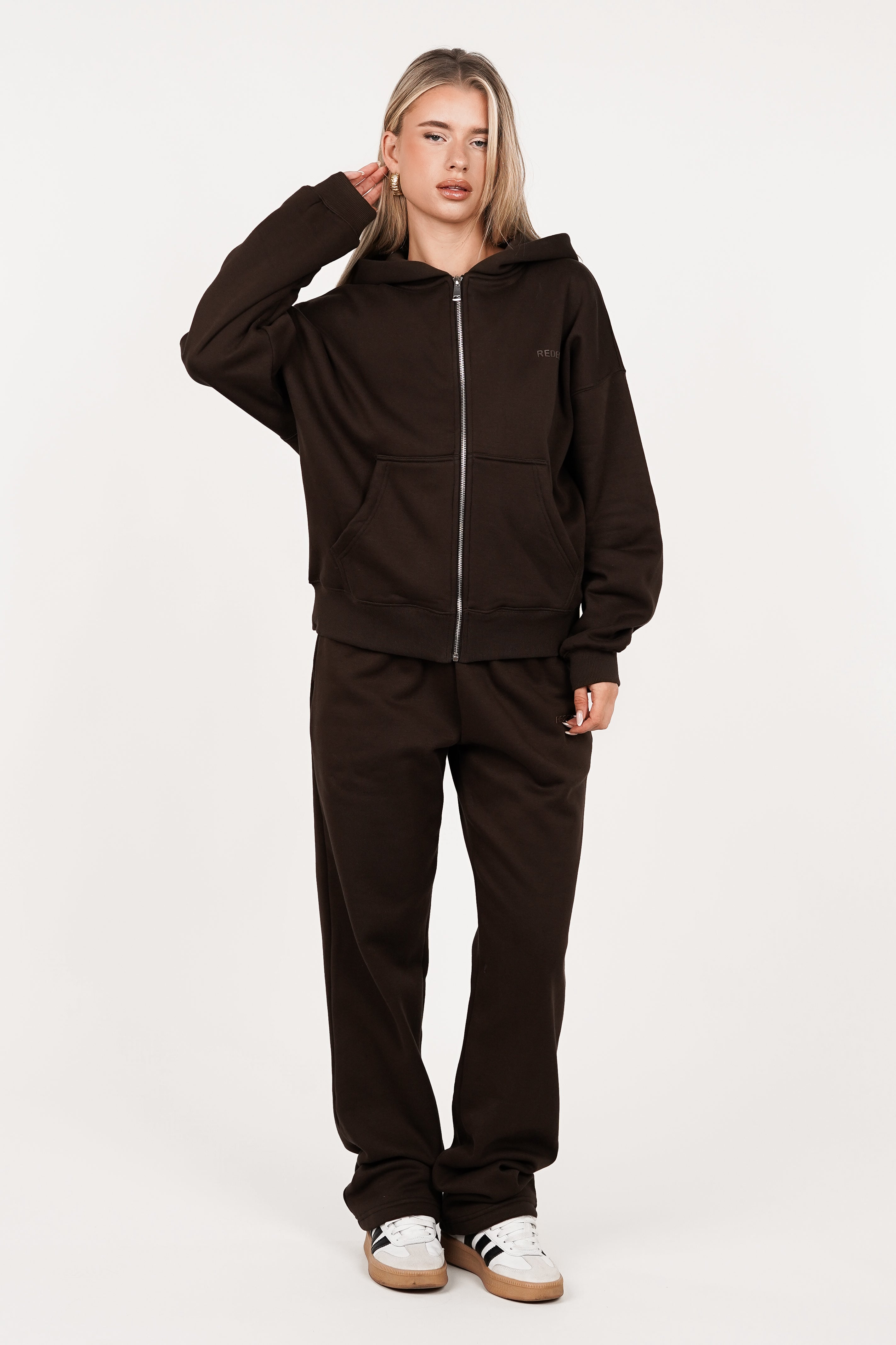 Deze joggingbroek tall voor dames is speciaal voor langere vrouwen die op zoek zijn naar comfort en een perfecte pasvorm. Dankzij de extra lengte sluit deze lange joggingbroek voor dames mooi aan. De dames joggingbroek is gemaakt van een zachte en comfortabele stof die prettig aanvoelt. De elastische tailleband zorgt voor een fijne fit en is aan de binnenzijde te strikken. De broek bevat steekzakken en heeft een opdruk van 'redefined'. Perfect te stylen met de bijpassende hoodie.