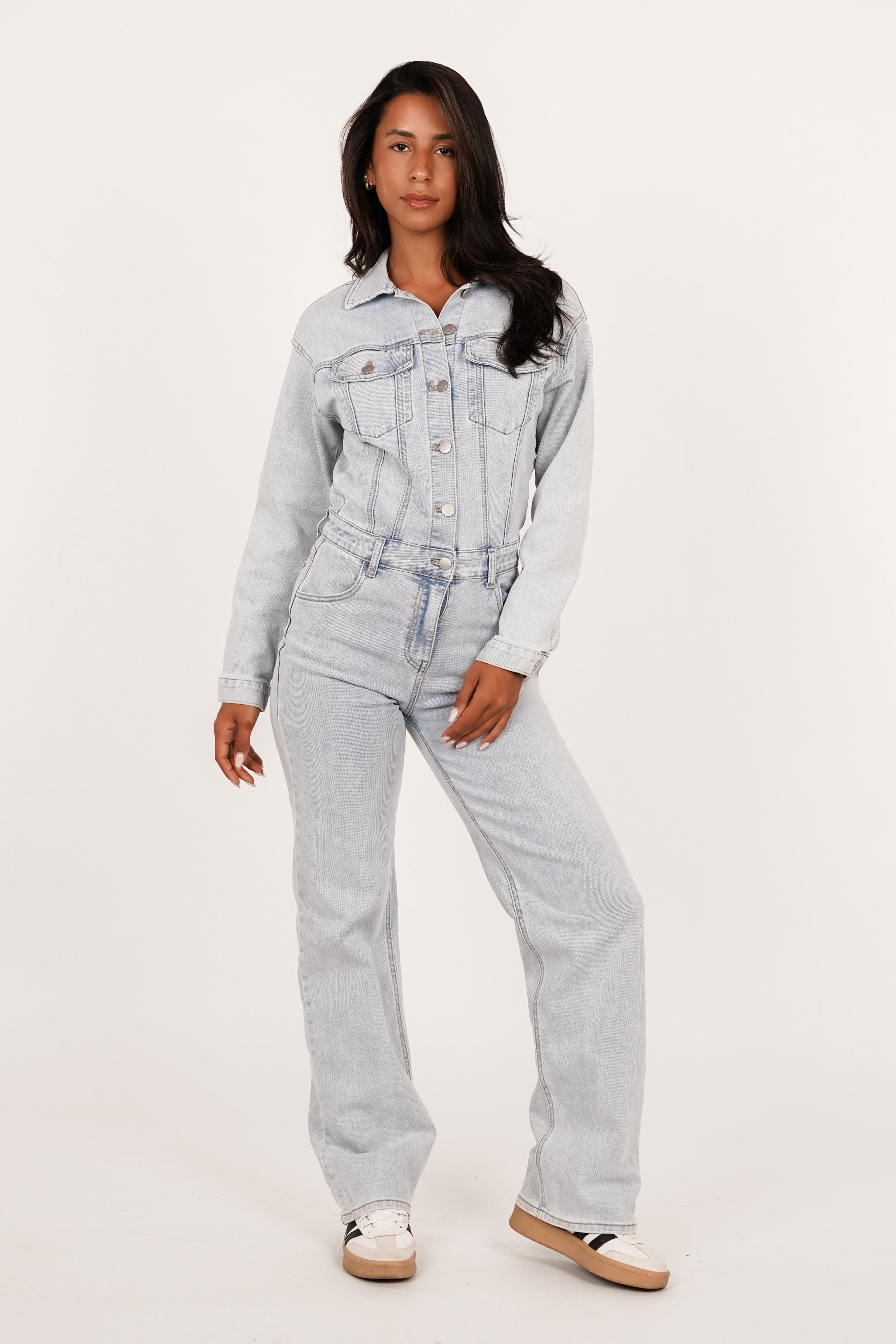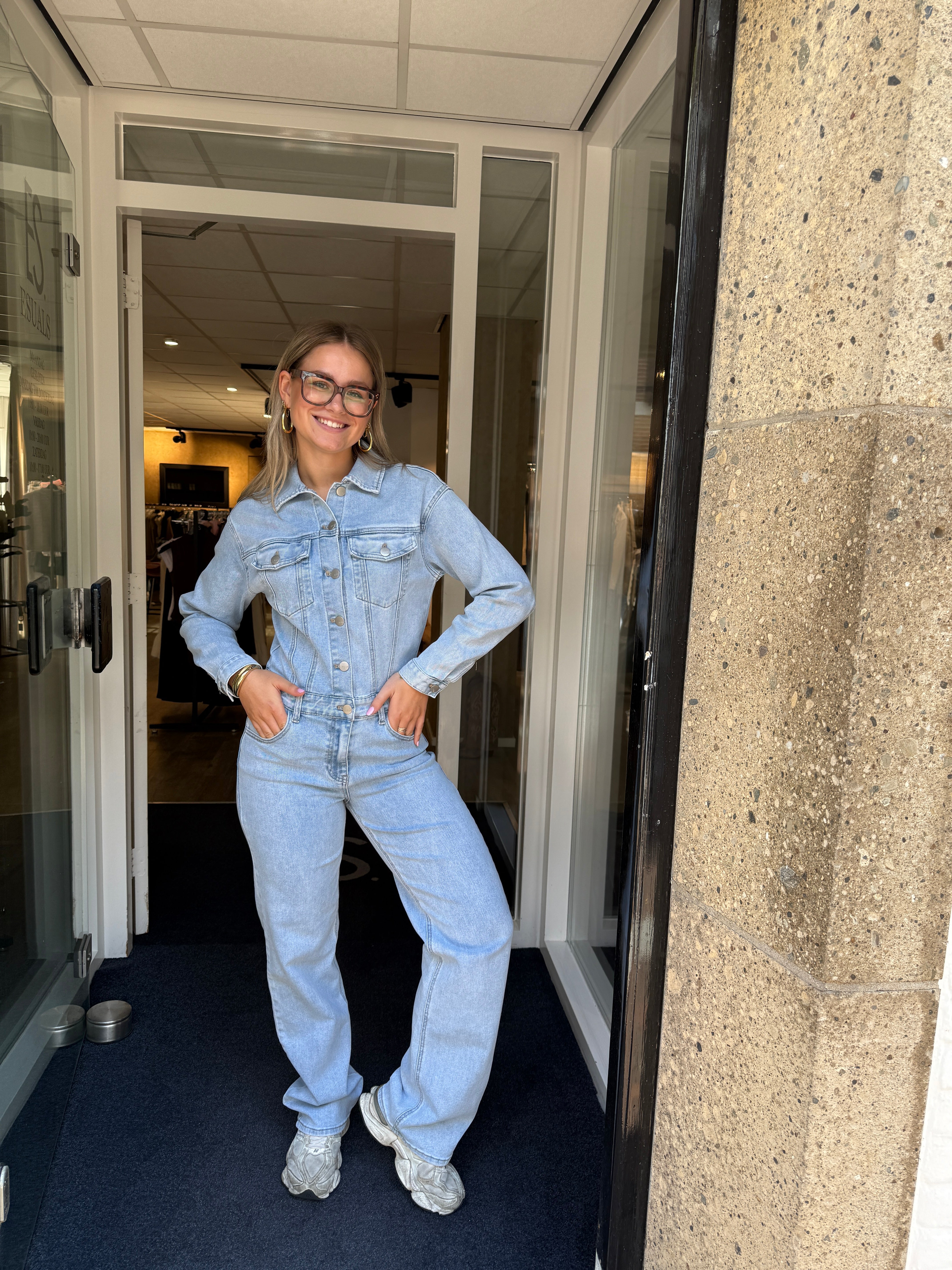 De Jenna jumpsuit bevat lange mouwen met zilveren knoopjes aan de voorzijde. De jumpsuit heeft een boord in de hals en een straight leg model aan de onderzijde. De jumpsuit bevat stretch!