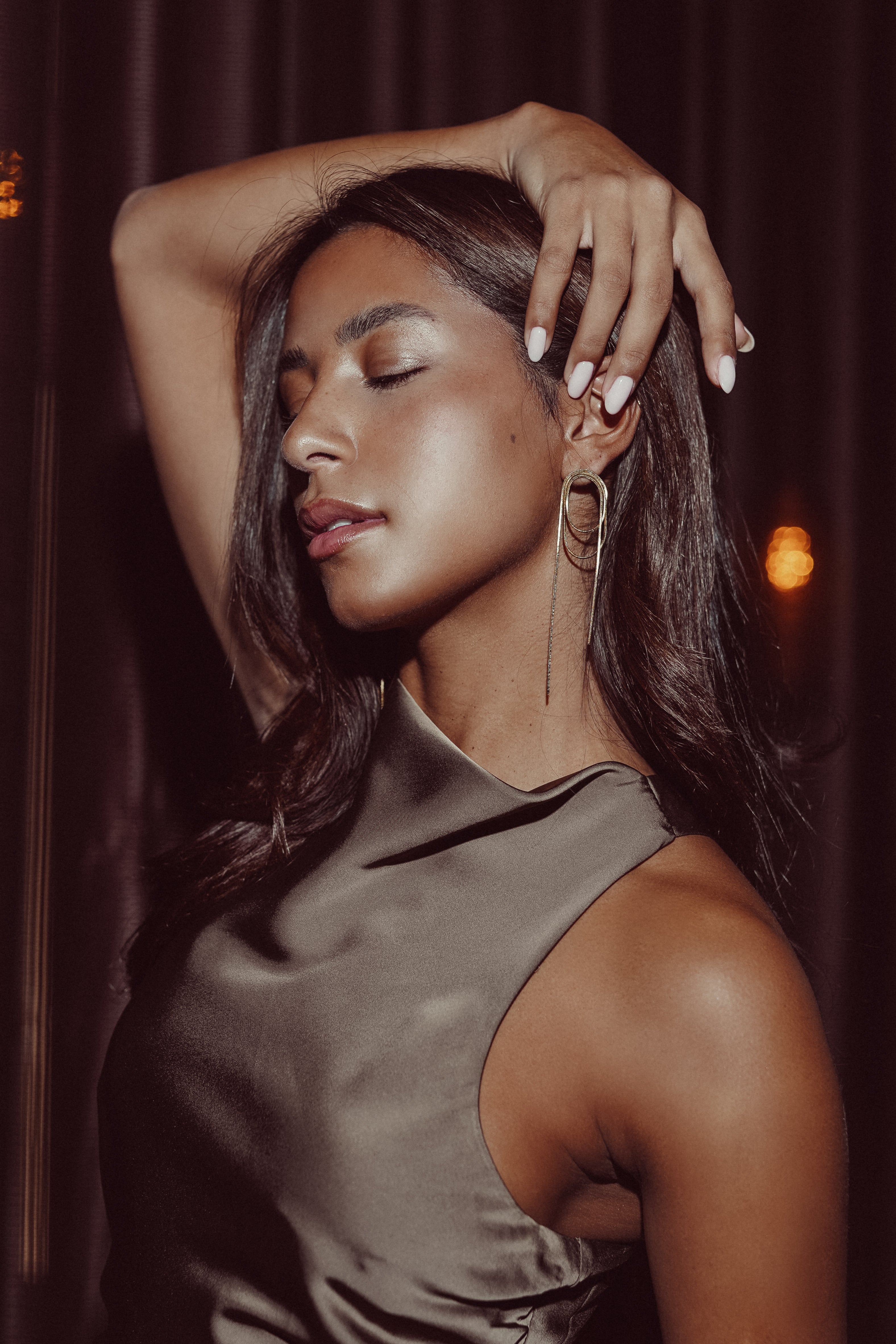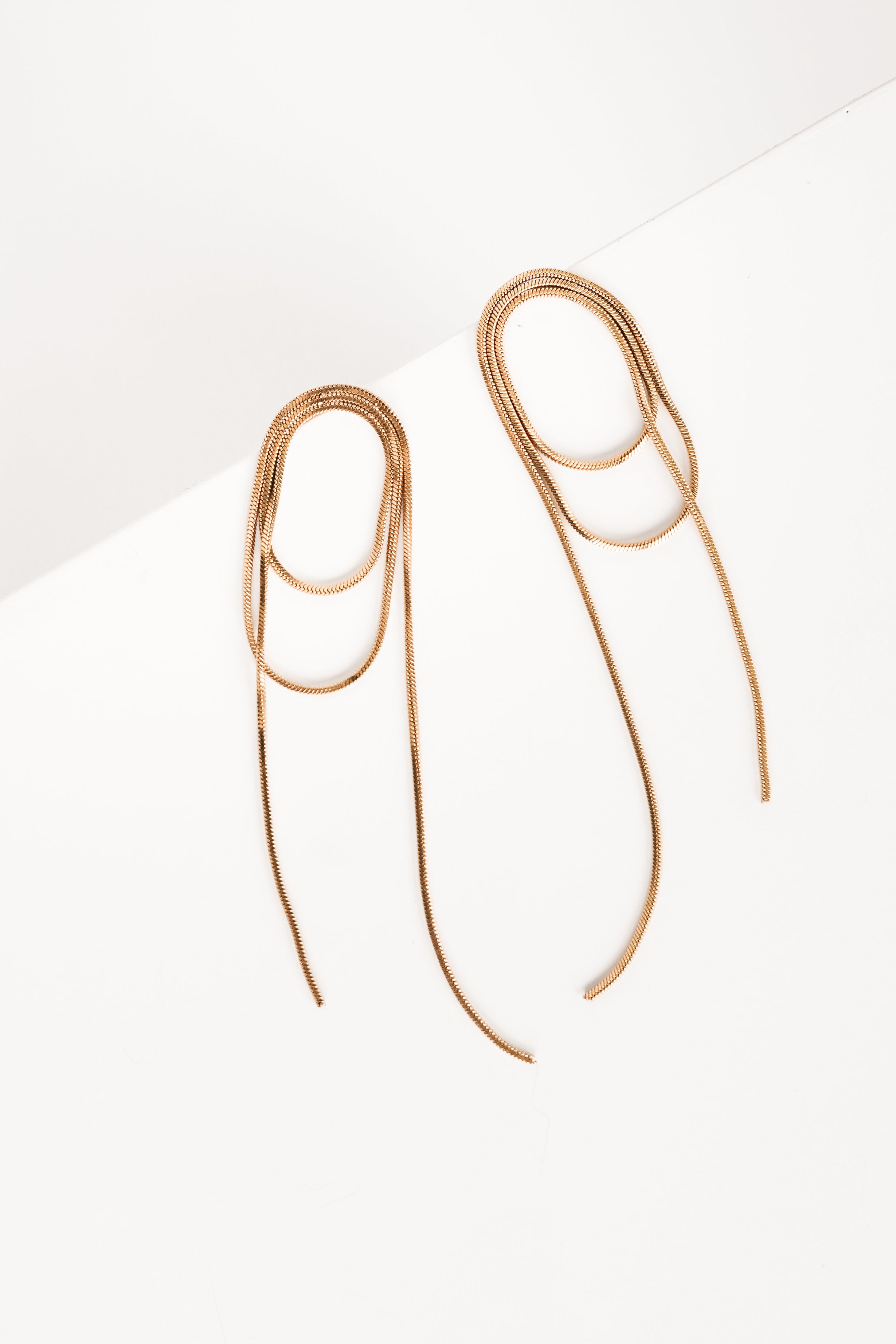De Bella oorbellen hebben een rond lopend dun model met hangende uiteindes.
