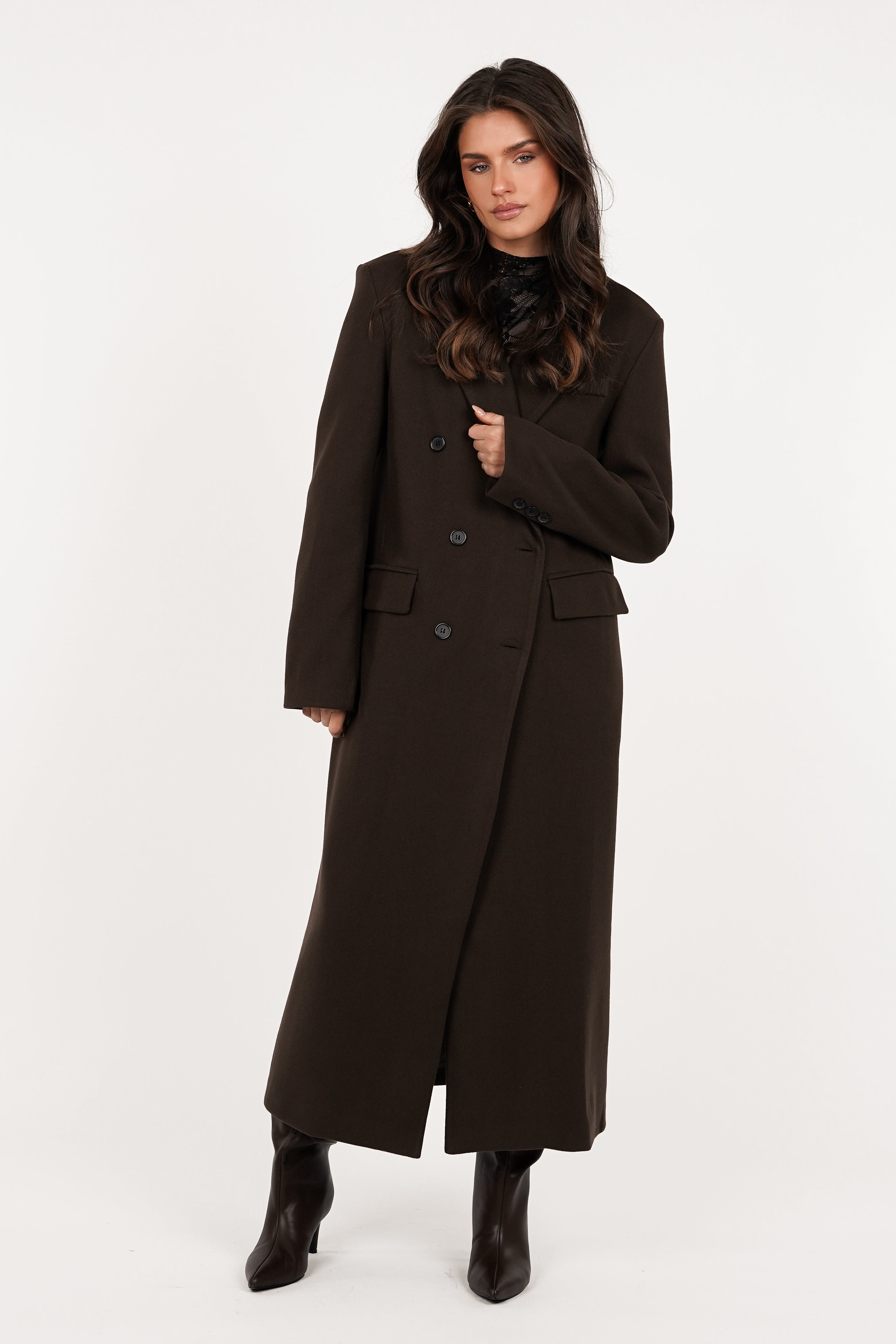 Onze nieuwe Aileen bruine lange trenchcoat is gemaakt voor dagen waarop je zonder moeite stijlvol voor de dag wilt komen. De coat heeft een relaxed, iets oversized fit die moeiteloos over elke outfit valt! Van een chunky knit tot een basic tee. Het diepe bruine kleurpalet met zwarte knopen geeft warmte en karakter, terwijl de strakke belijning zorgt voor een moderne, minimalistische look.