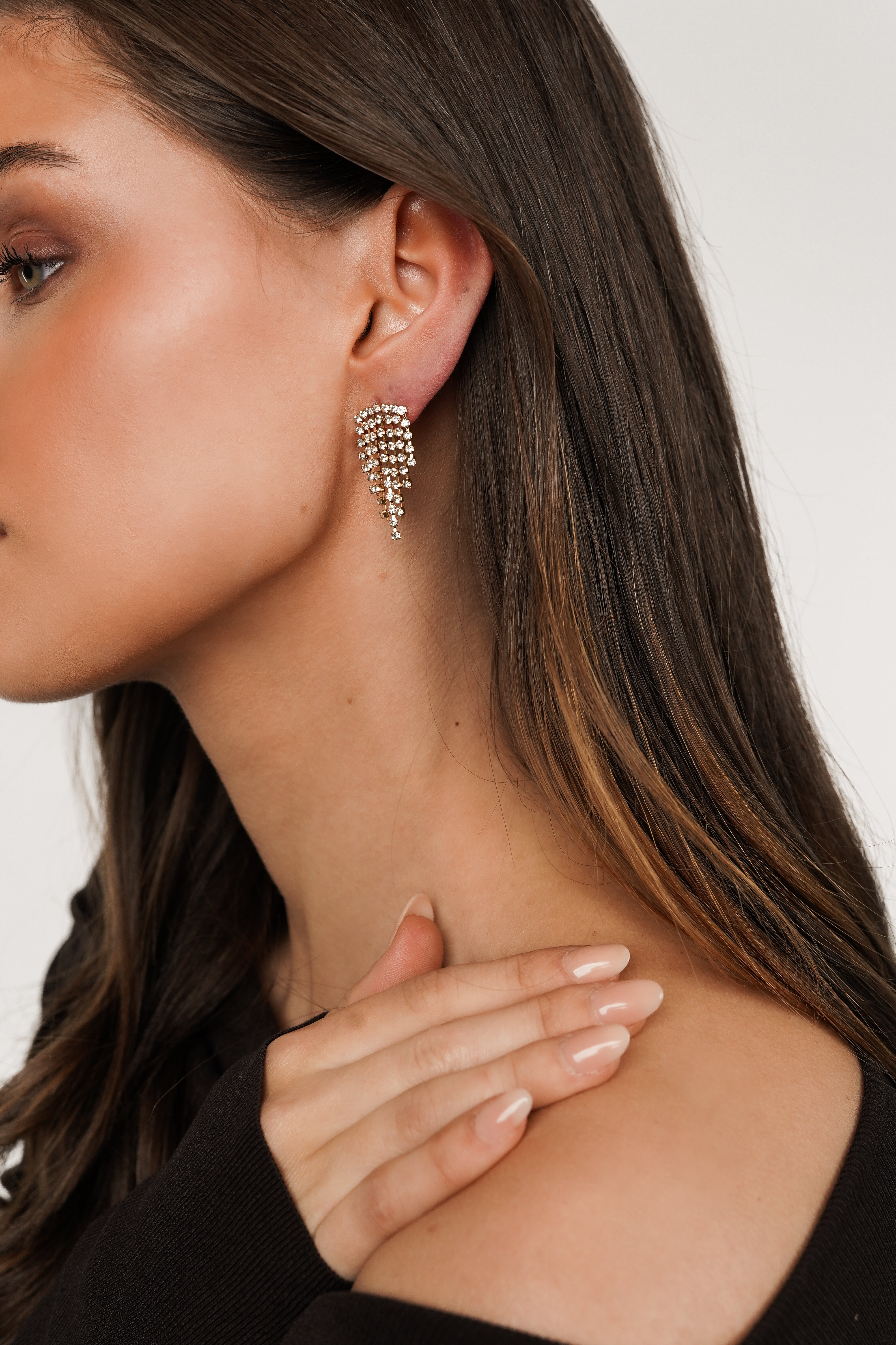 De gouden afwerking in combinatie met de glinsterende strass steentjes zorgt voor een classy, feminine vibe. Ze zijn lichtgewicht (dus geen zere oren, yes please!) en passen bij basically alles, van je favoriete hoodie tot een chic jurkje. Perfect voor meiden die houden van minimalistisch met een vleugje glamour.