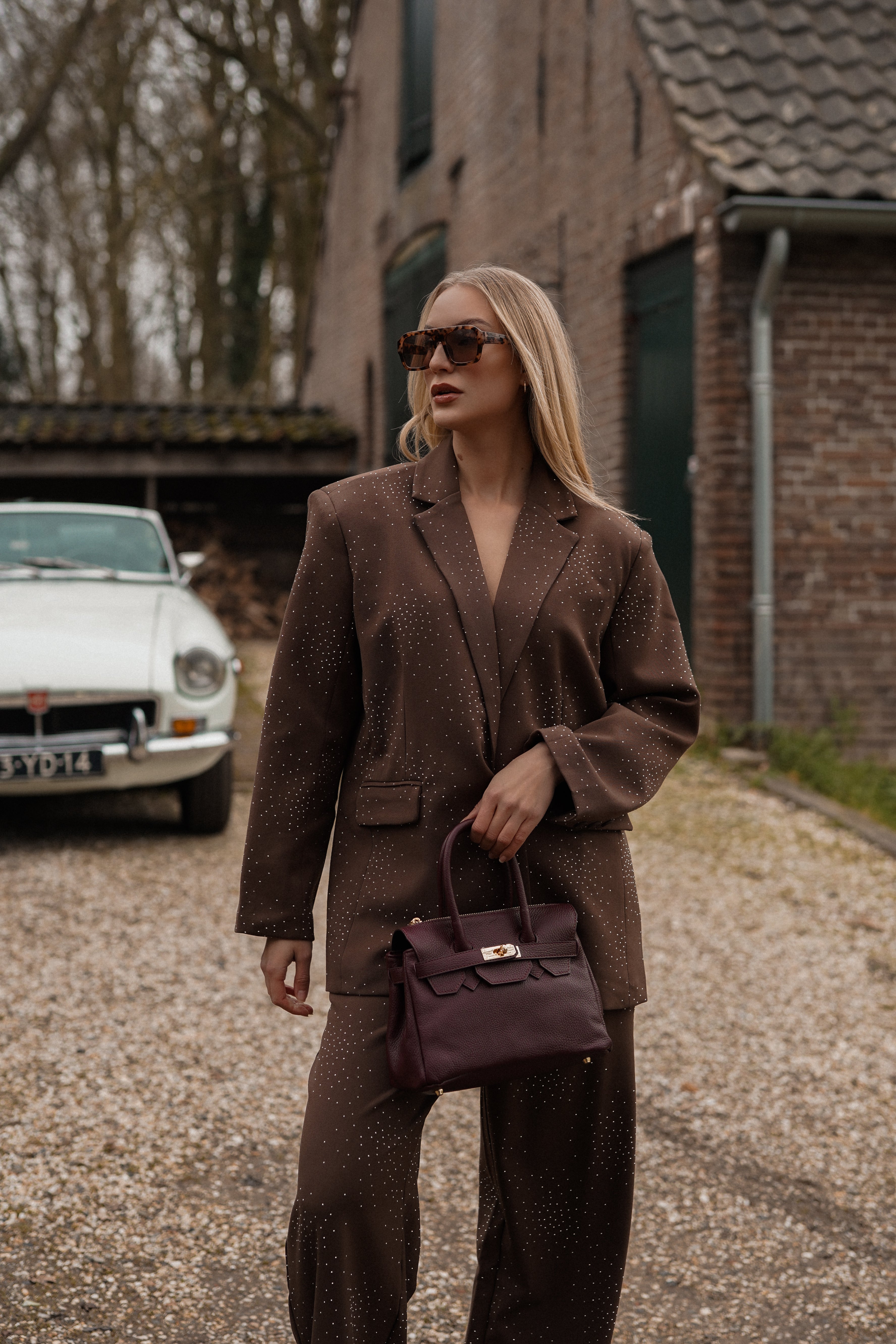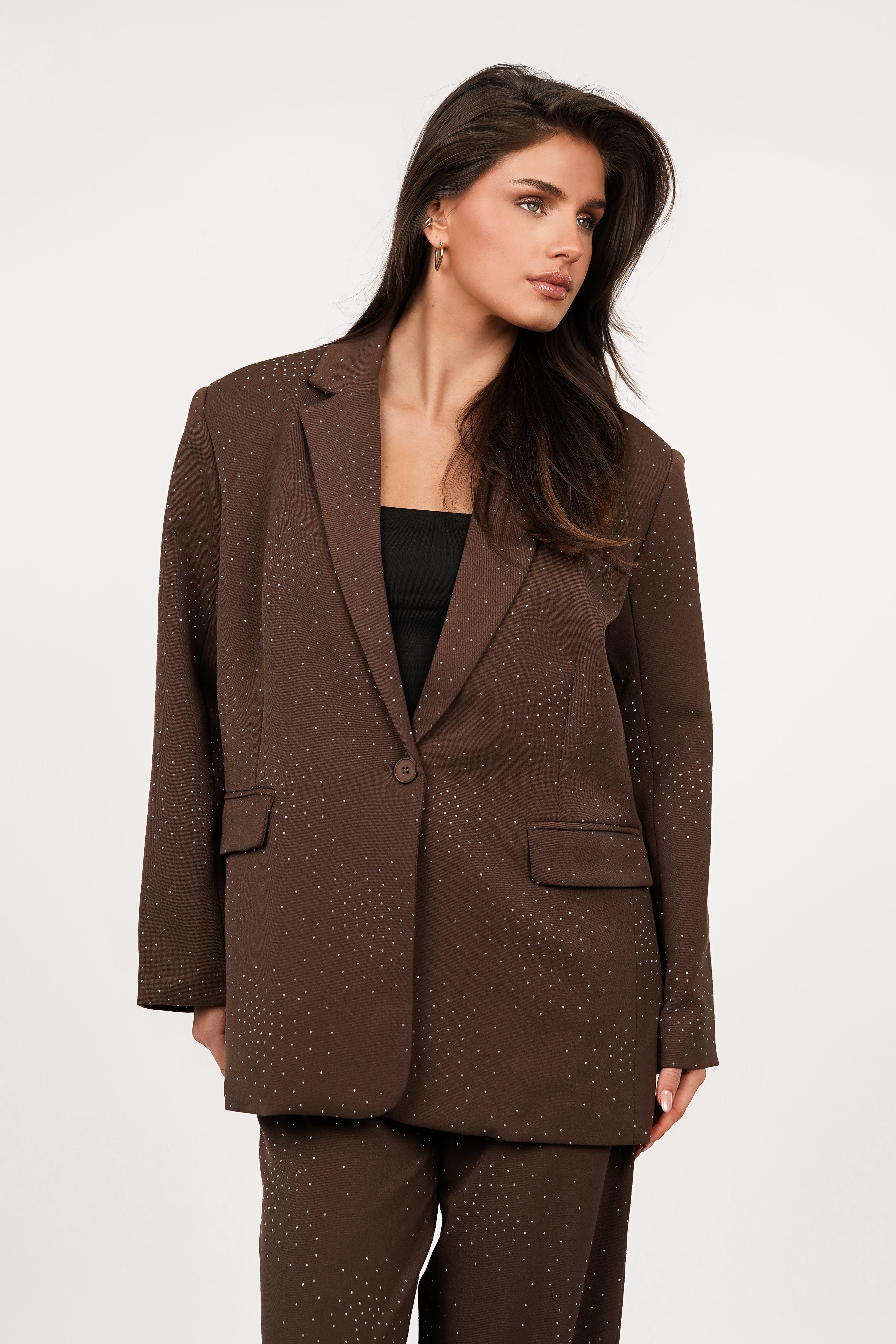 Oversized blazer met diamanten bruin - Audrey