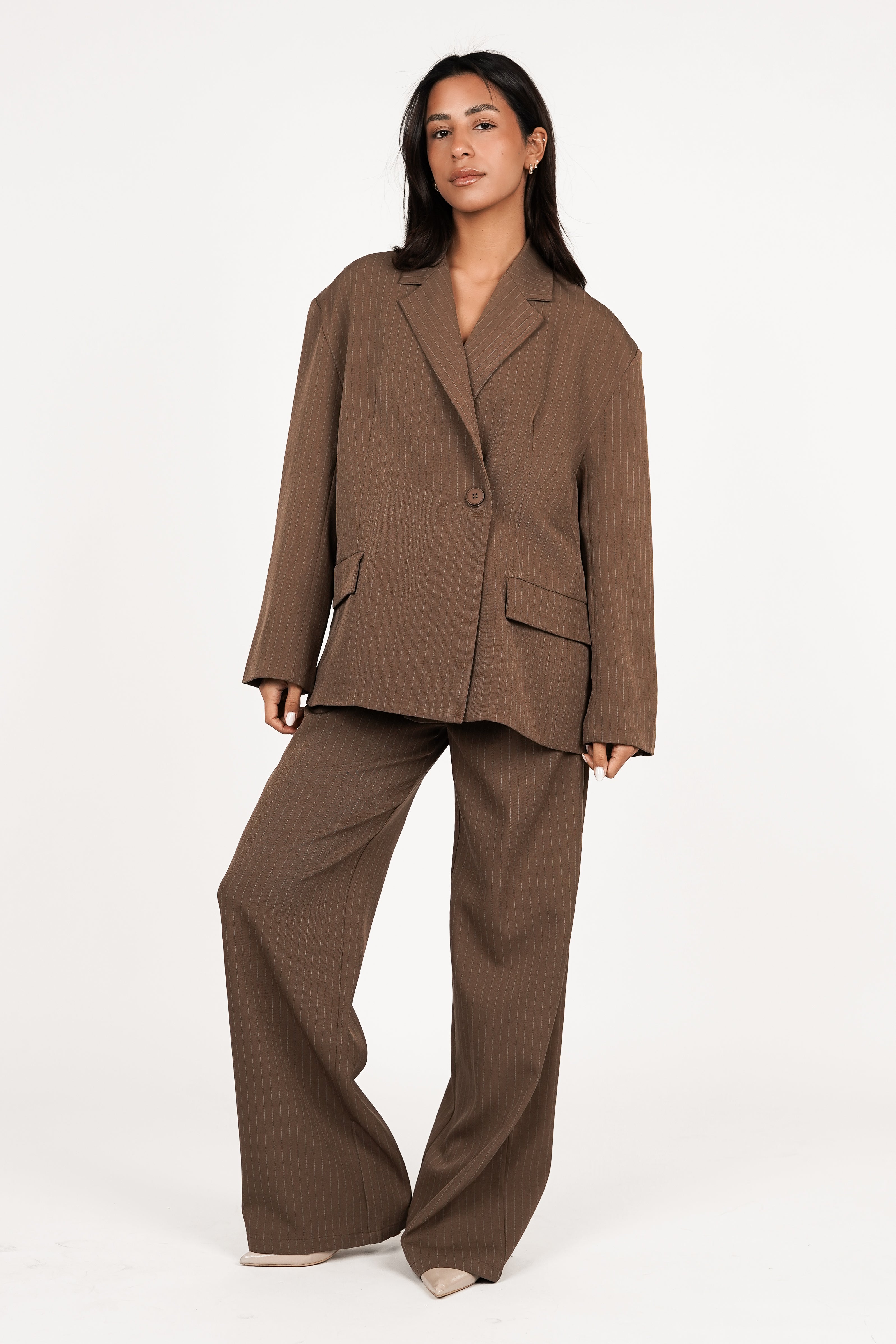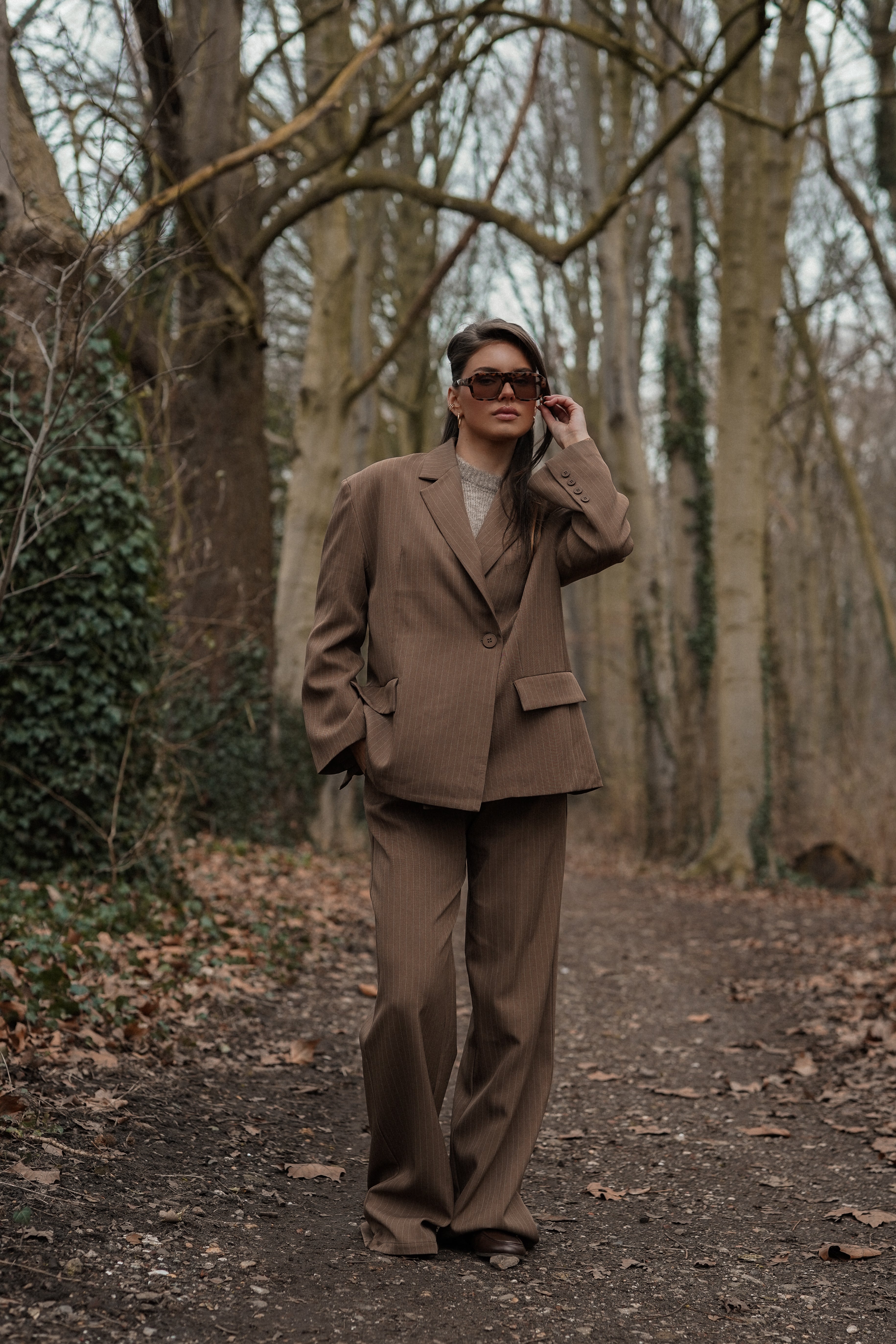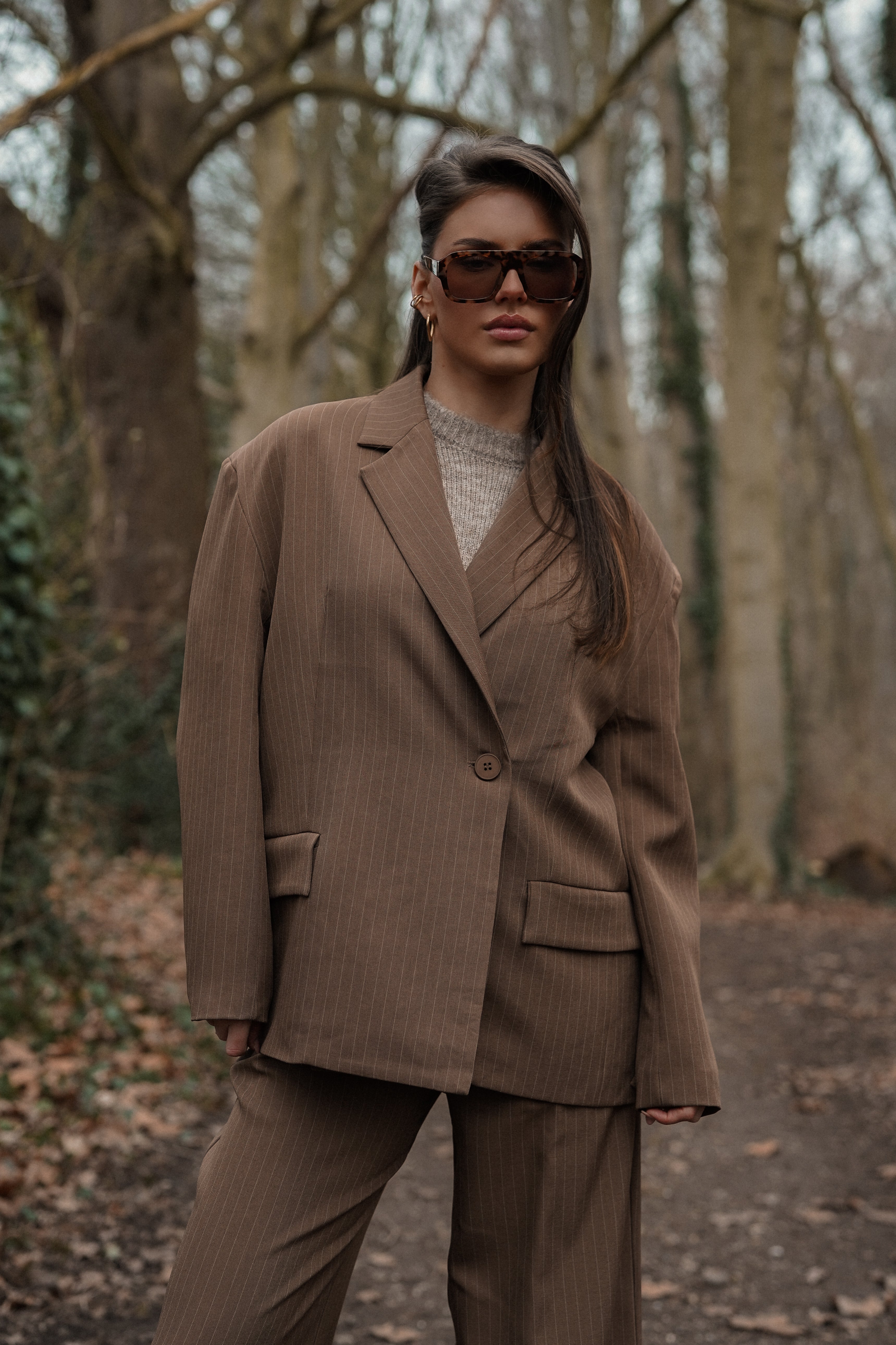 De Vive oversized blazer heeft een krijtstreep patroon en geeft elke outfit een stijlvolle en moderne look! De ruimvallende pasvorm zorgt voor een effortless look! De blazer heeft schoudervulling en is te sluiten door middel van een asymmetrische knoop! De zakken aan de voorzijde zijn los te maken waardoor je steekzakken creëert. Combineer de blazer met onze matching Livera pantalon of Cleo skort.