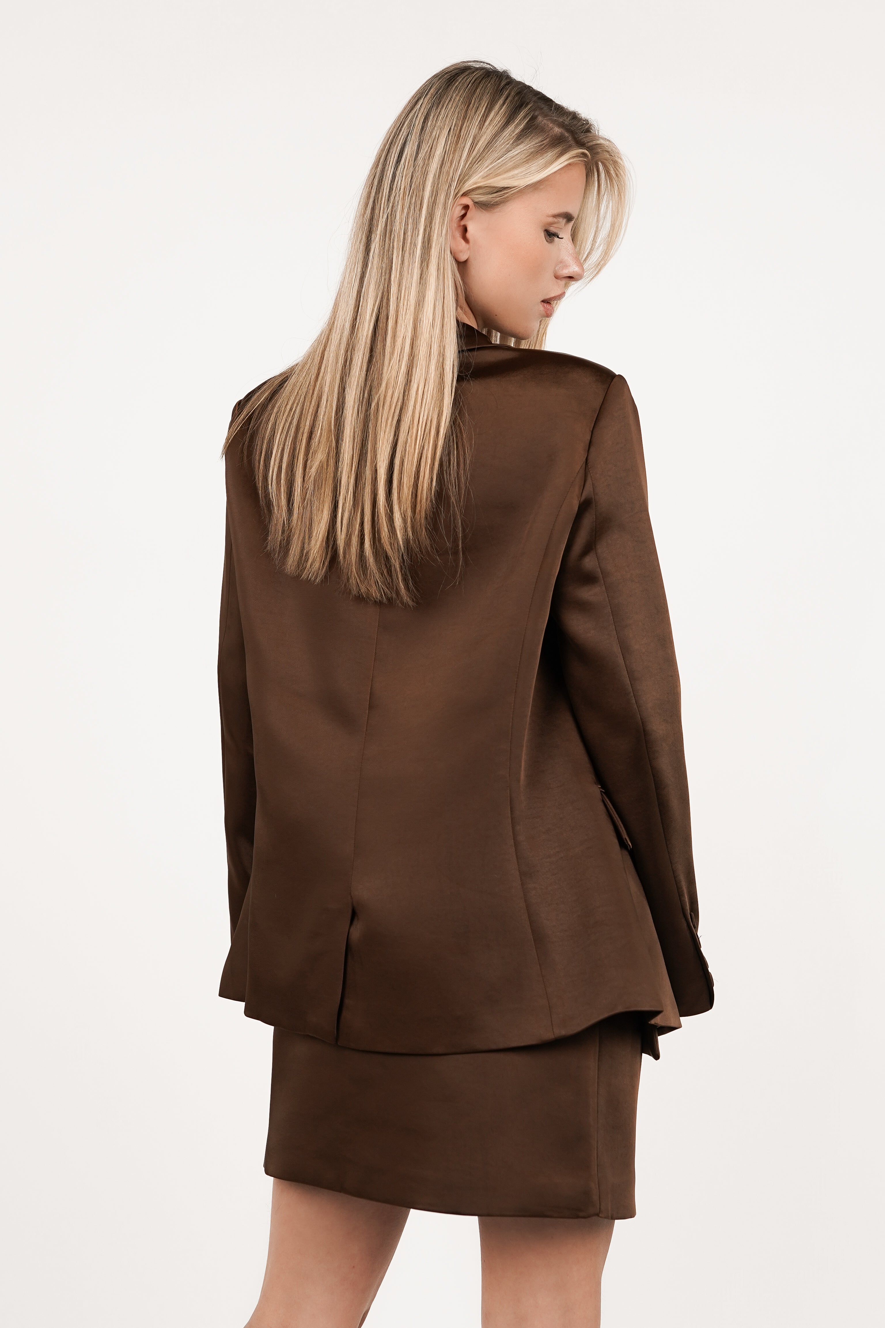 De Flora blazer heeft een oversized model in een mooie satijnen stof. De blazer heeft schoudervullingen en is double breasted. Combineer met onze matching satin rok!