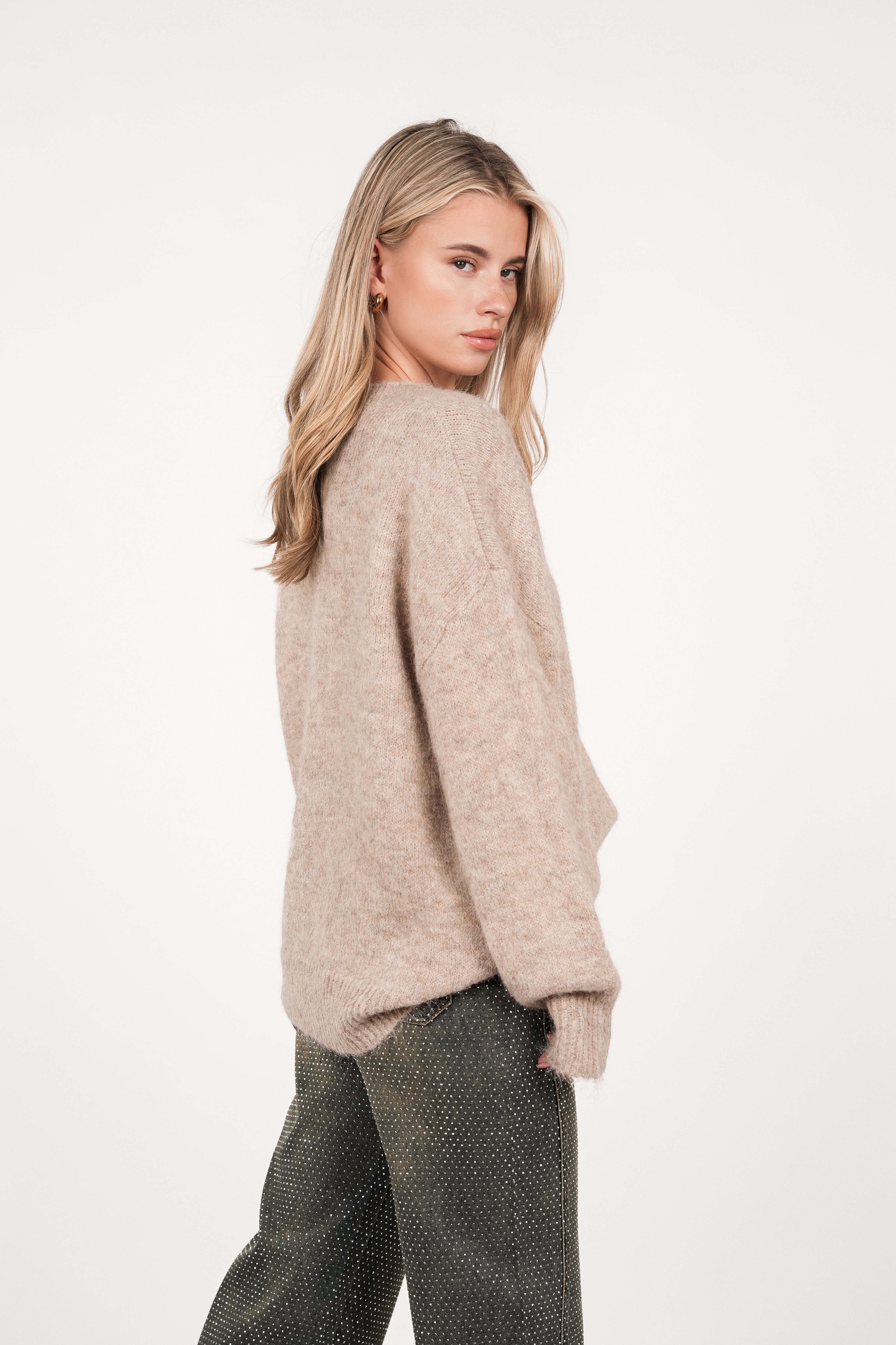 De Juno knit heeft een heerlijk oversized model met een v-hals aan de voorzijde.