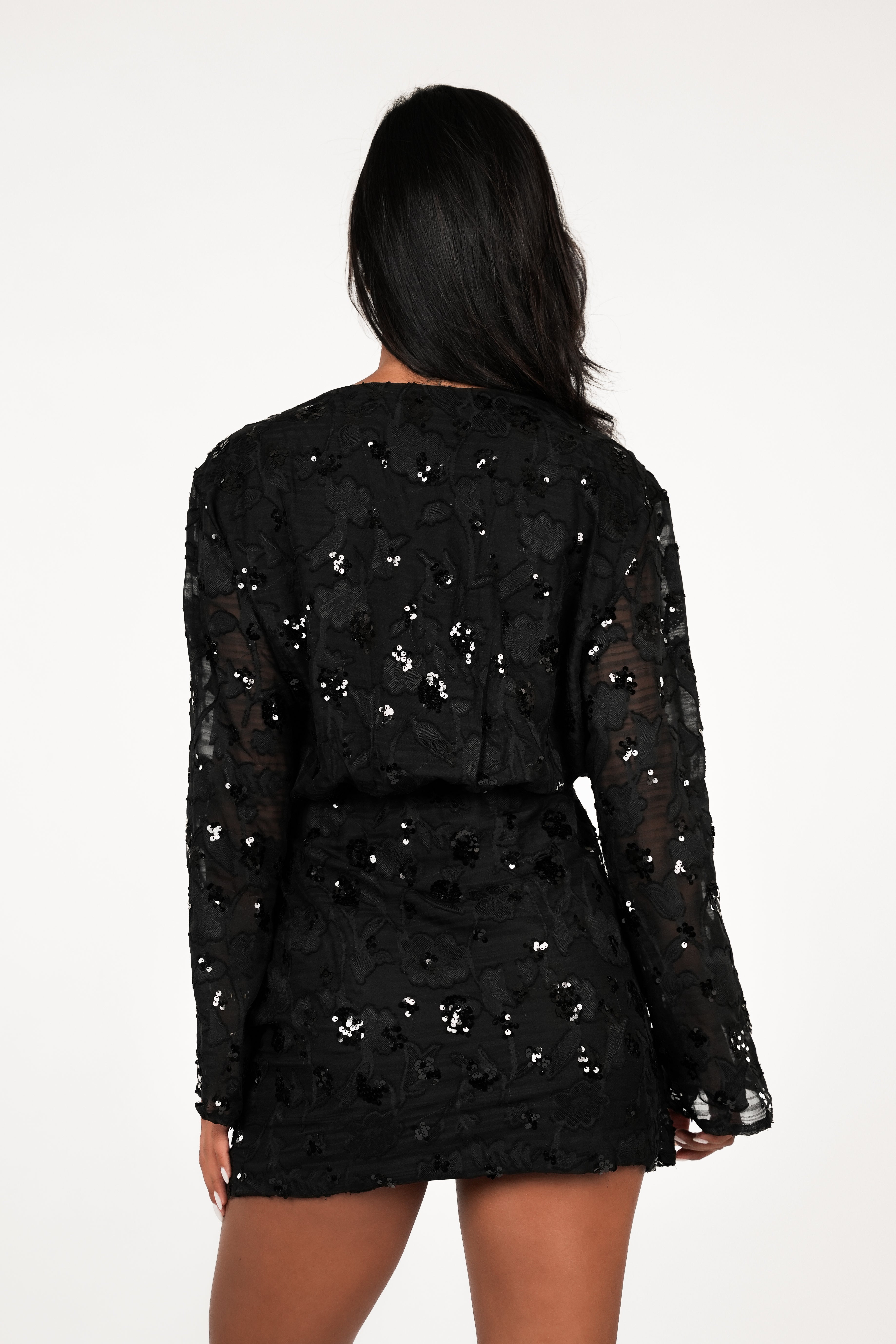 Het Nova jurkje heeft super leuke pailletten op de stof voor een feestelijk effect! De dress wordt gesloten doormiddel van een rits aan de zijkant en bevat een strikdetail.