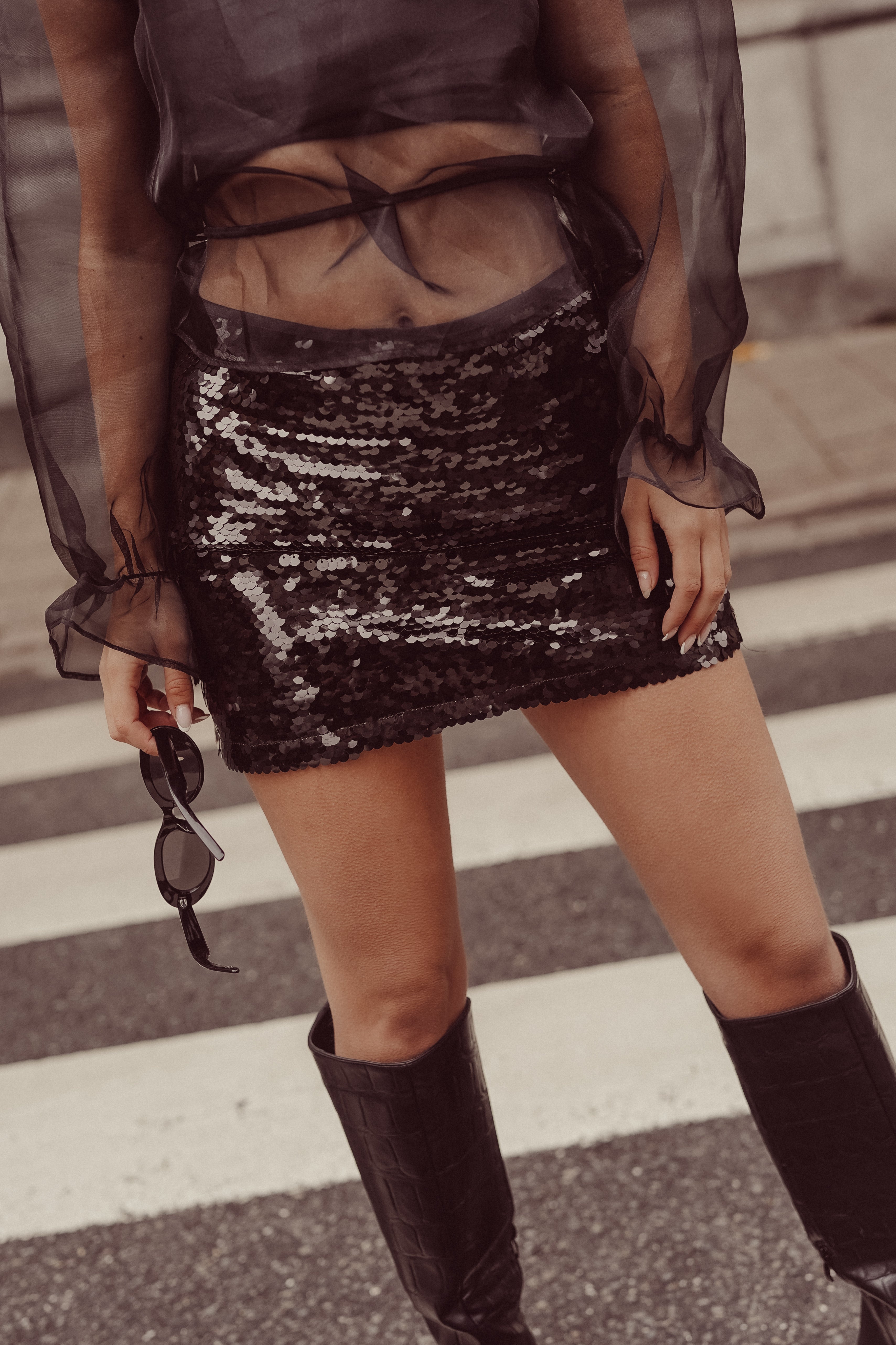 Pailletten mini rokje zwart - Chloe