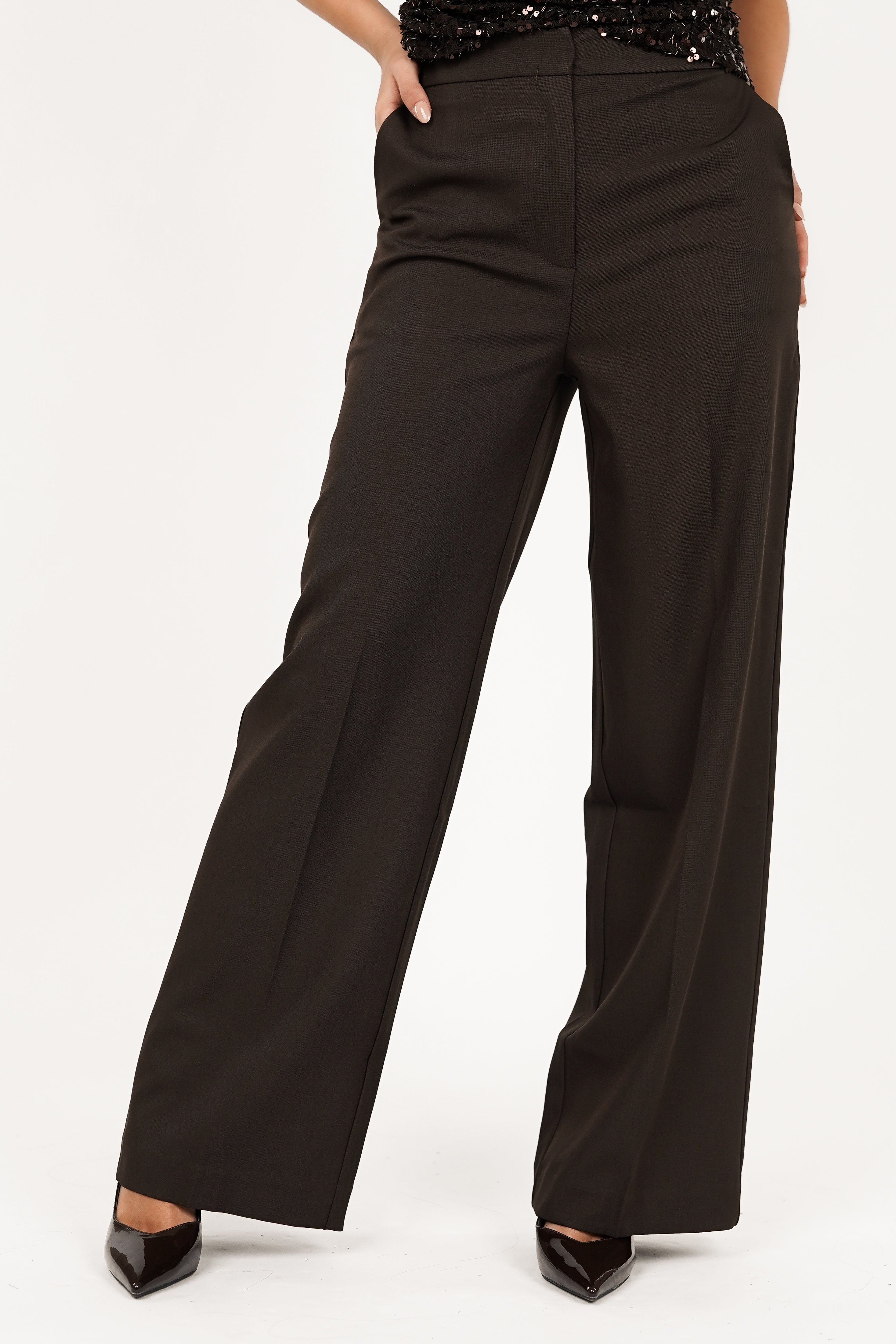 De Liddy pantalon is high waisted en bevat een wide leg model. De broek bevat zakken aan de voorzijde en wordt gesloten doormiddel van een haak- en ritssluiting.